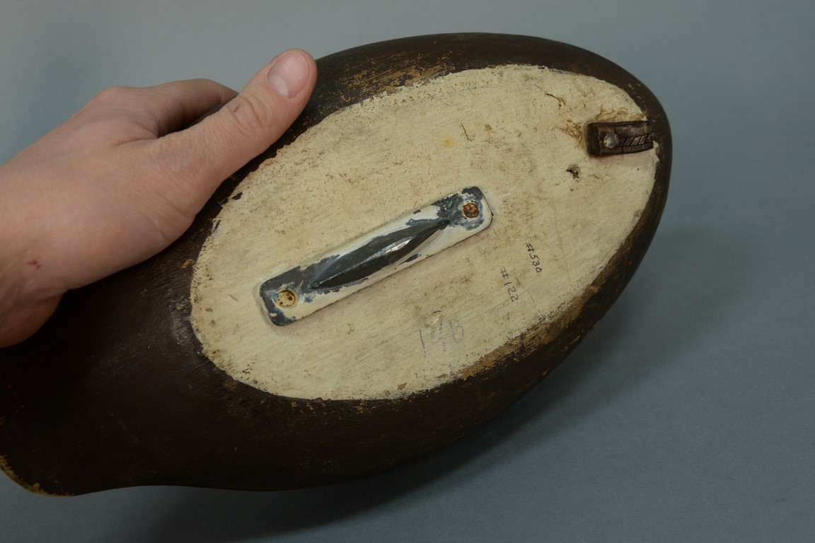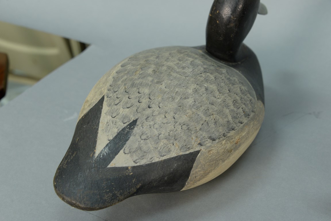 Pair of duck decoys with original paint, each with glass eyes. length 14 inches each