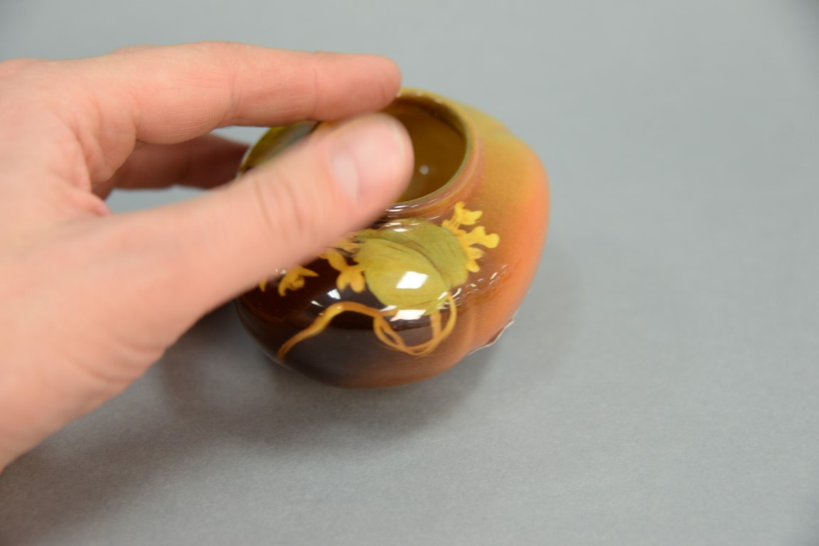 Rookwood glazed vase leaf and vine painted marked for Rookwood on bottom and 708C. ht. 2 1/2in., wd. 4 1/2in.