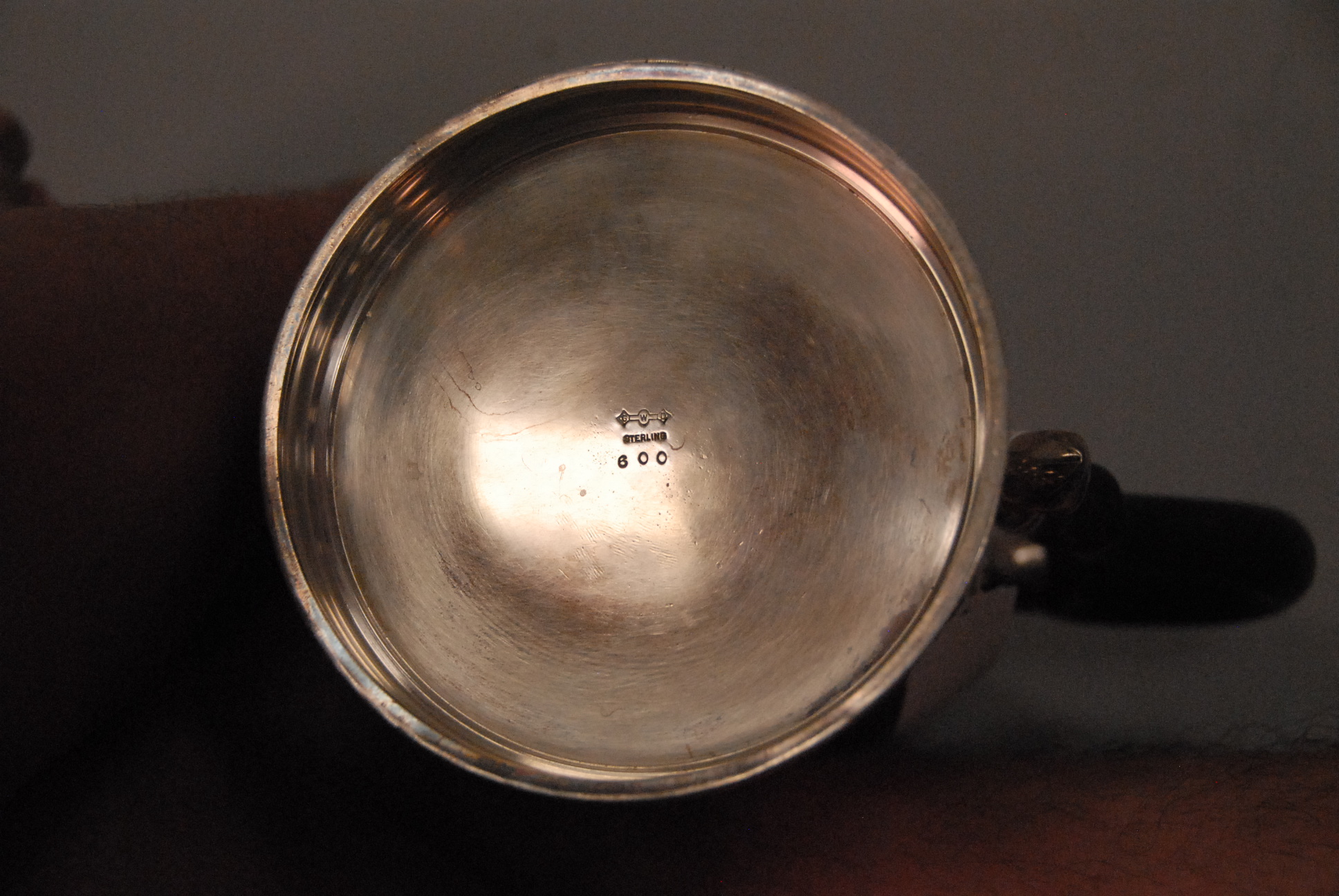 Sterling silver coffee pot, lighthouse style with wood handle. 25.3 t oz., ht. 9 1/2in.