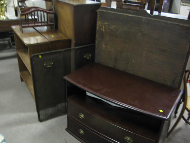 Three bookcases, walnut chest, TV stand, magazine rack, small table, footstool and a bentwood chair