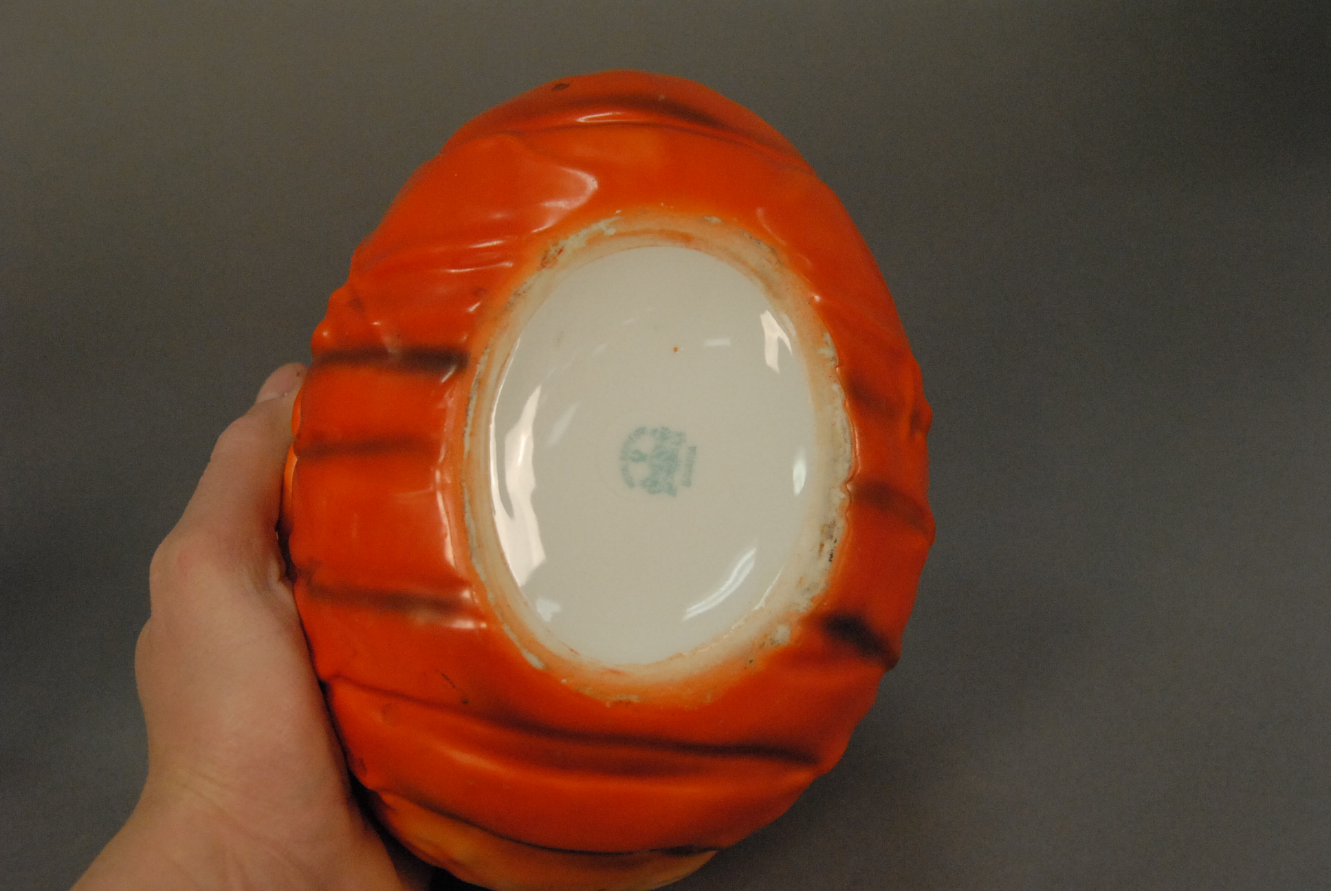 Lot 21: Three Royal Bayreuth pieces to include lobster salad bowl, man fishing, and creamer.