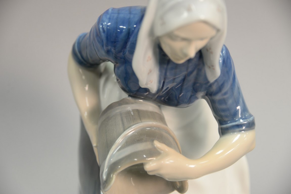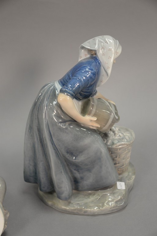 Lot 21: Three Royal Copenhagen girl figures including Potato Woman #1549, ht. 10 1/2 in. Working Girl #815, ht. 8 1/2 in. and a girl with …