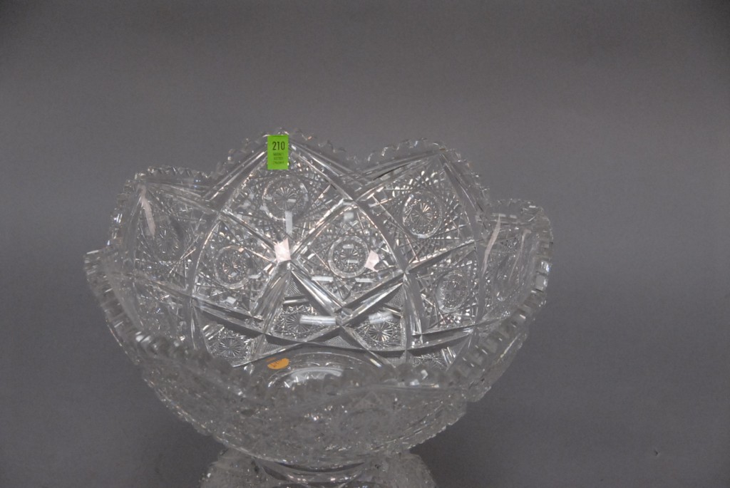 Antique cut glass punch bowl in pedestal chips.