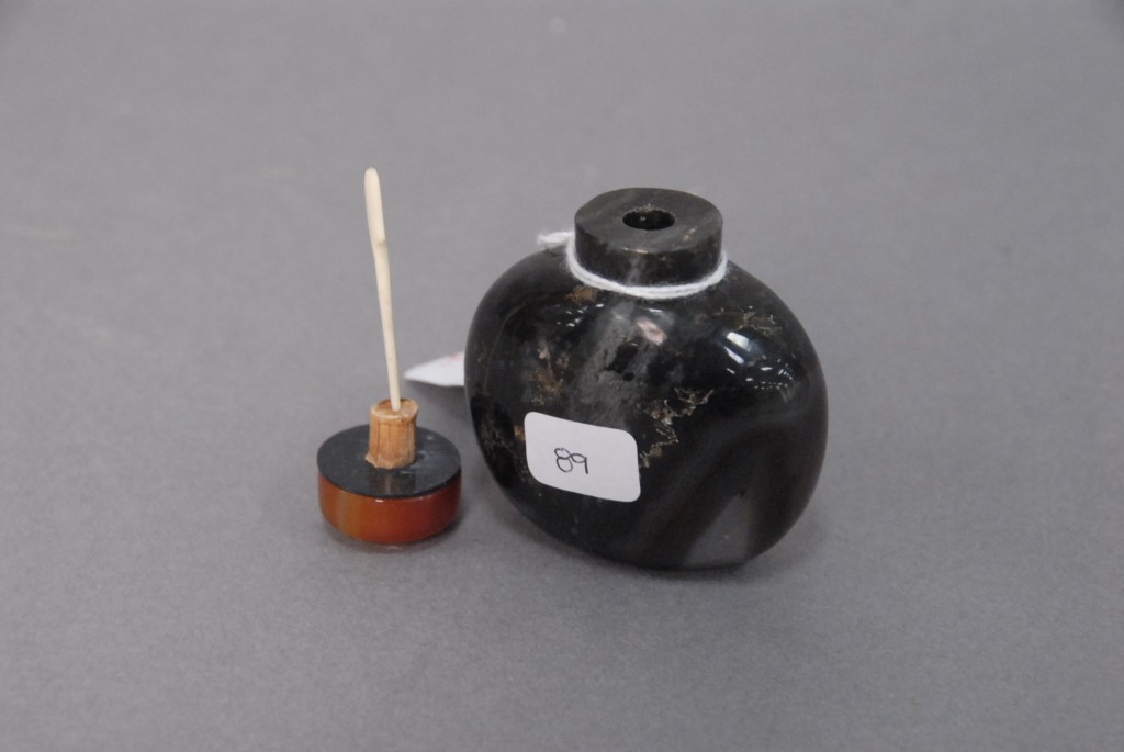 Crystalloid agate snuff bottle, having agate top, 19th century, ht 2 1/2.