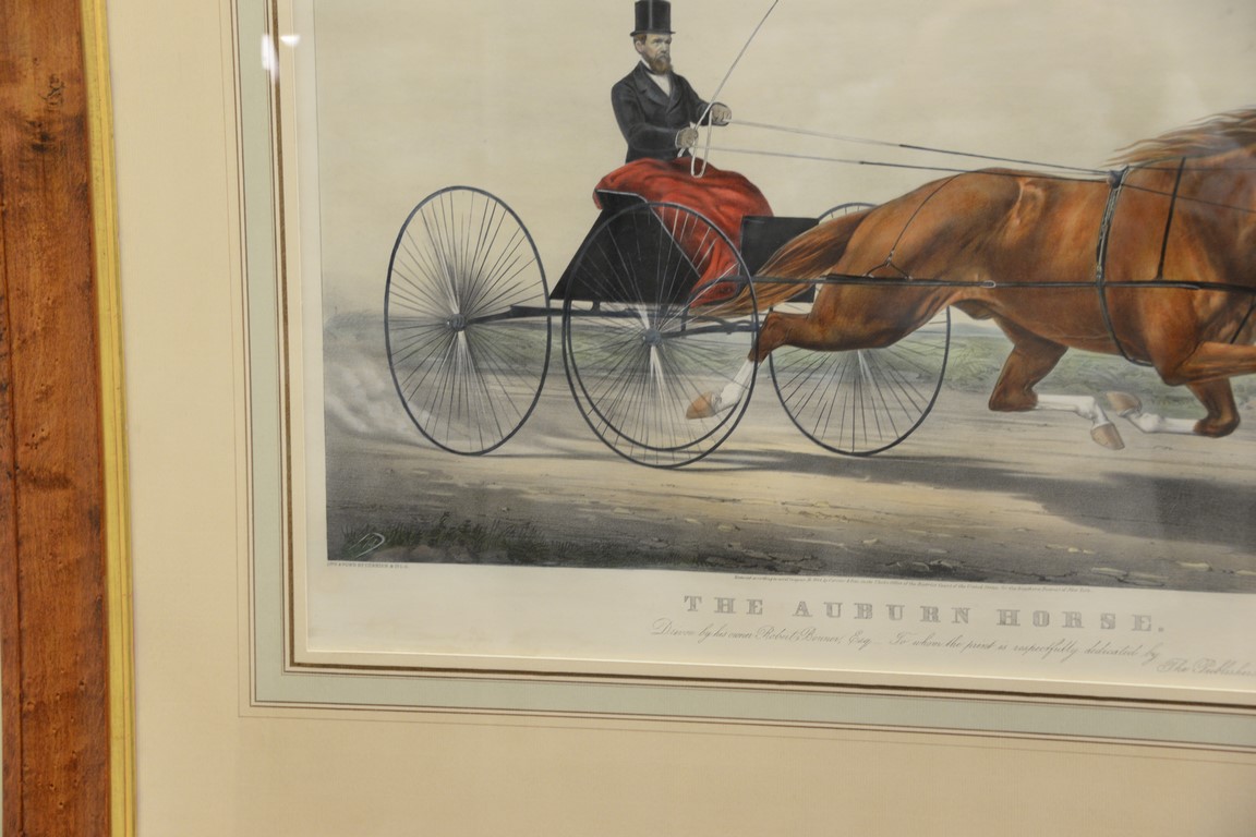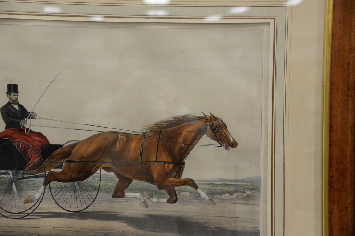 Lot 210: Currier & Ives large folio hand colored lithograph The Auburn Horse Entered according to act of Congress 1866 after J….