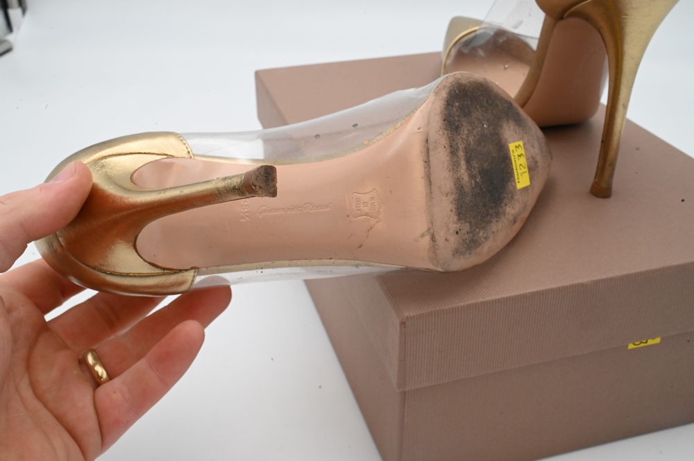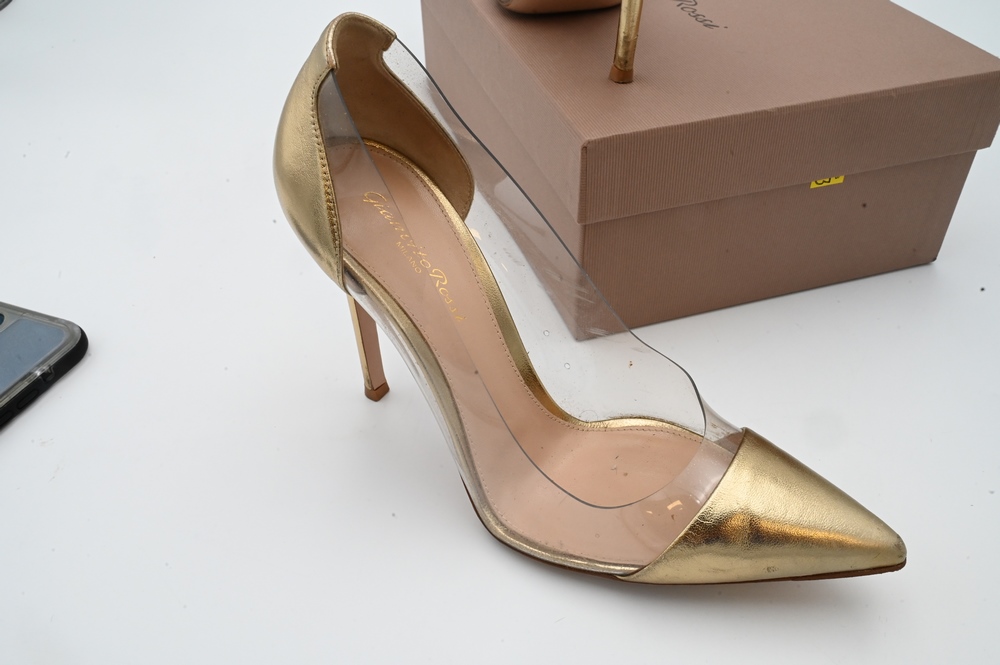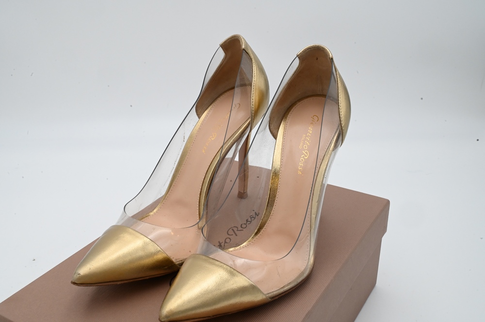 Gianvito Rossi “Plexi” Pumps, having “Nappa Silk Mekong” finish, in original box, size 38 1/2.
