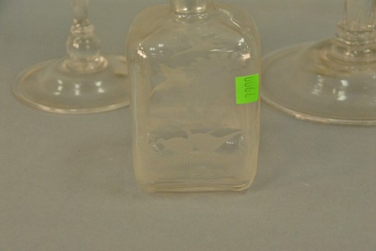 Group of seven 18th/19th century crystal pieces to include three Georgian 18th century compotes/cake plates, and two pairs of decanters. square decanters: ht. 7 1/2 in. oval decanters: ht. 10 in. compotes: ht. 5 in. to ht. 6 in.