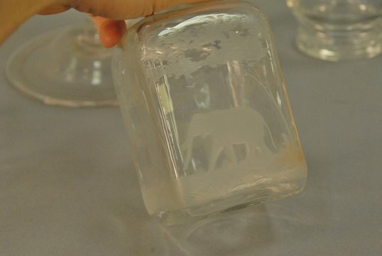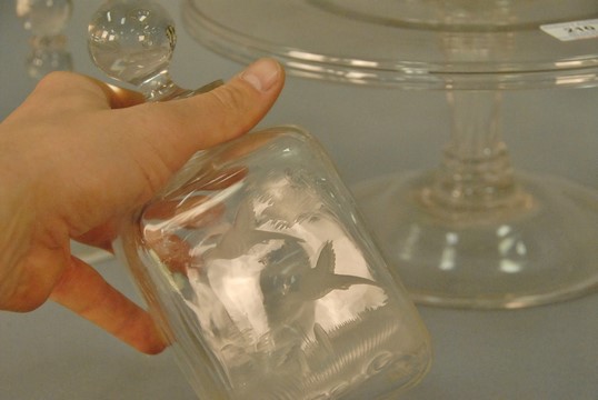 Lot 210: Group of seven 18th/19th century crystal pieces to include three Georgian 18th century compotes/cake plates, and two pairs of decant…