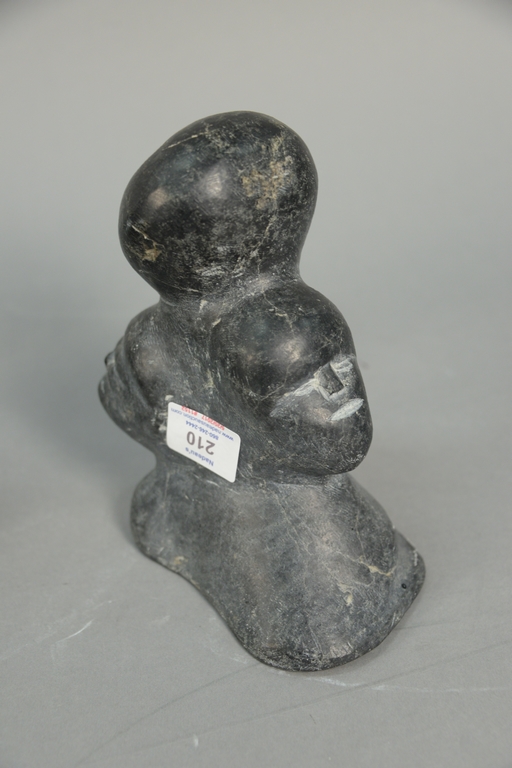Lot 210: Inuit Eskimo Carving Silas Aittauq b. 1933 Baker Lake dark grey basalt Three Heads Family Stone 7 1/2 x 5 1/2 5 1/2.