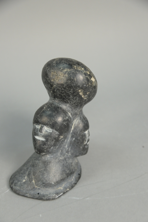 Inuit Eskimo Carving Silas Aittauq b. 1933 Baker Lake dark grey basalt Three Heads Family Stone 7 1/2 x 5 1/2 5 1/2.