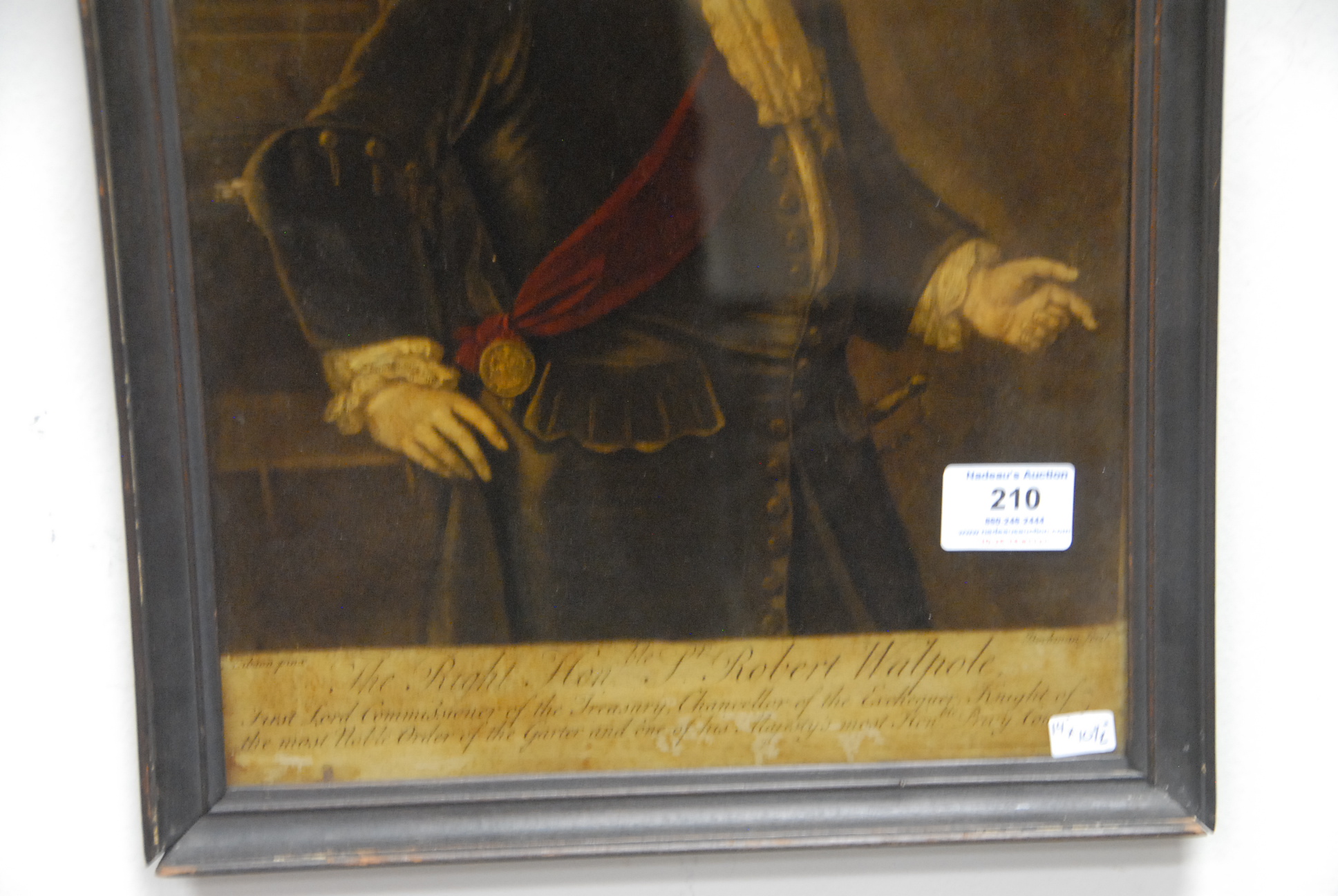 Lot 210: Pair of reverse on glass mezzotints Joseph Martyn of London Merchant and The Right Honble Pr Robert Walpole. 14 x 10