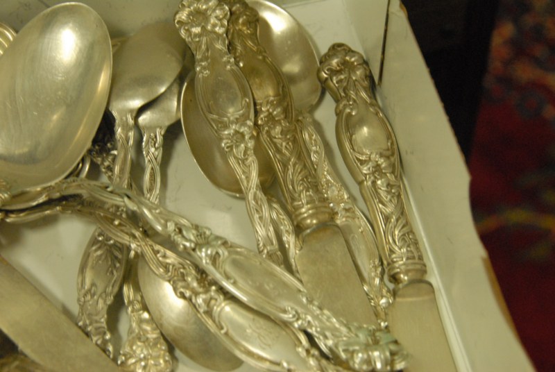 Lot 210: Sterling silver lot of forks, knives, spoons.