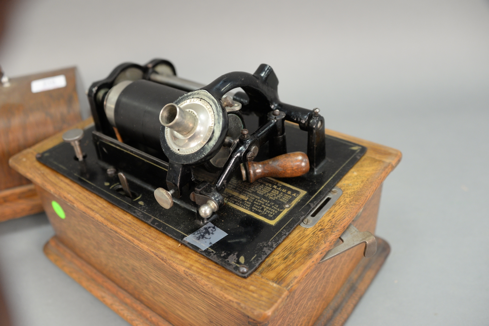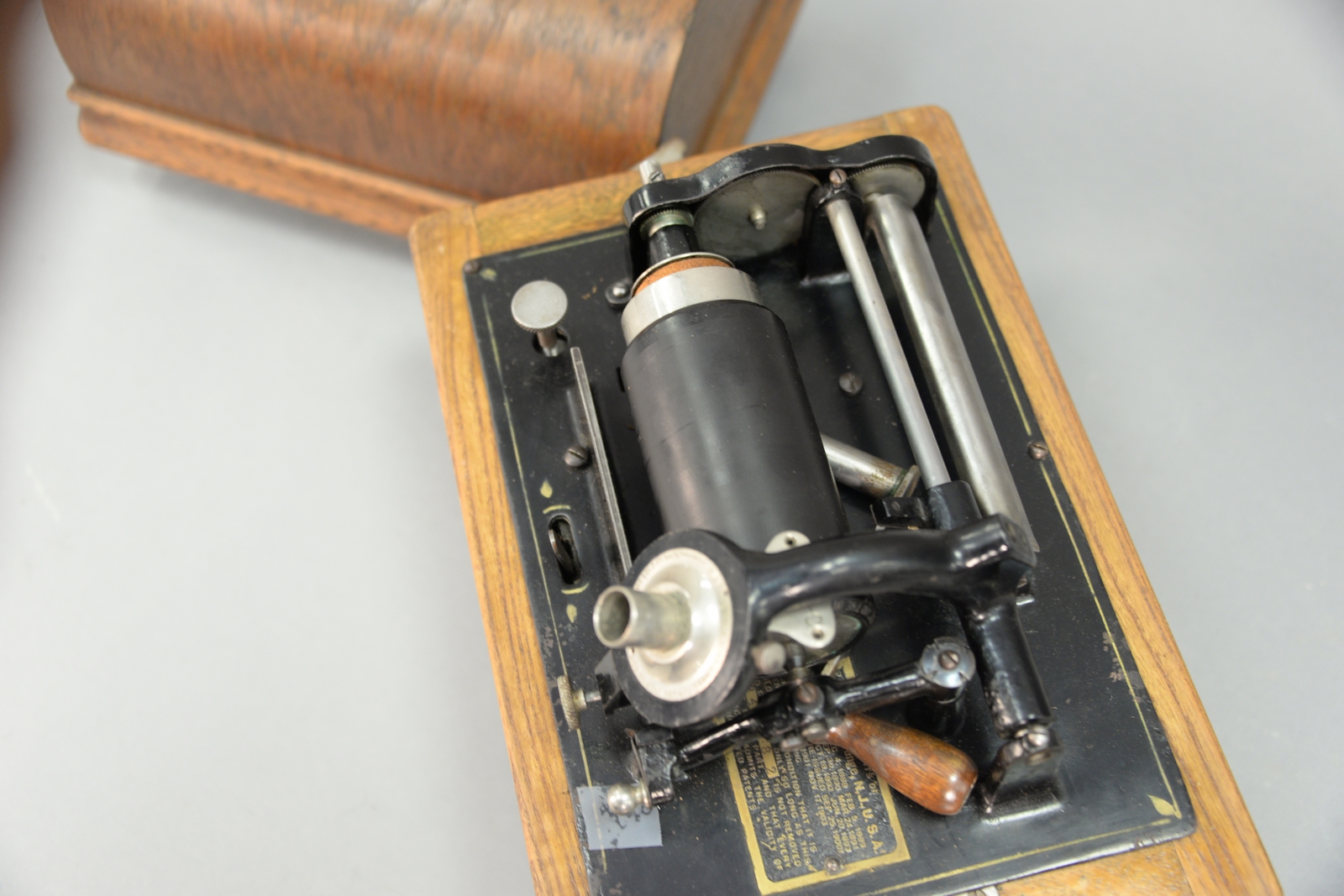 Thomas Edison phonograph with 26 inch horn. ht. 10 1/2in., wd. 12 3/4in., dp. 8 3/4in.