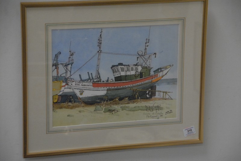 Three watercolor paintings by Raymond Allen Jackson 1927-1997 House of Salvador Dali Port Lligat 1996, Salvador Dali’s House Port Lligat 1988, and Povoa de Vauzin Portugal 88, signed lower right Jak, 12 x 15 1/2, 12 x 15 1/2, and 14 3/4 x 19 3/4.
