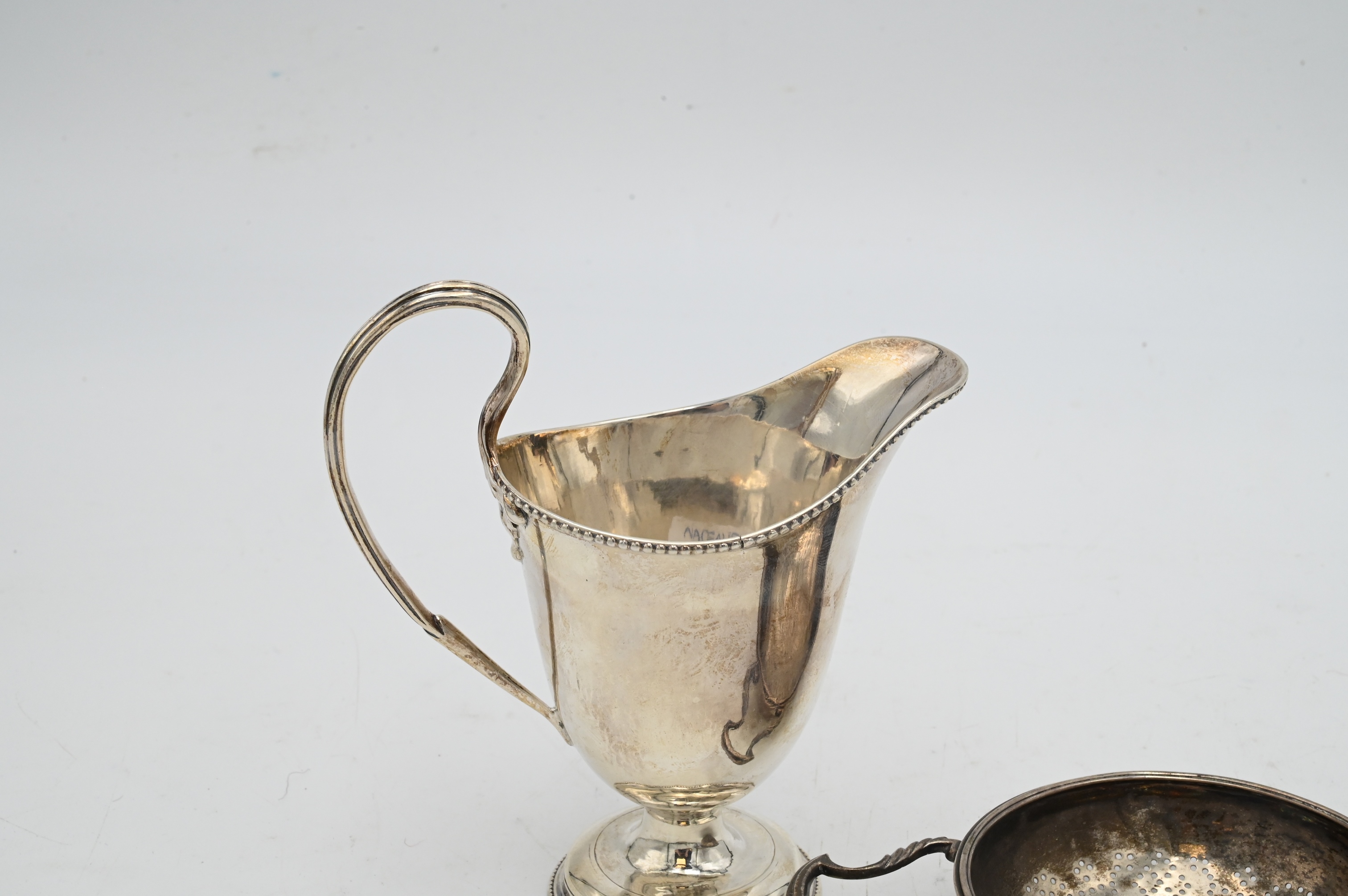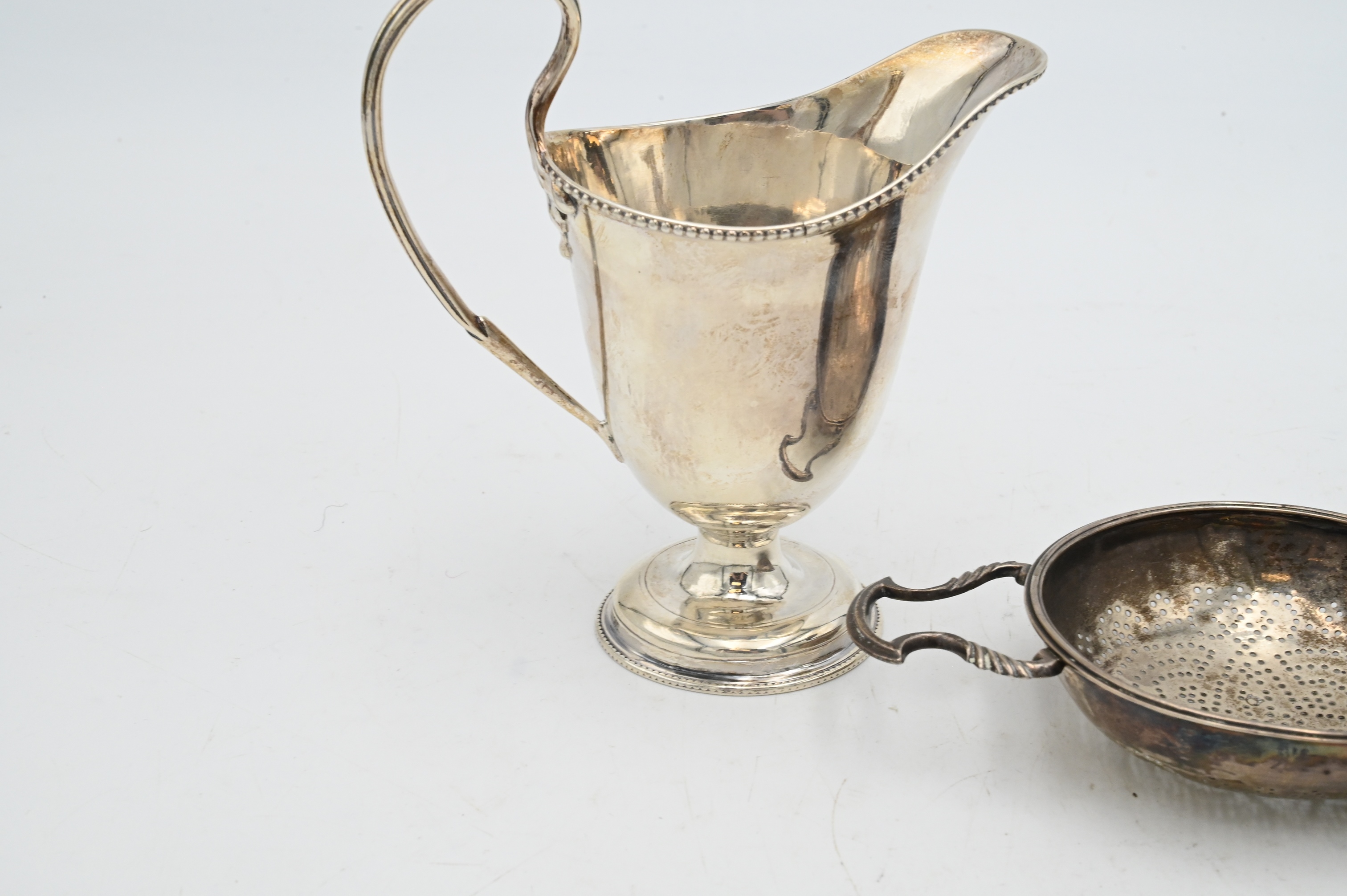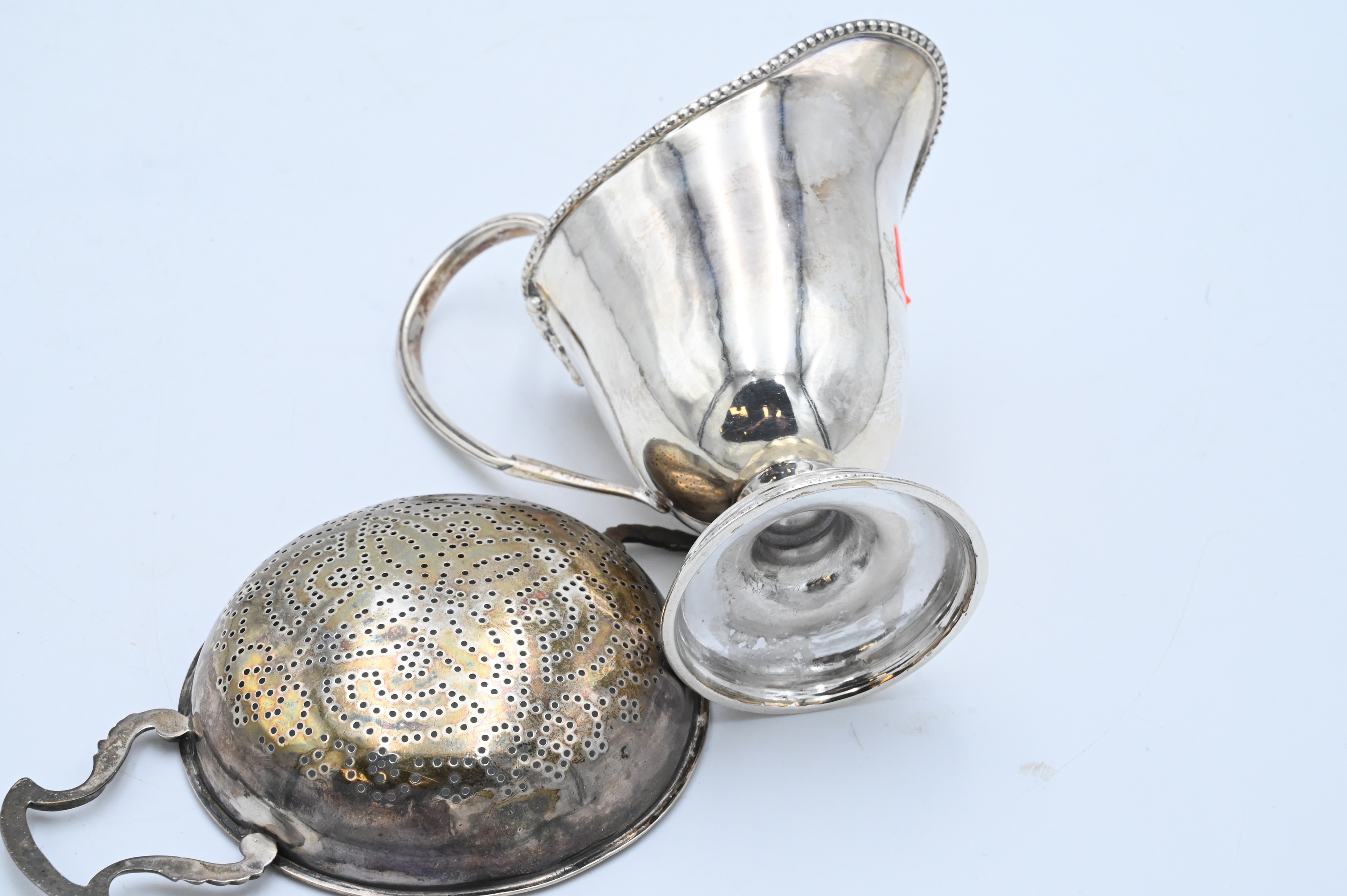 Two Early English Sterling Silver Pieces, to include creamer and strainer, length 6 1/4 inches, tallest 5 1/2 inches, 6.1 t.oz.