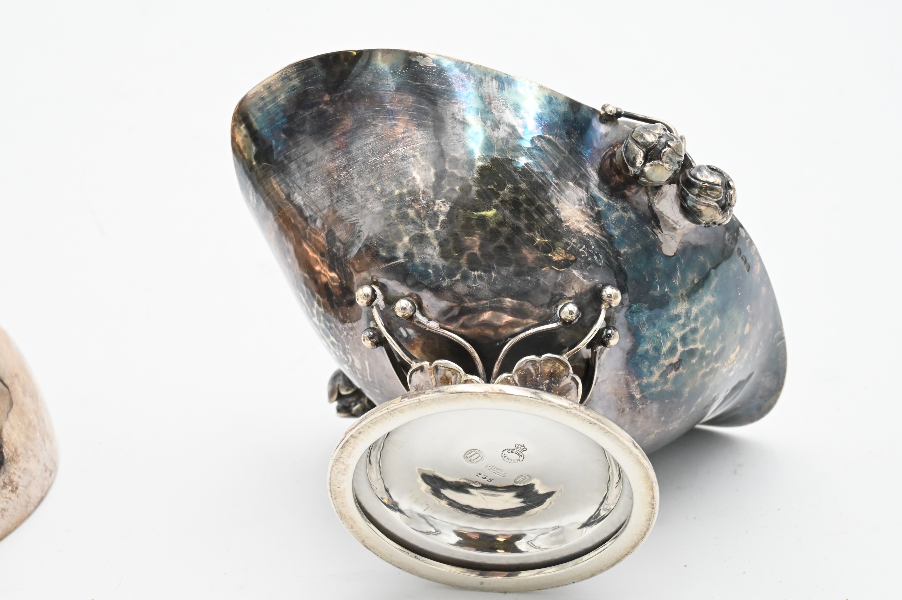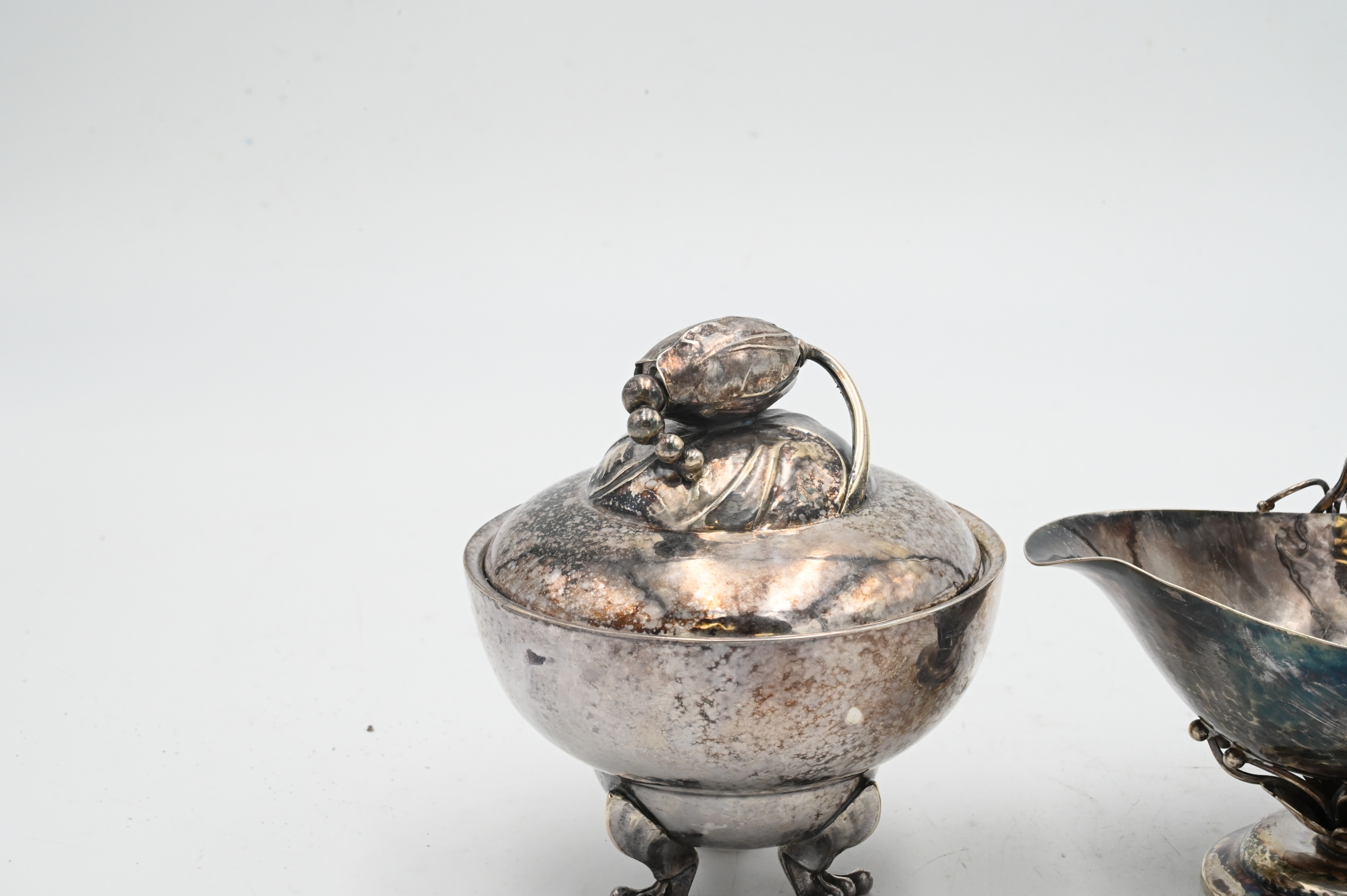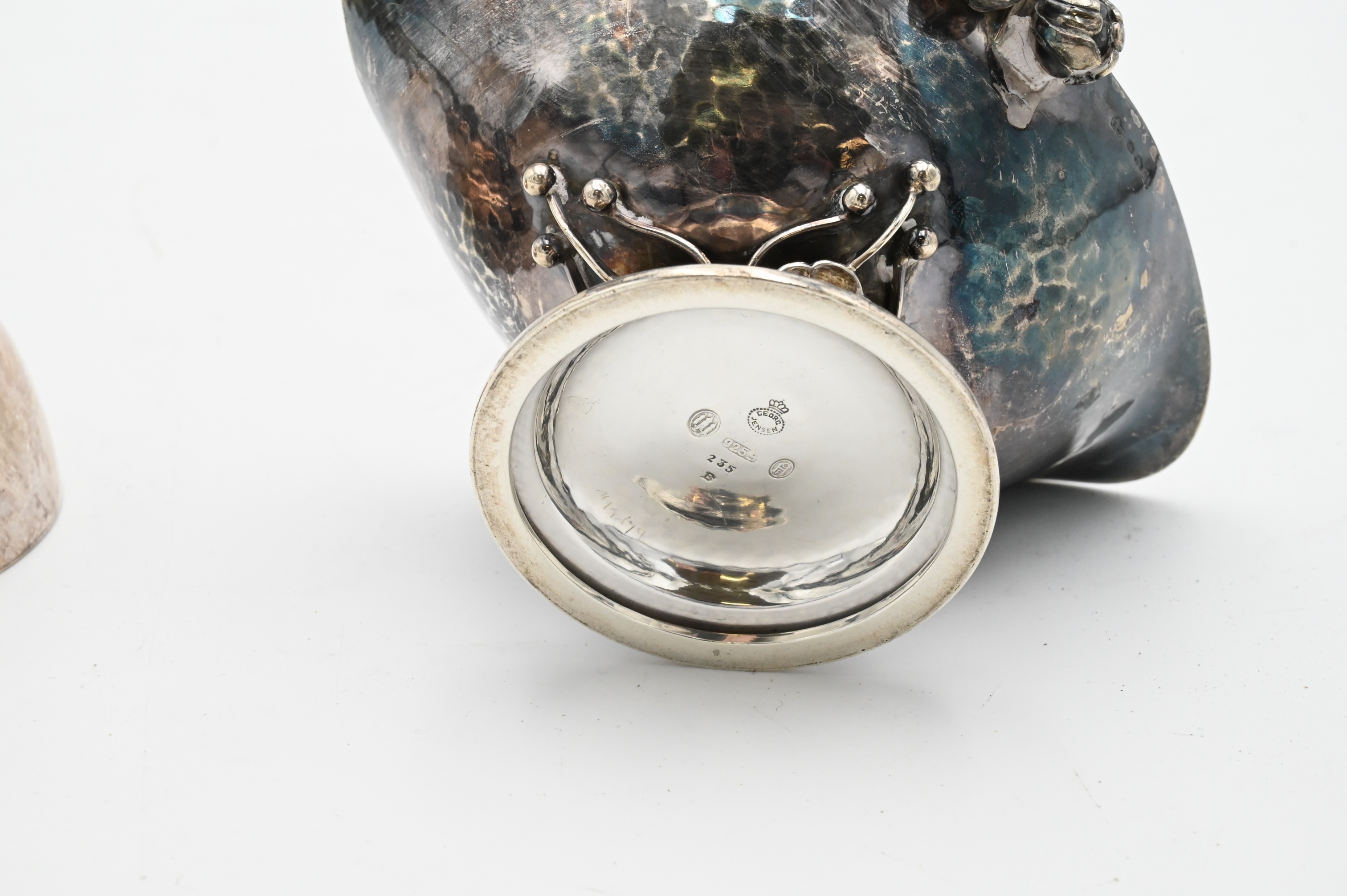 Two Piece Georg Jensen Sterling Silver Covered Sugar Lot, height 4 1/2 inches and Open Sugar Bowls, height 3 1/2 inches 12.4 t.oz.
