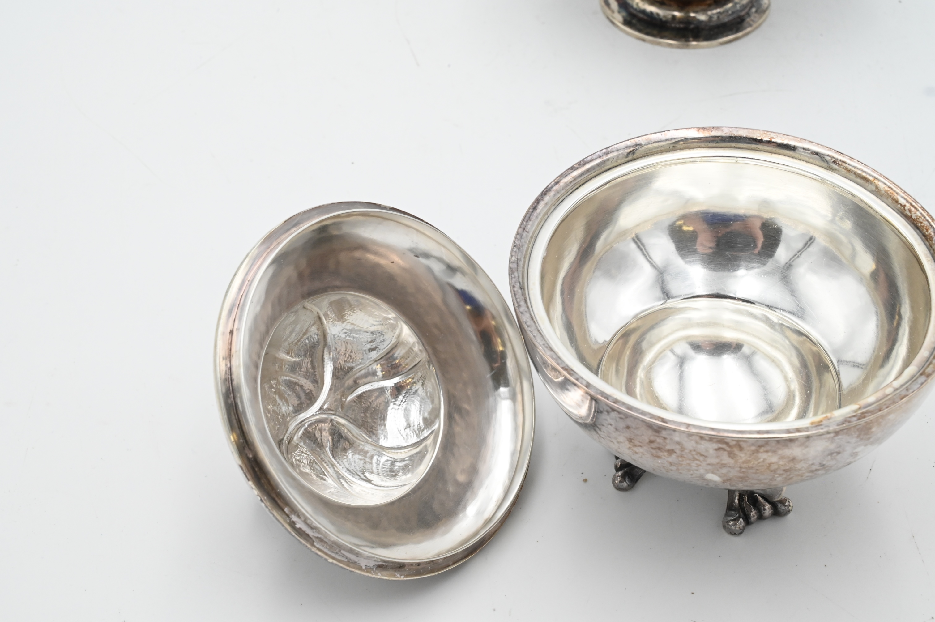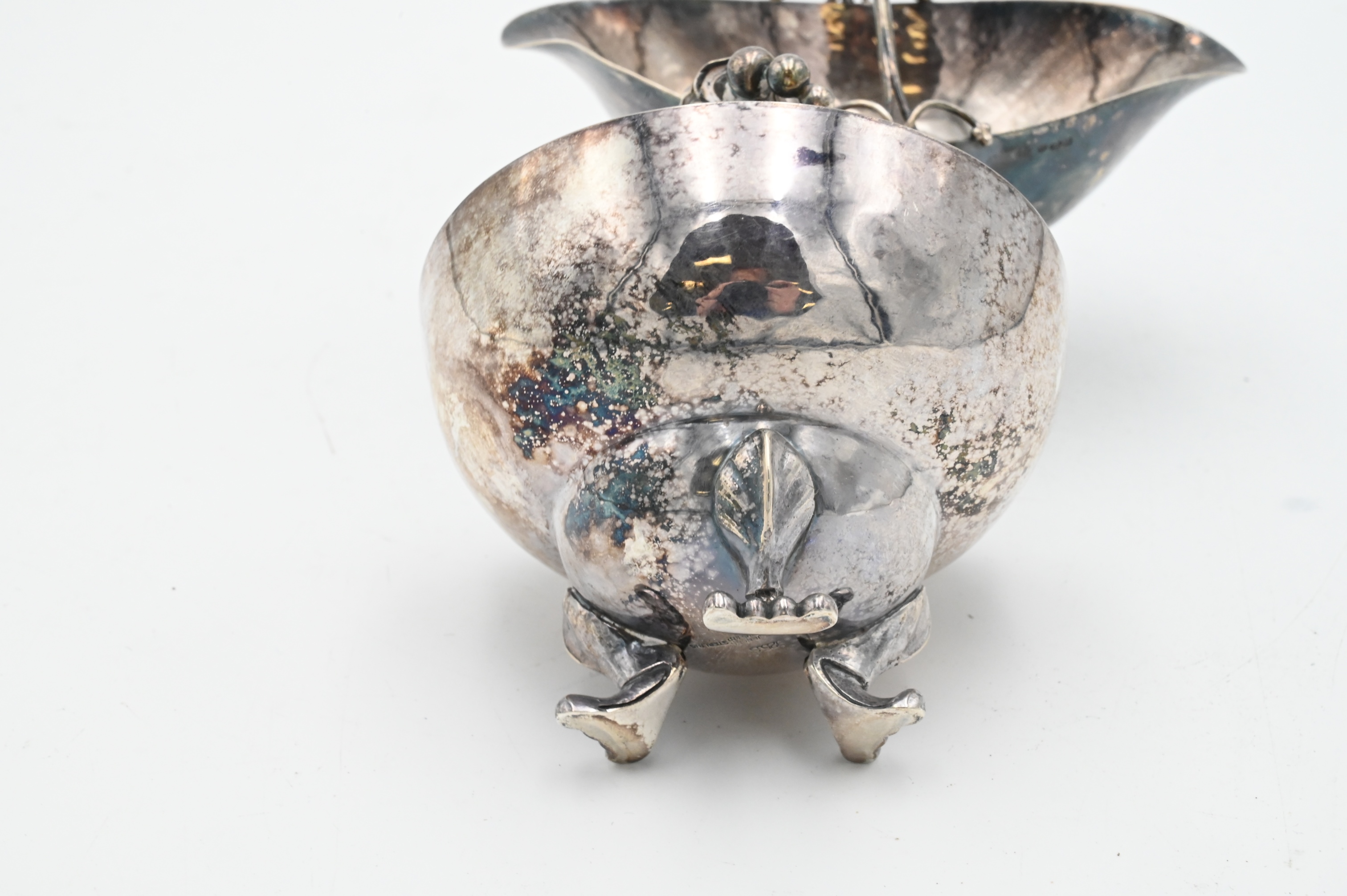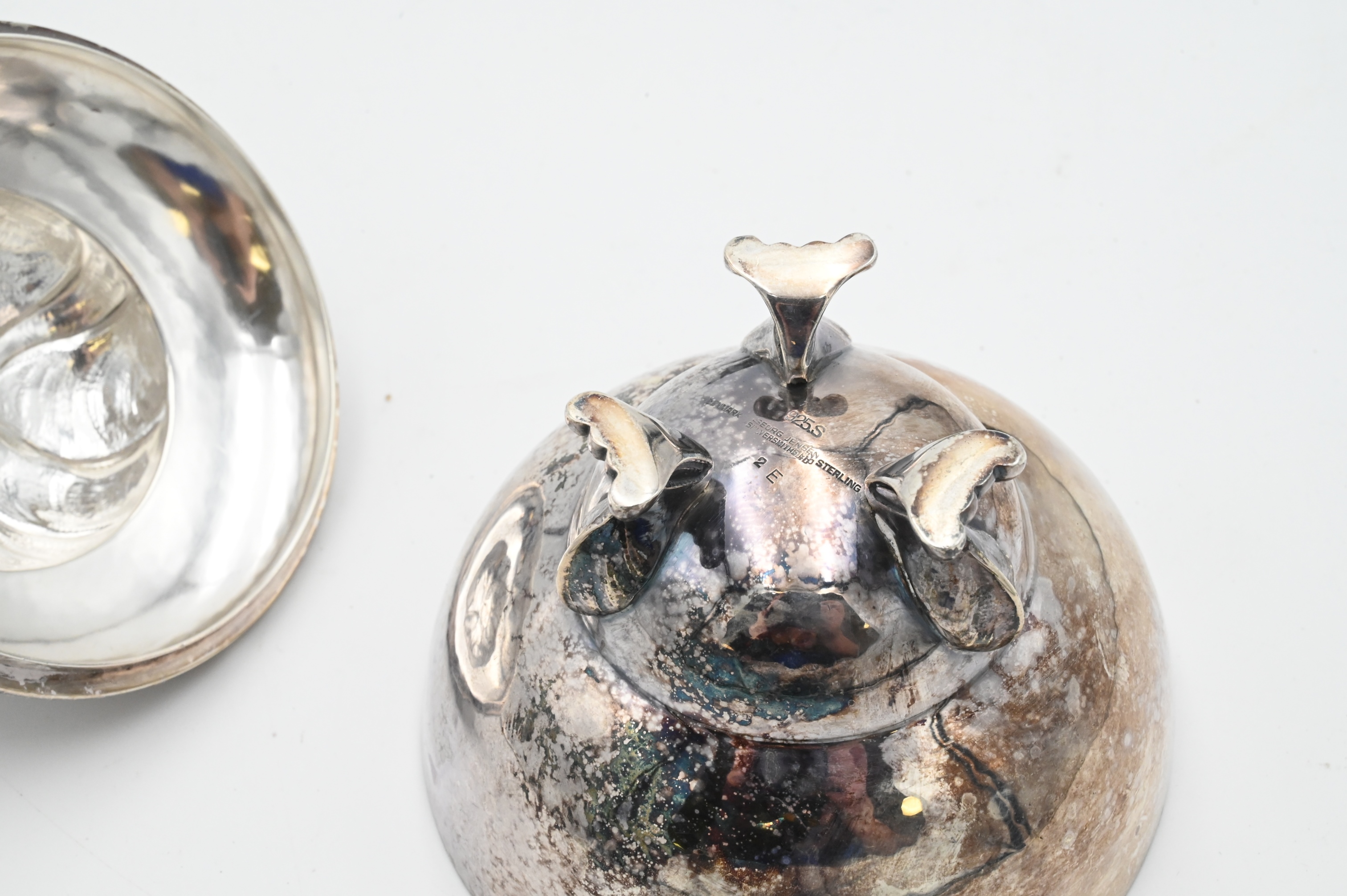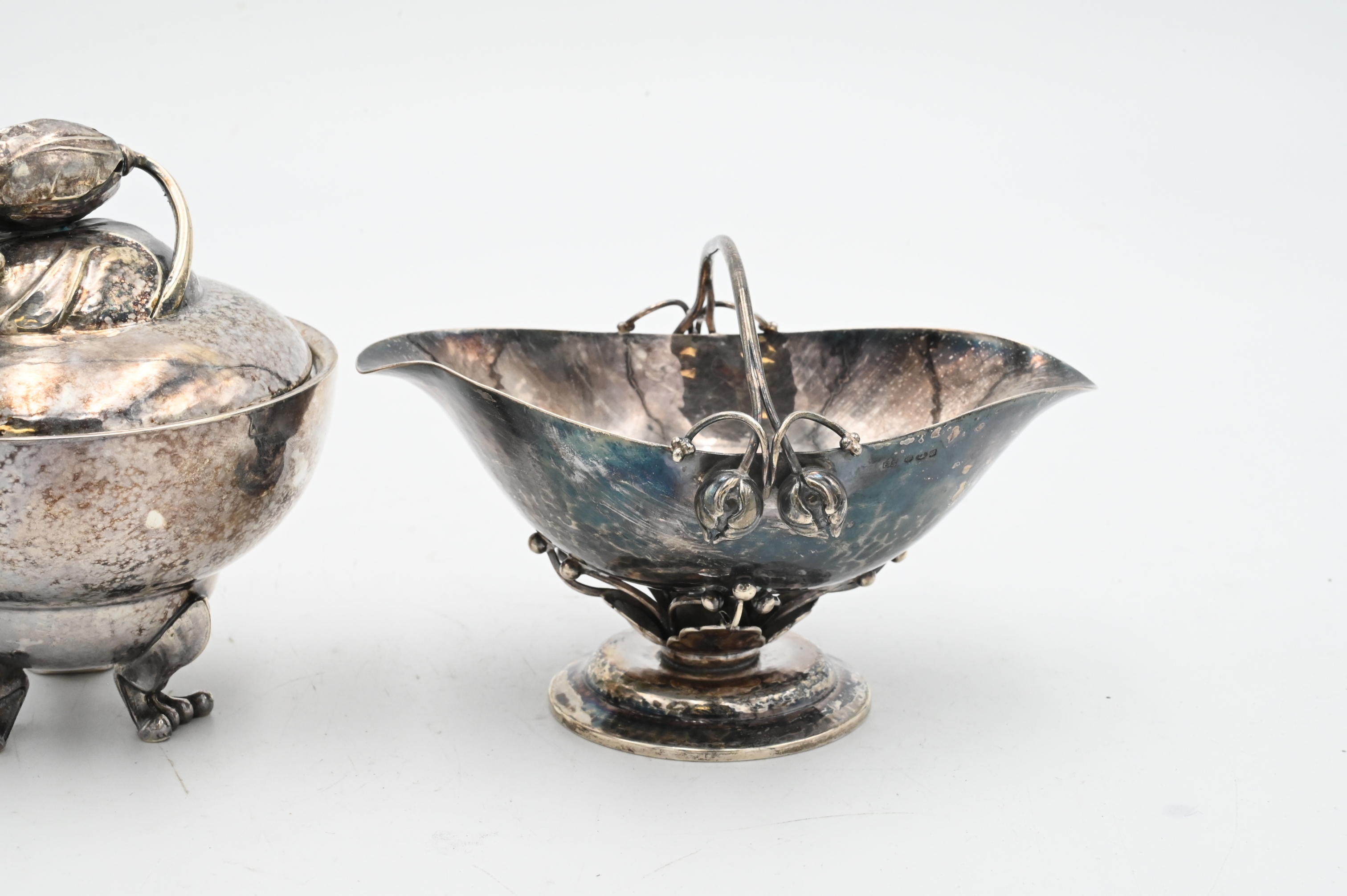 Two Piece Georg Jensen Sterling Silver Covered Sugar Lot, height 4 1/2 inches and Open Sugar Bowls, height 3 1/2 inches 12.4 t.oz.