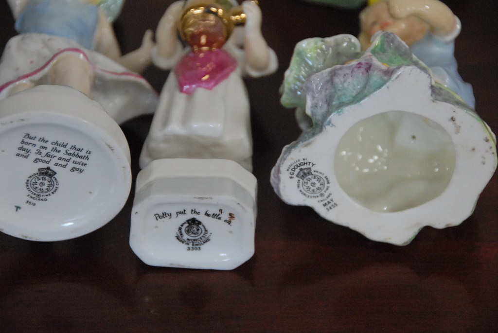 Five Royal Worcester porcelain figures.