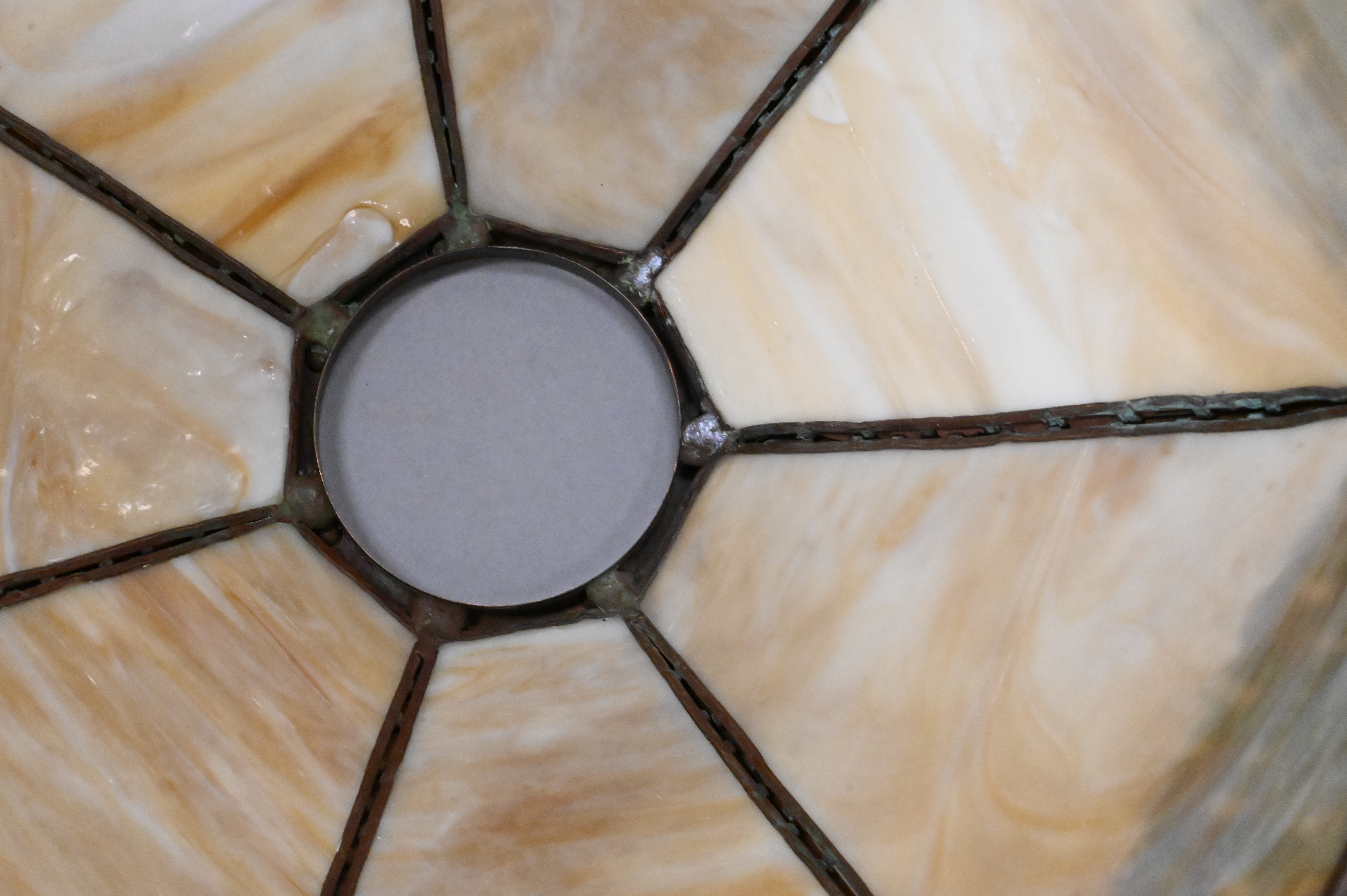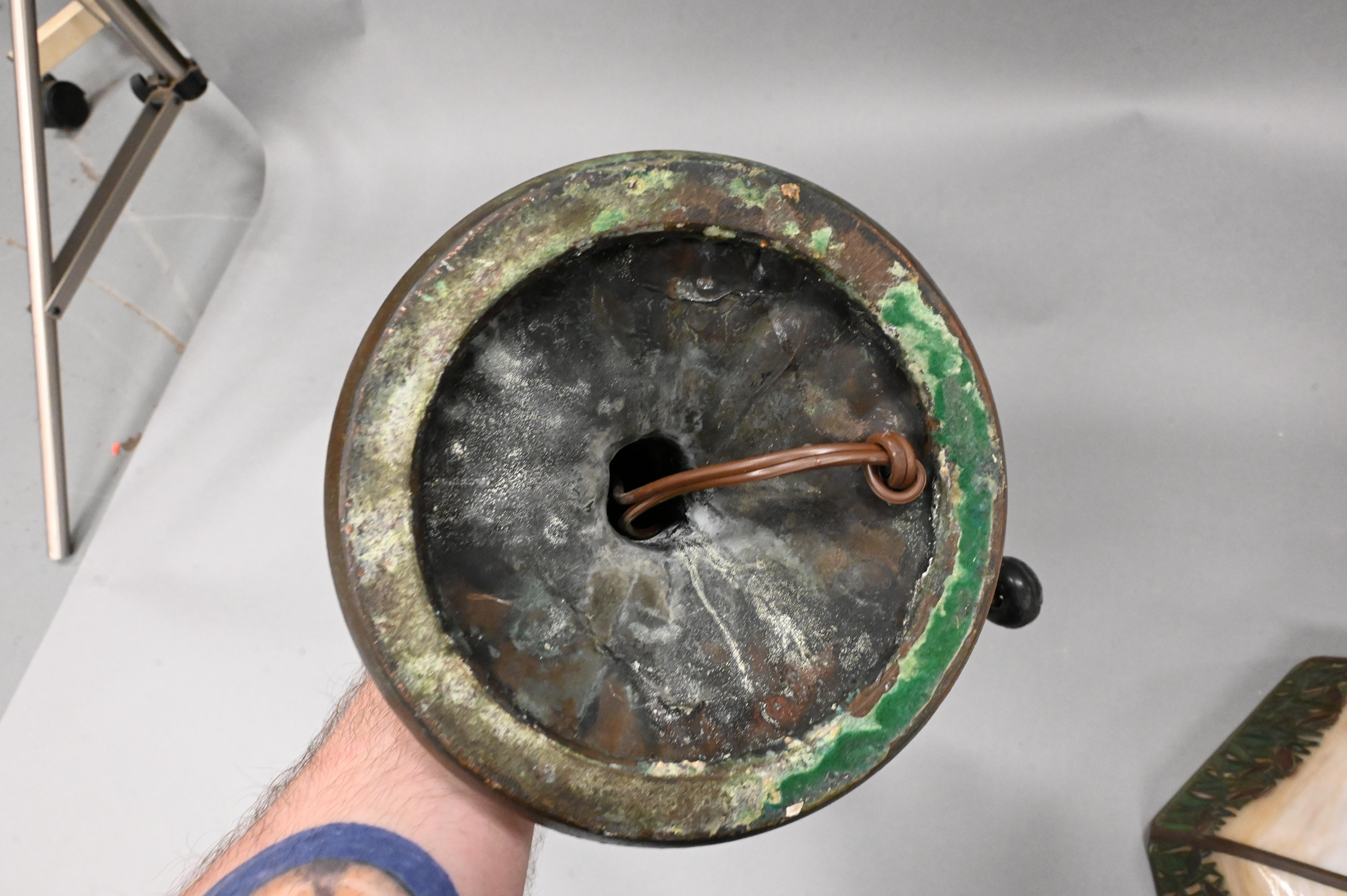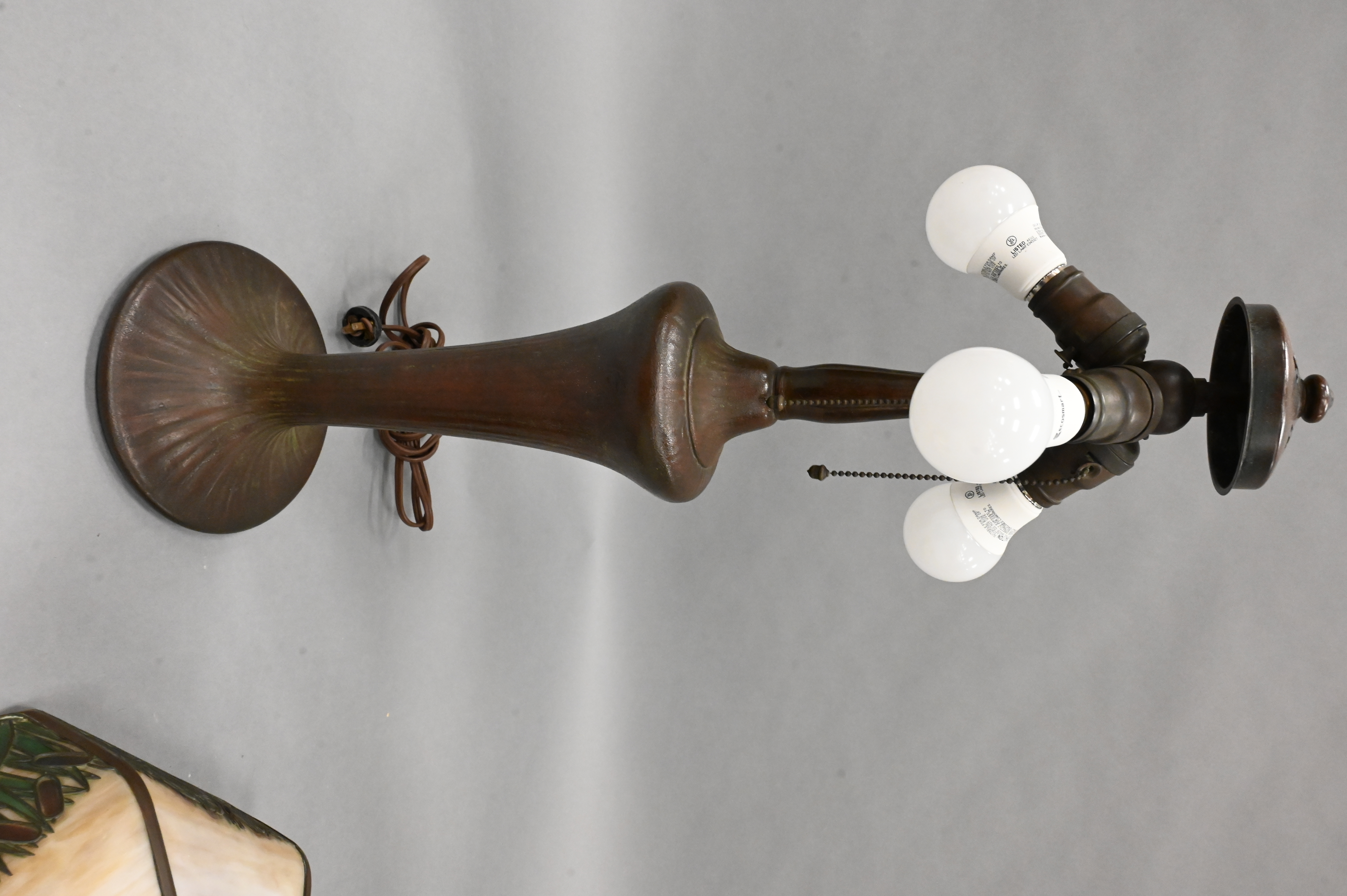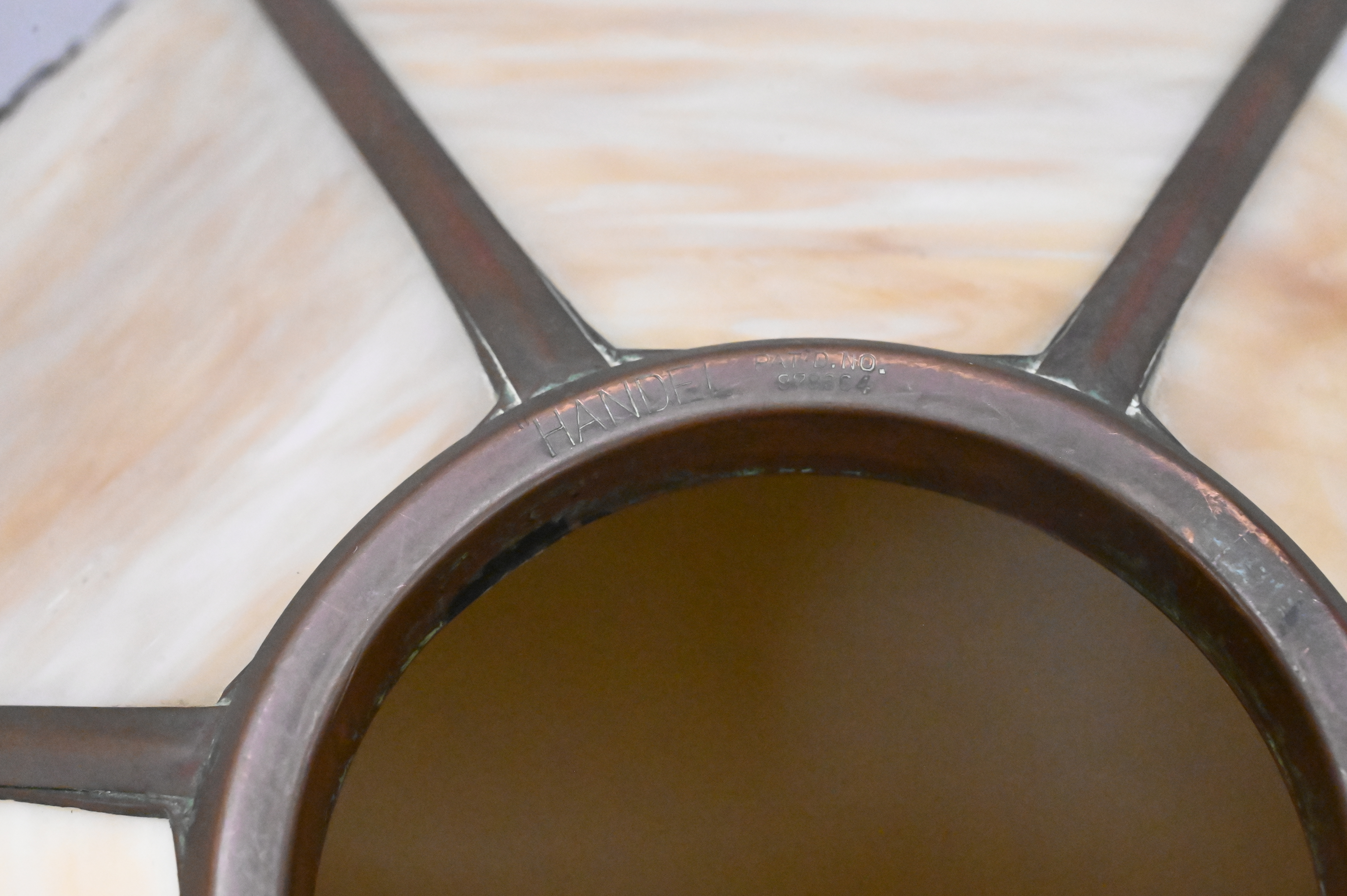 Lot 211: Handel Leaded Glass and Patinated Bronze Table Lamp