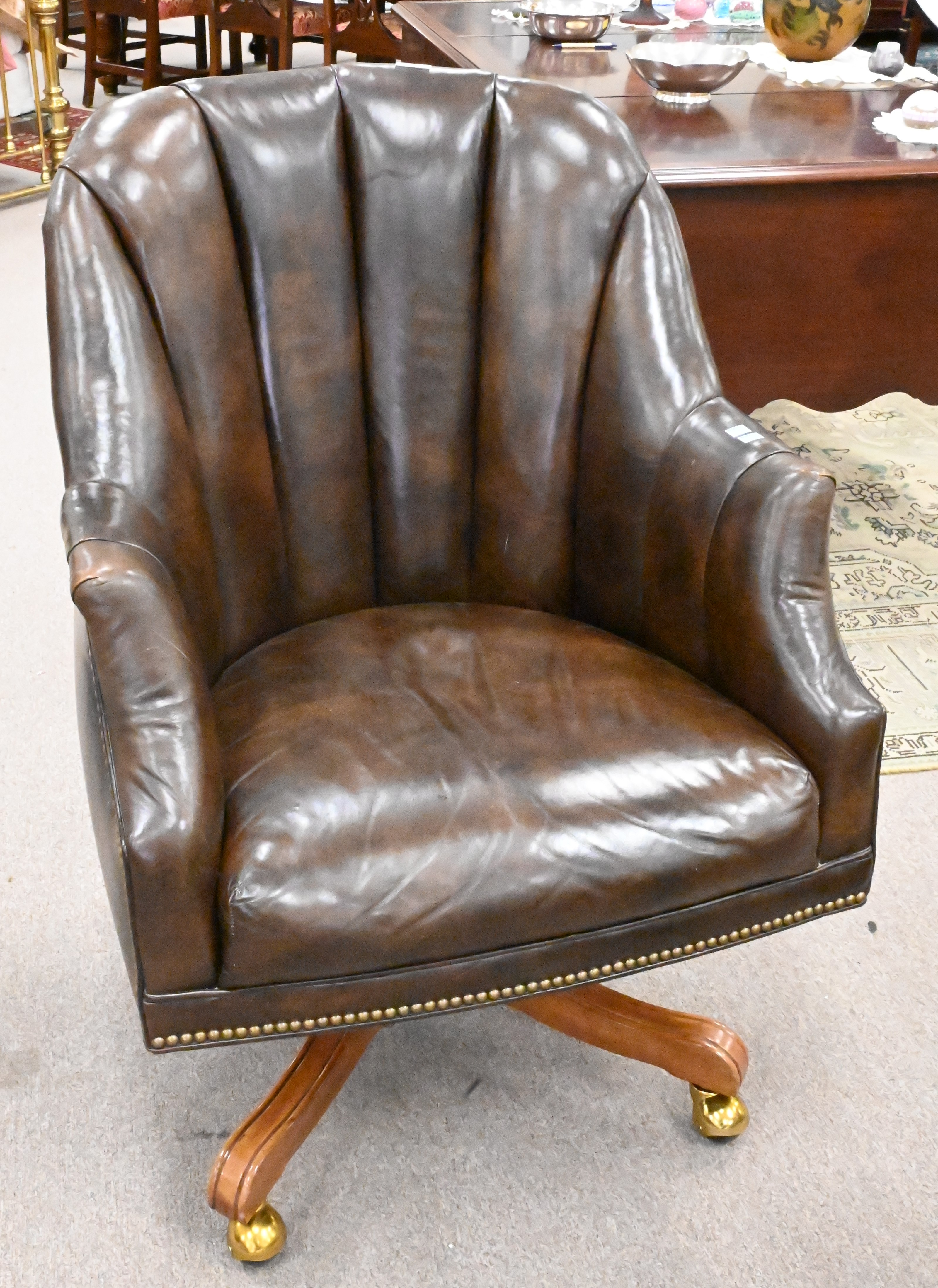 John Widdicomb Leather Office Chair, set on swivel base, height 40 inches, width 27 inches.