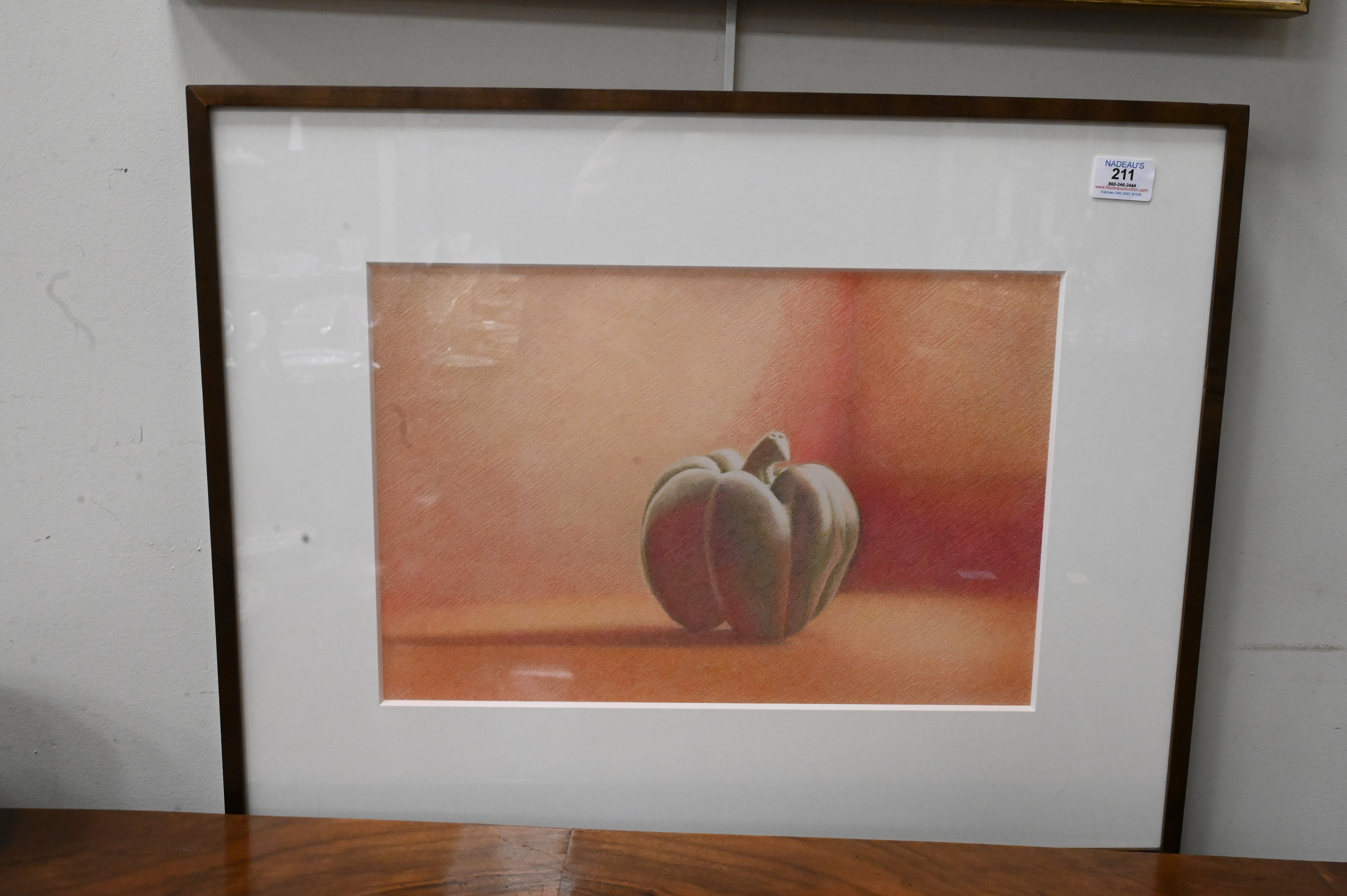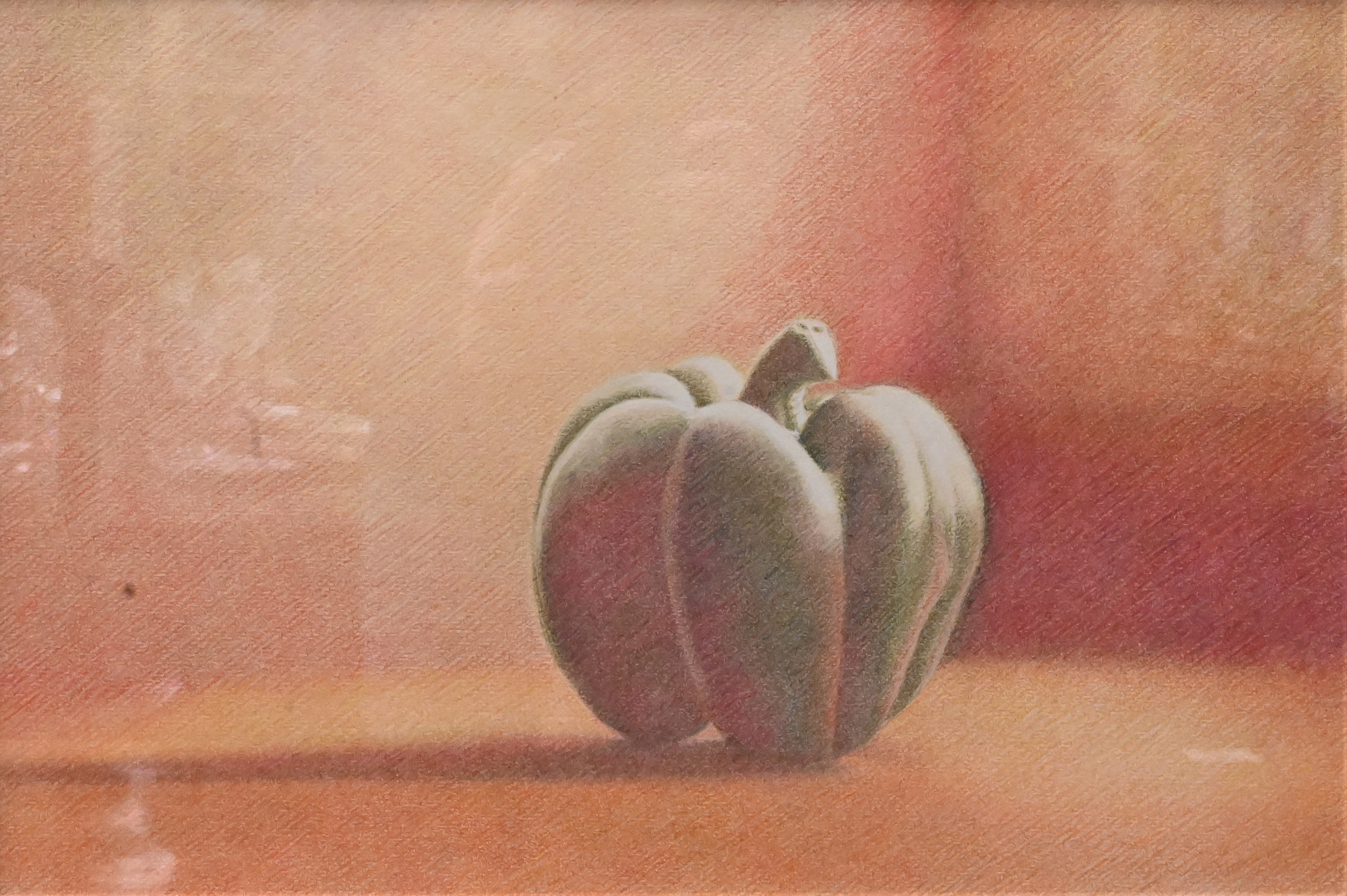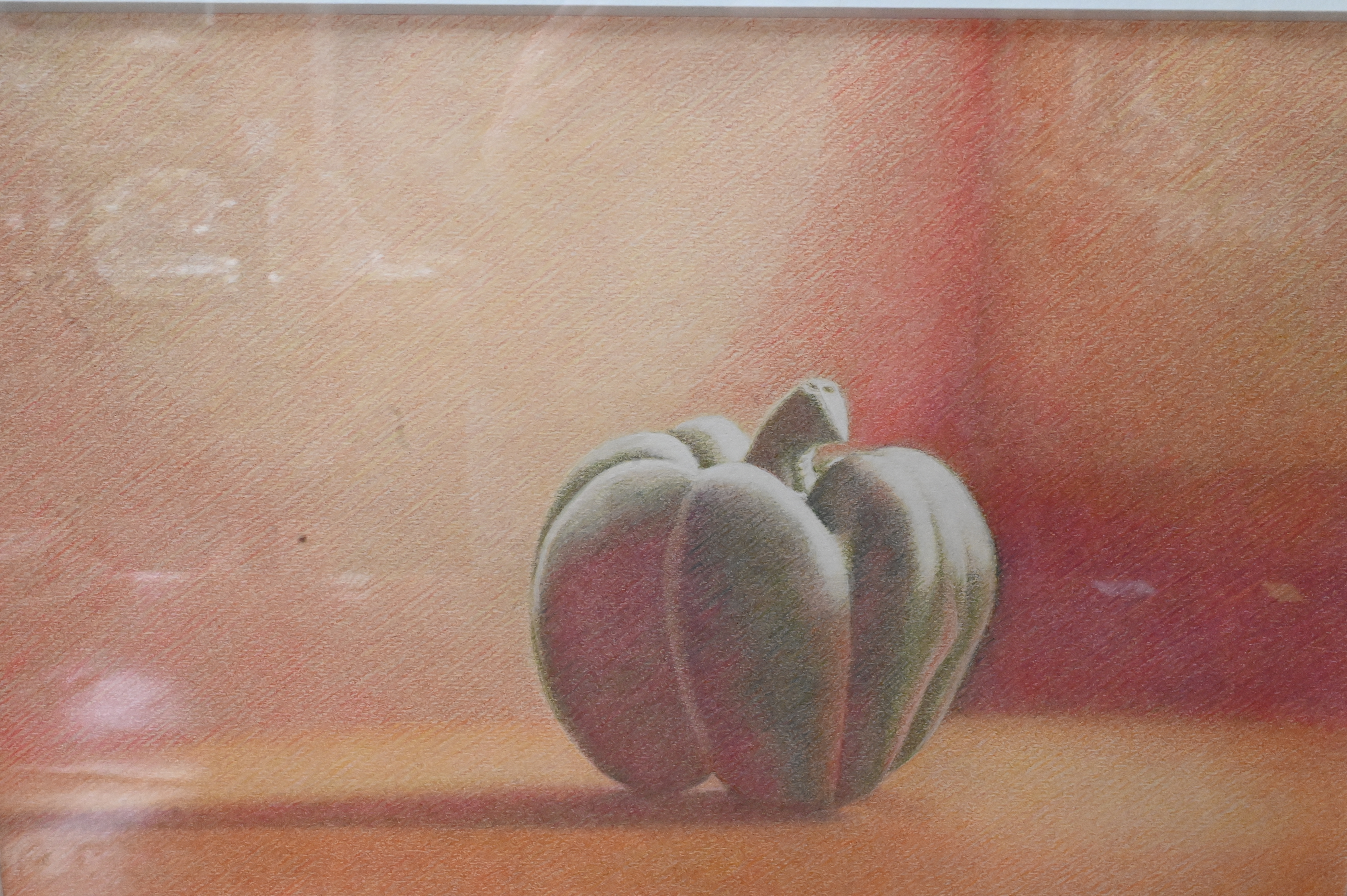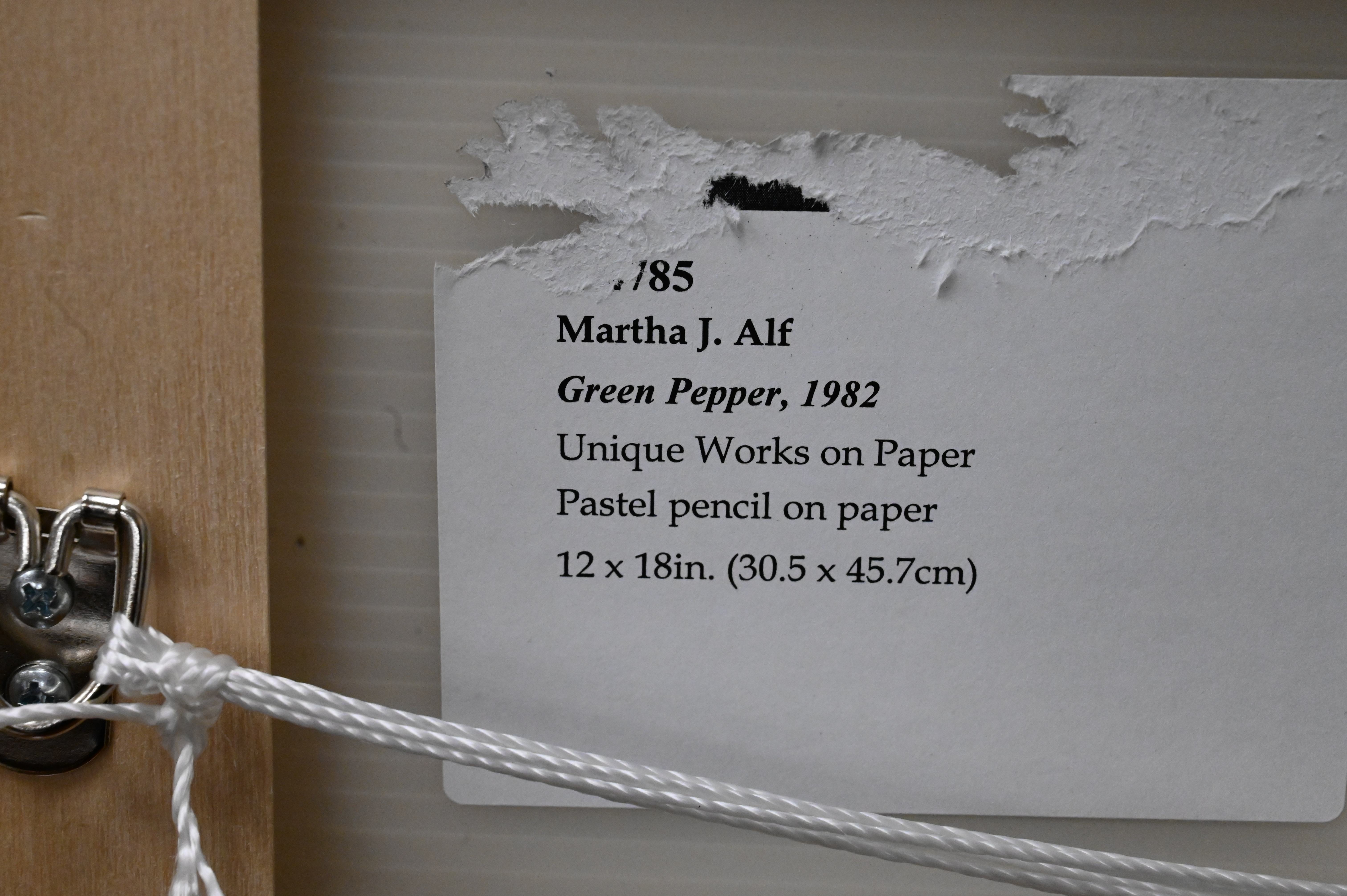 Martha J. Alf (1930 – 2019), pastel and pencil on paper, ‘Green Pepper’, 1982, unsigned label on back, sight size 20 1/2″ x 26″ x 1 1/2″.