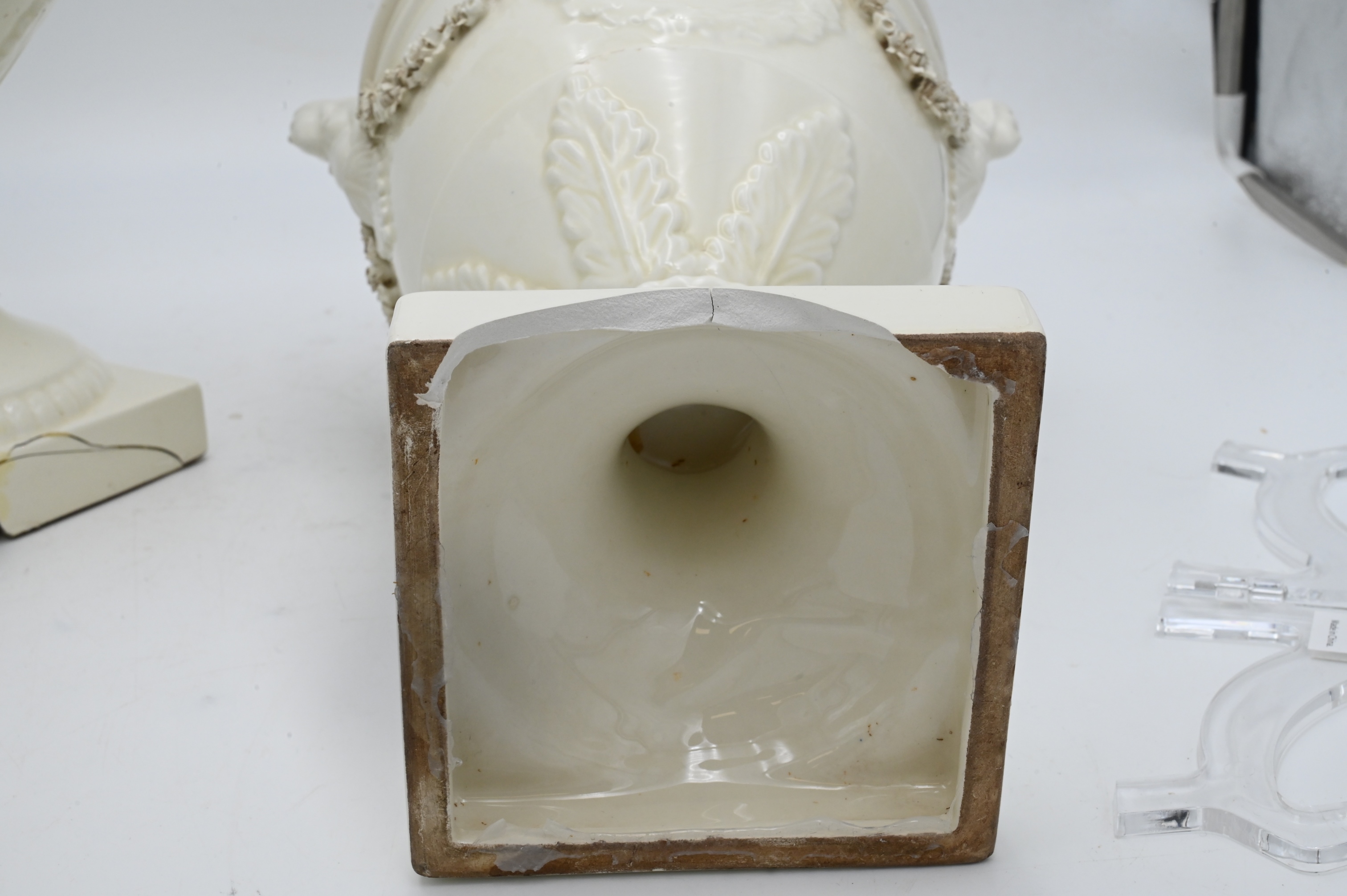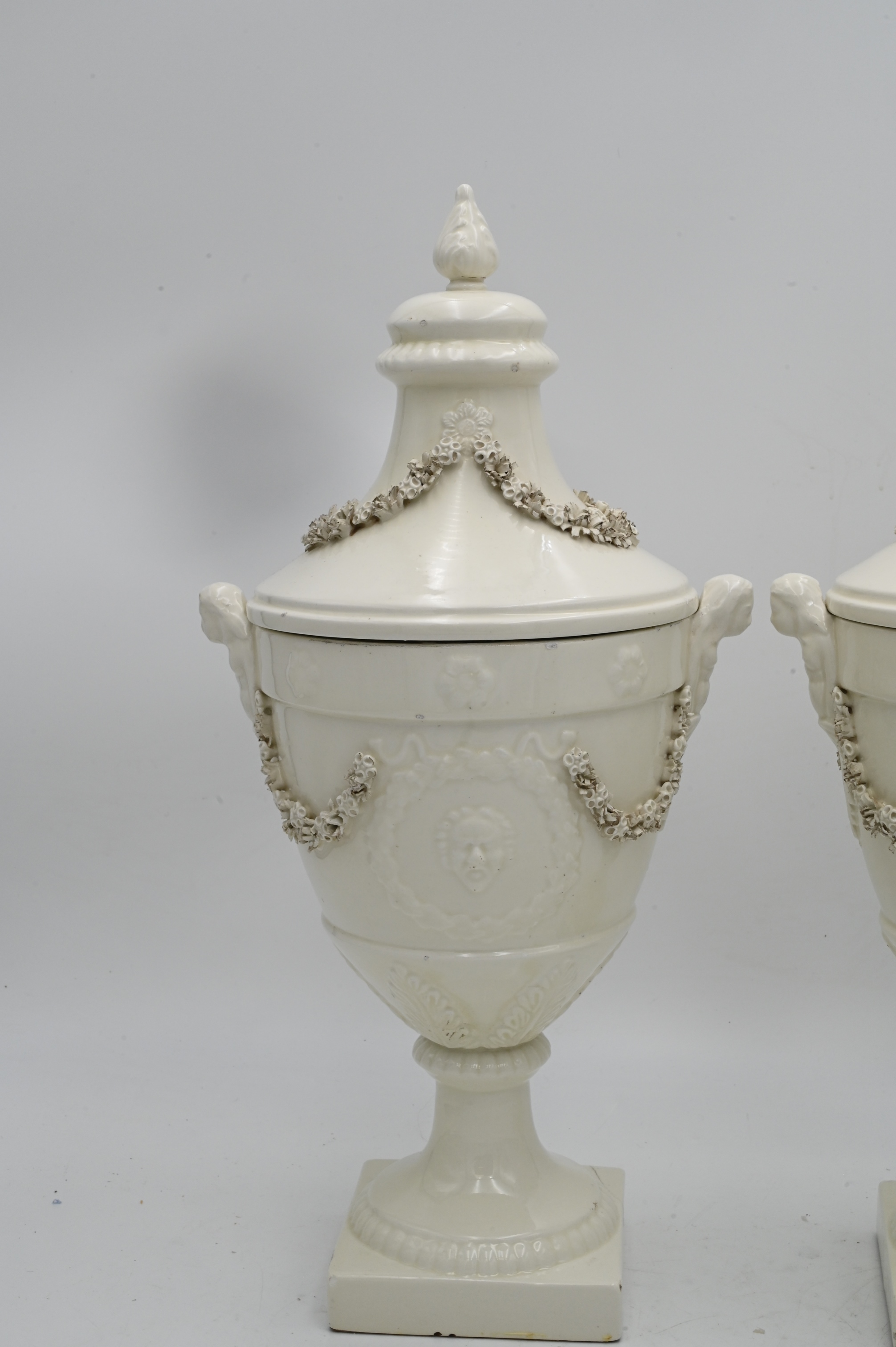 Lot 211: Pair of Continental Ivory Glazed Urns