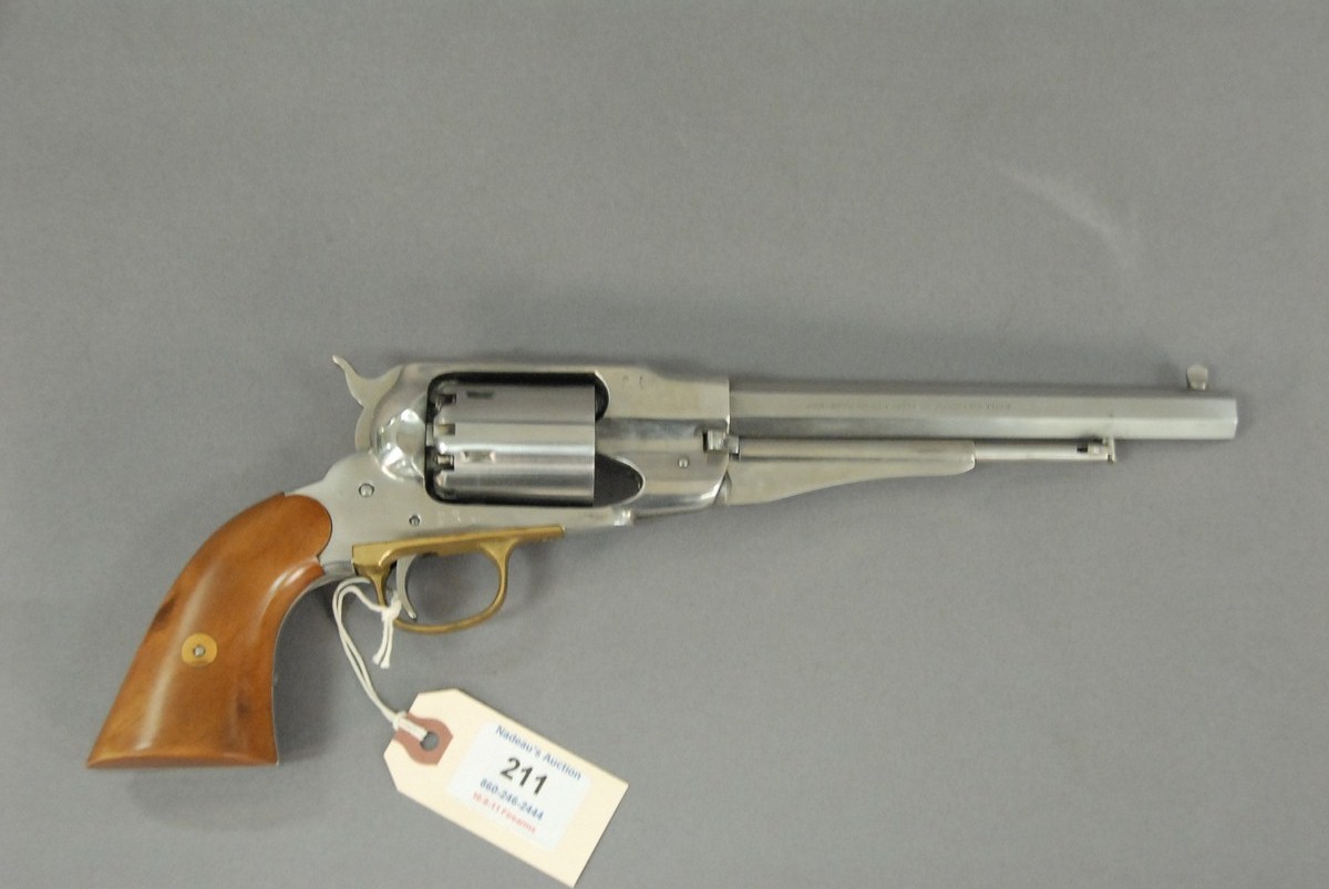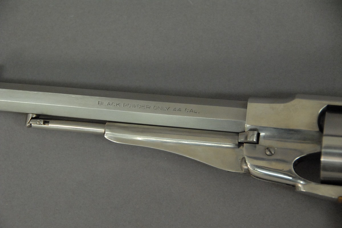 Reproduction Navy Arms copy of a Remington new model Army, .44 caliber, percussion pistol stainless.