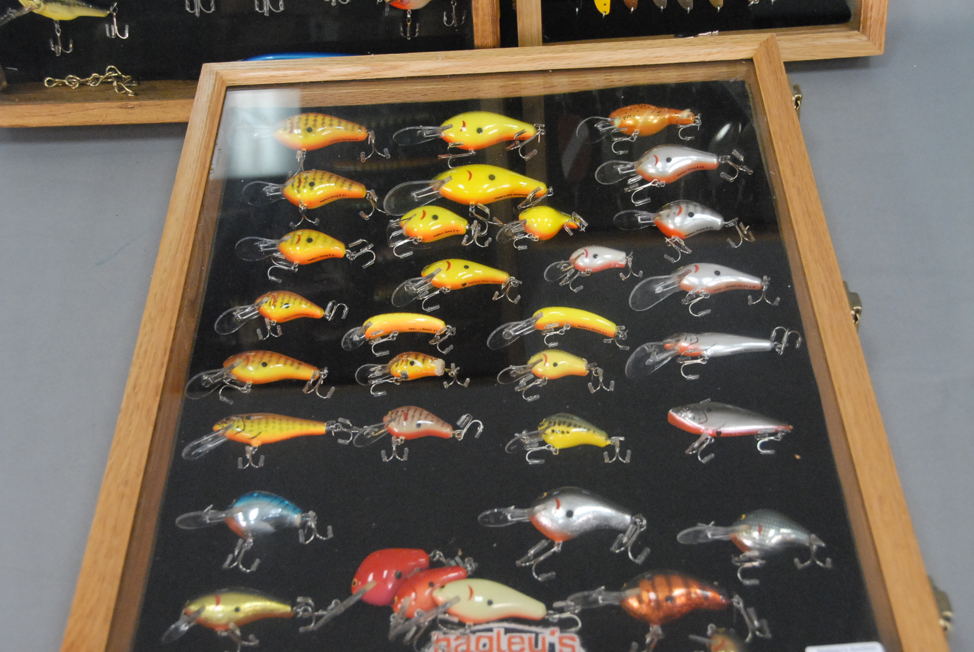 Three cases of lures, approximately 80 in total including side winders and bagleys, etc.
