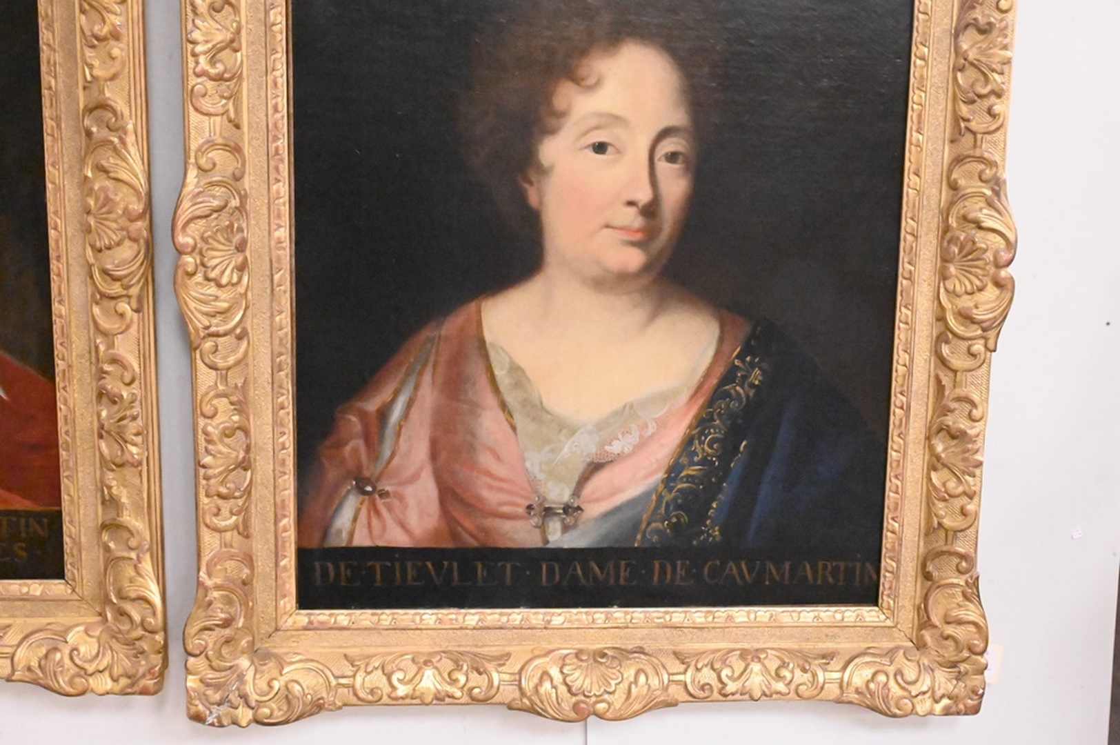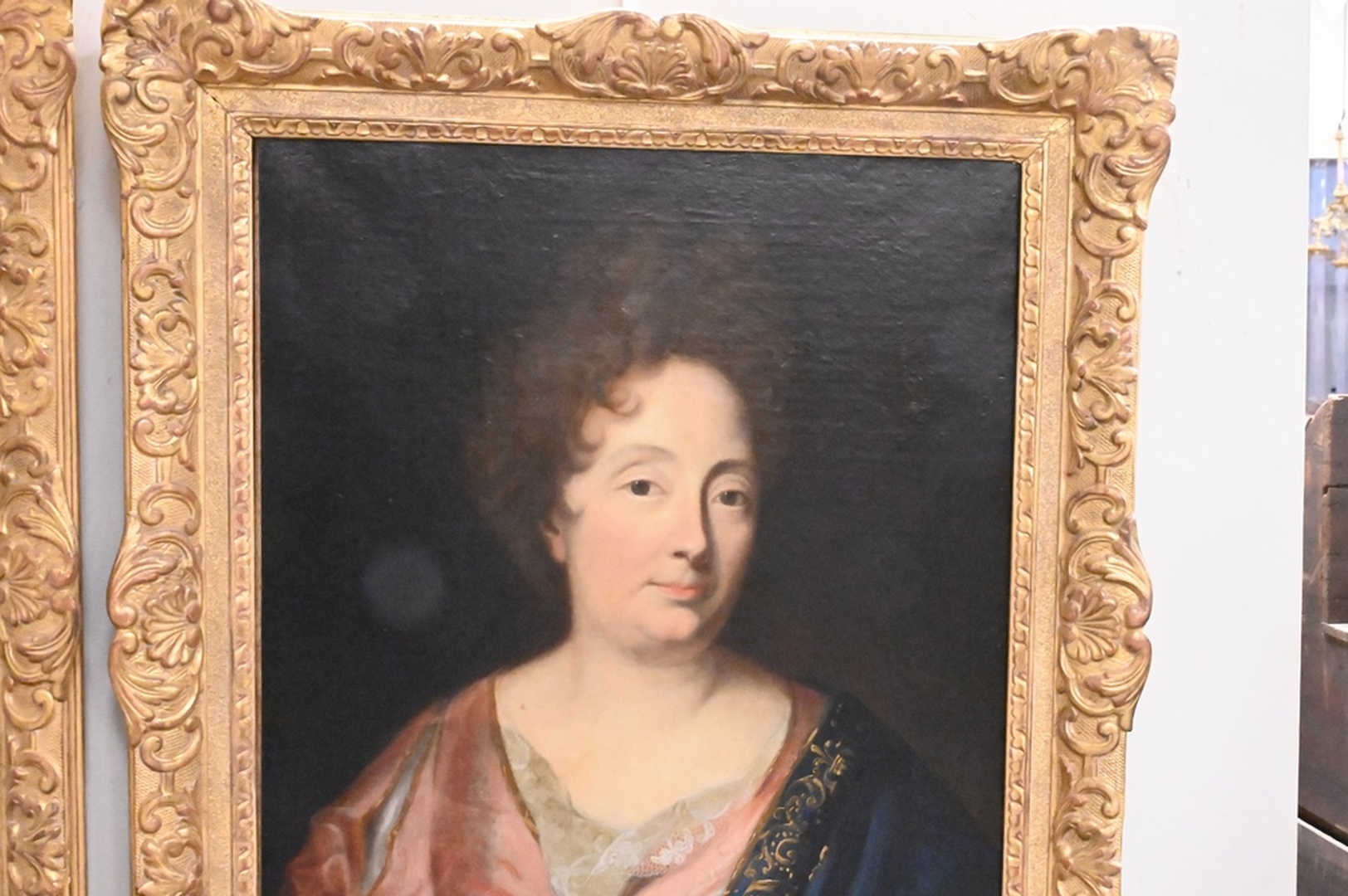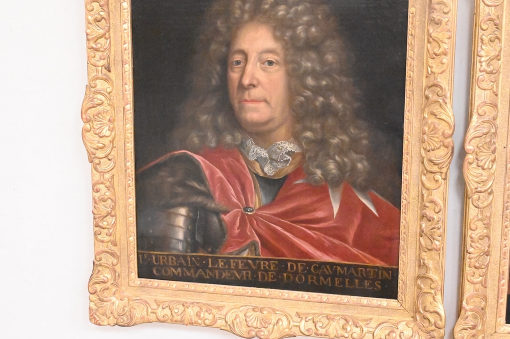 Circle of Robert Levrac-Tournieres (1667 – 1752), portrait of Commander Urbain Lefevre de Caumartin, along with a companion portrait of his wife, each inscribed lower margin, oil on canvas, sight size 24 1/4″ x 19 1/4″, copy of receipt $4,370. Provenance: Christie’s New York, Sale #7915, 10/2/96, lot 111.
