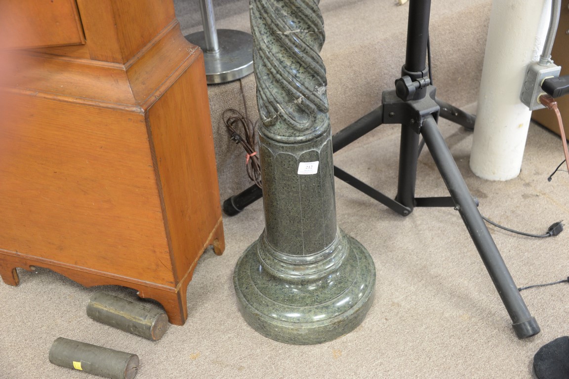 Lot 212: Green granite pedestal with twist shaft.