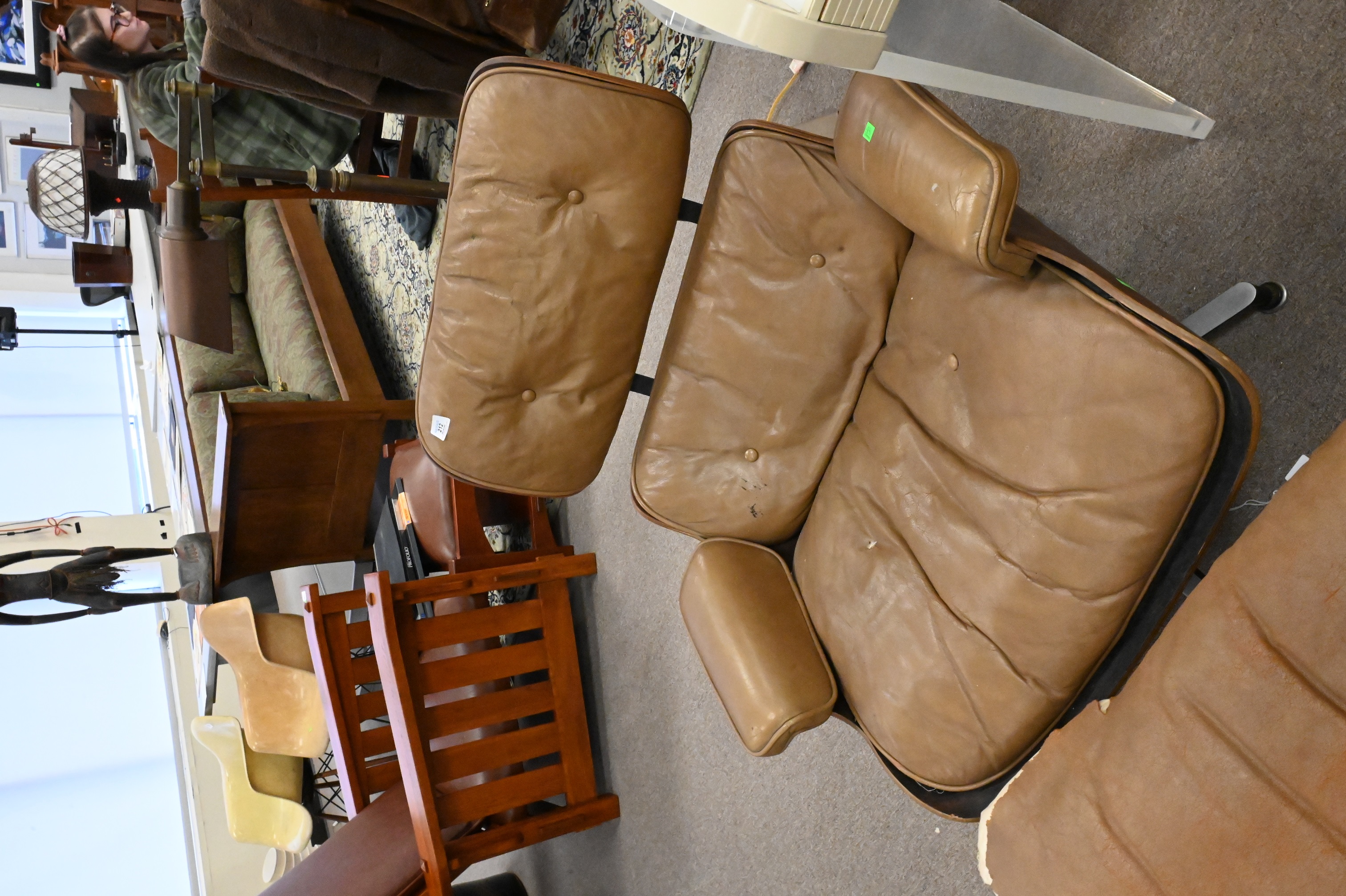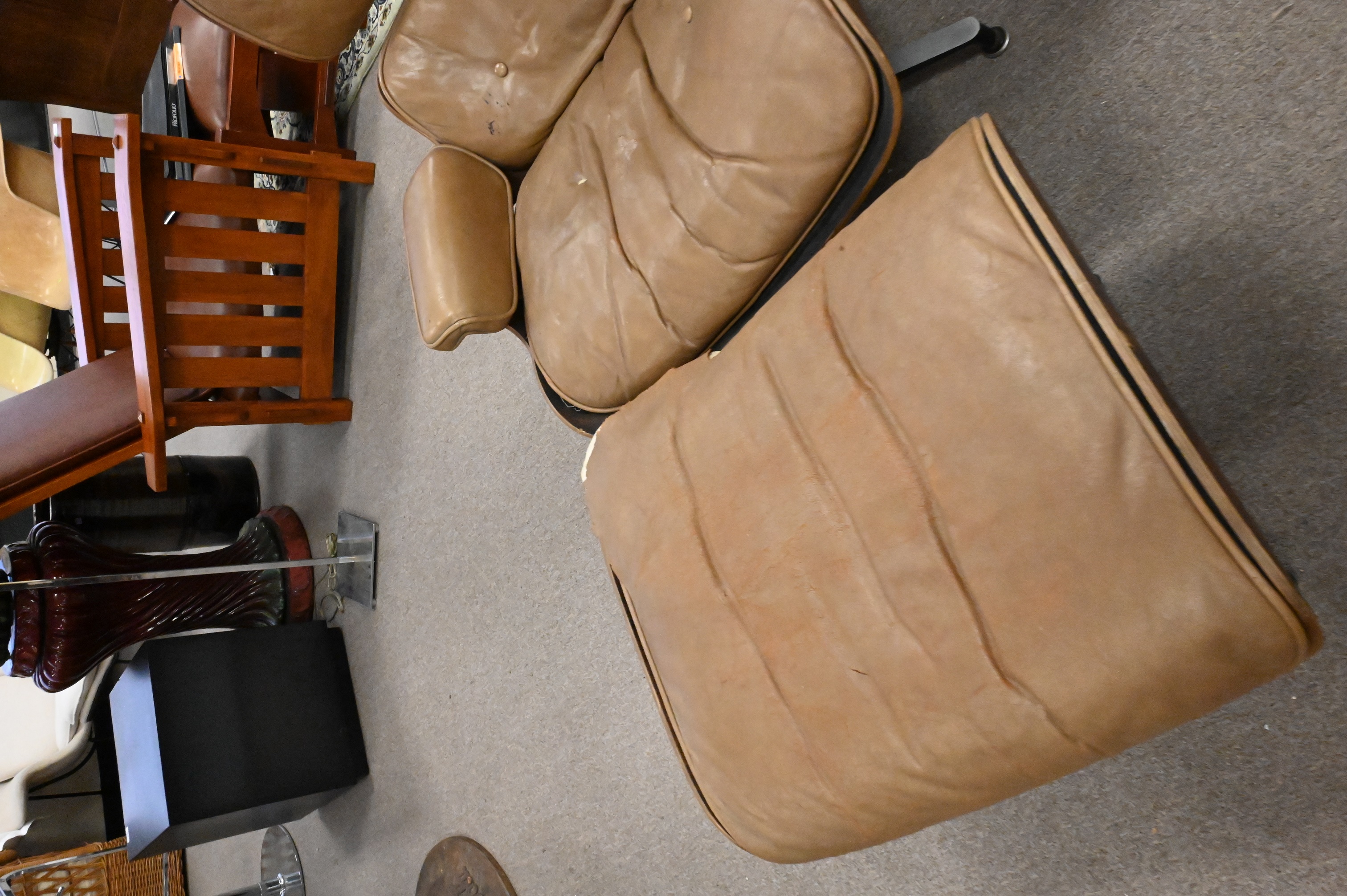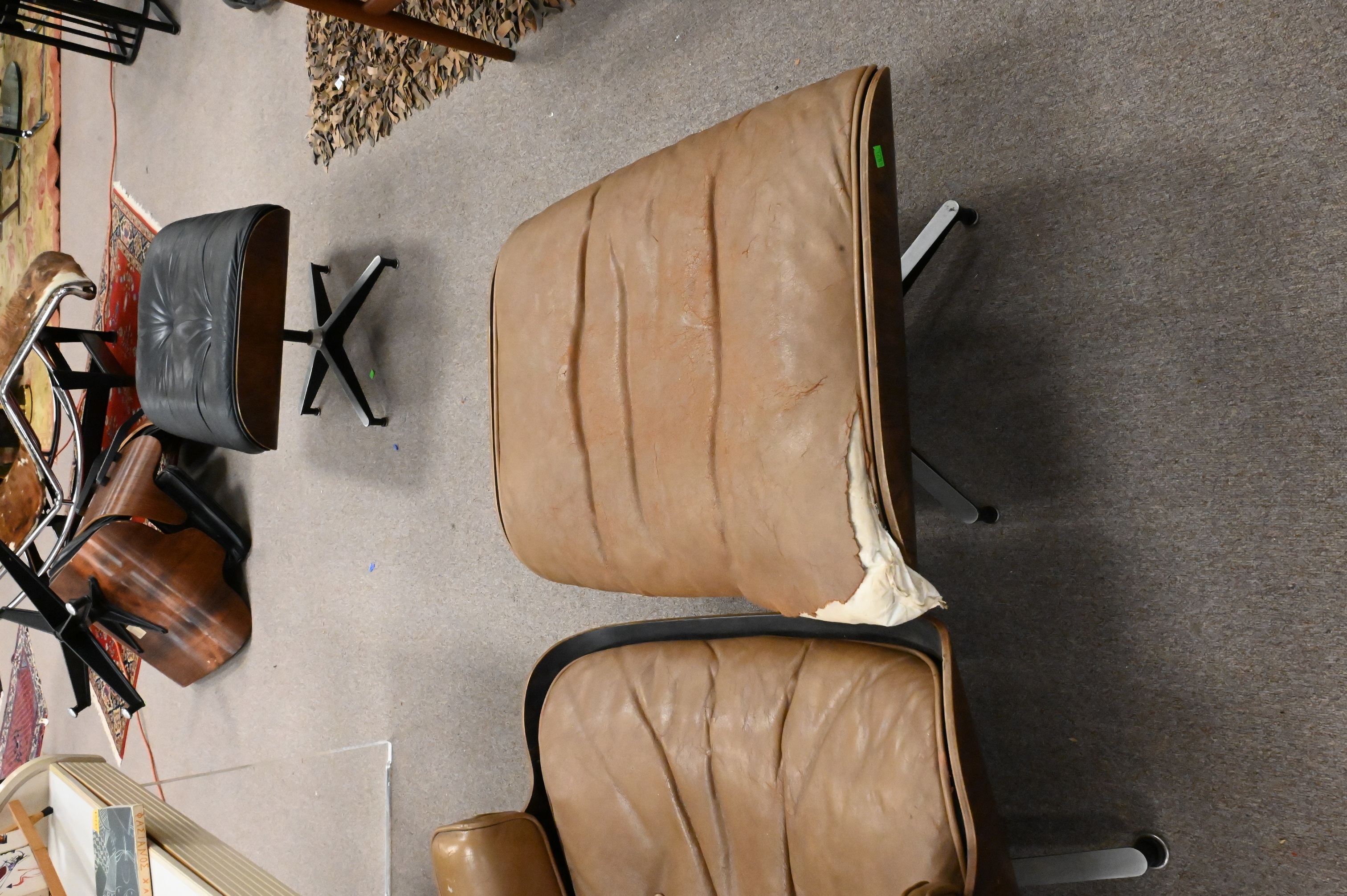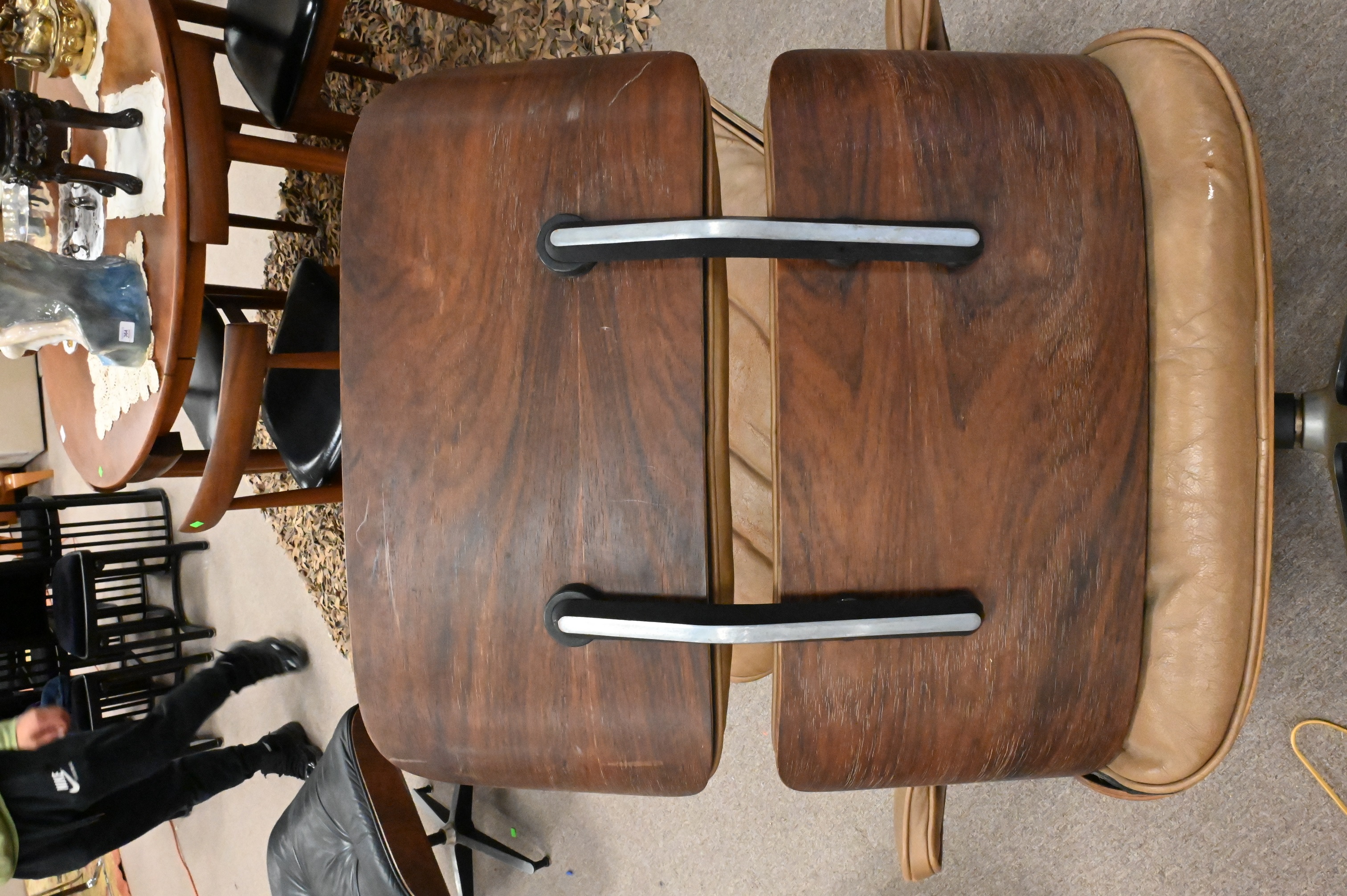Lot 212: Herman Miller Eames 670 Tan Leather Lounger with Ottoman