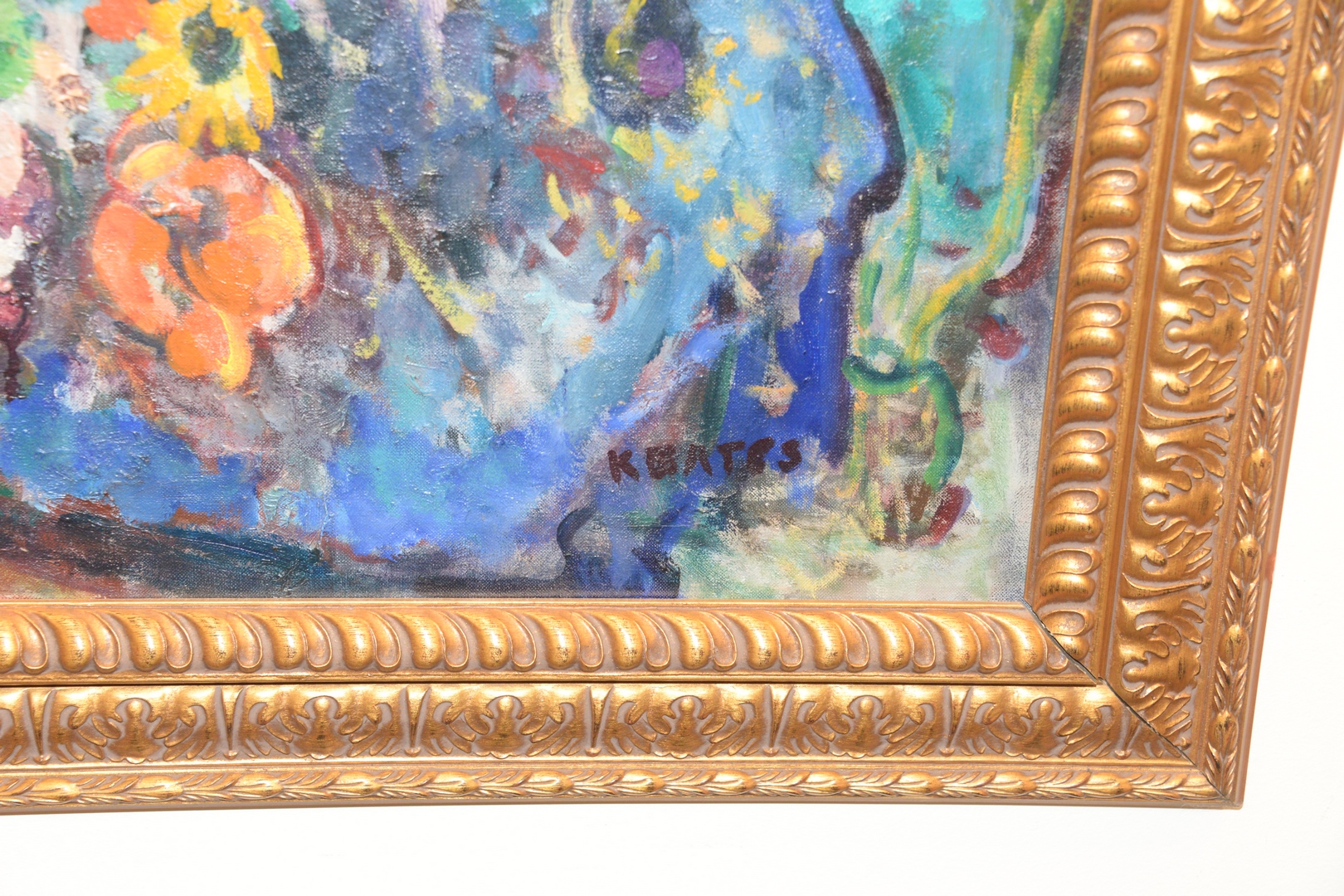 Kenneth Earl Bates (American, 1895 – 1973), Flowers, oil on canvas, signed lower right, 36″ x 29 1/2″. Provenance: Matthes-Theriault Collection, Woodbridge, Connecticut.
