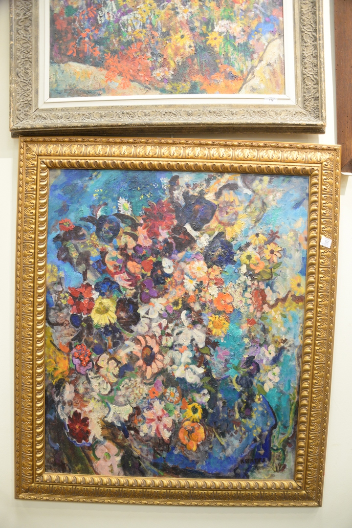 Lot 212: Kenneth Earl Bates (American, 1895 – 1973), Flowers, oil on canvas, signed lower right, 36″ x 29 1/2″. Provenance: Matthes-Theriault Collection, Woodbridge, Connecticut.