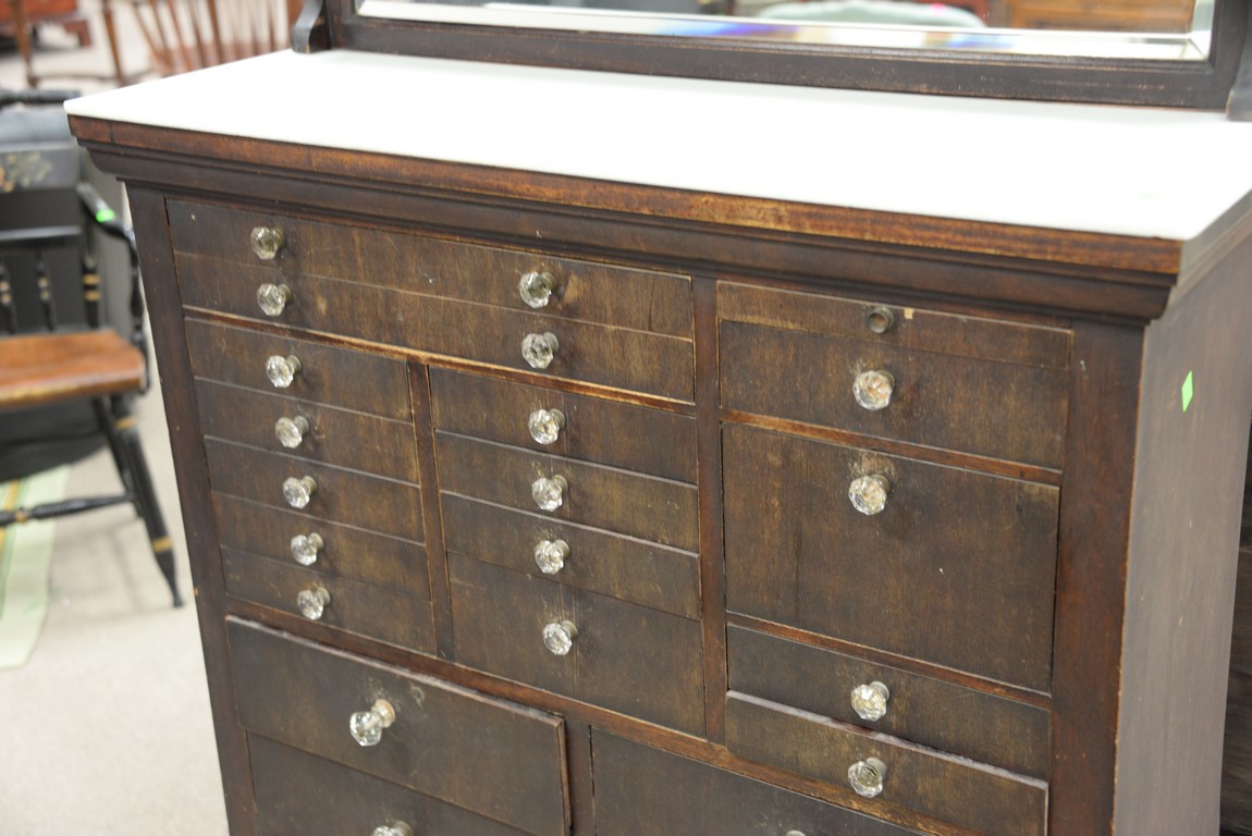 Mahogany dental cabinet. ht. 58 in. wd. 33 in. dp. 11 in.