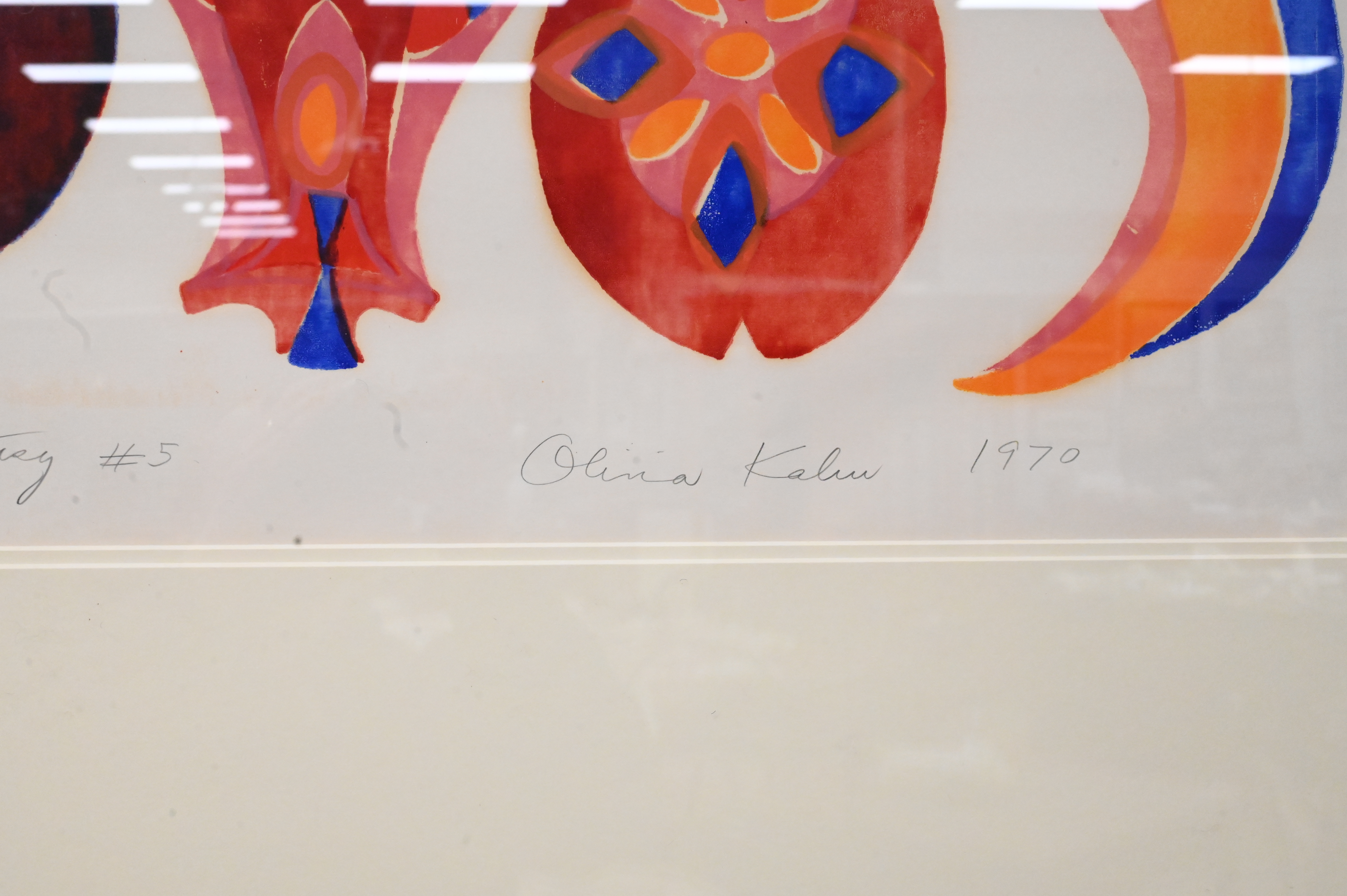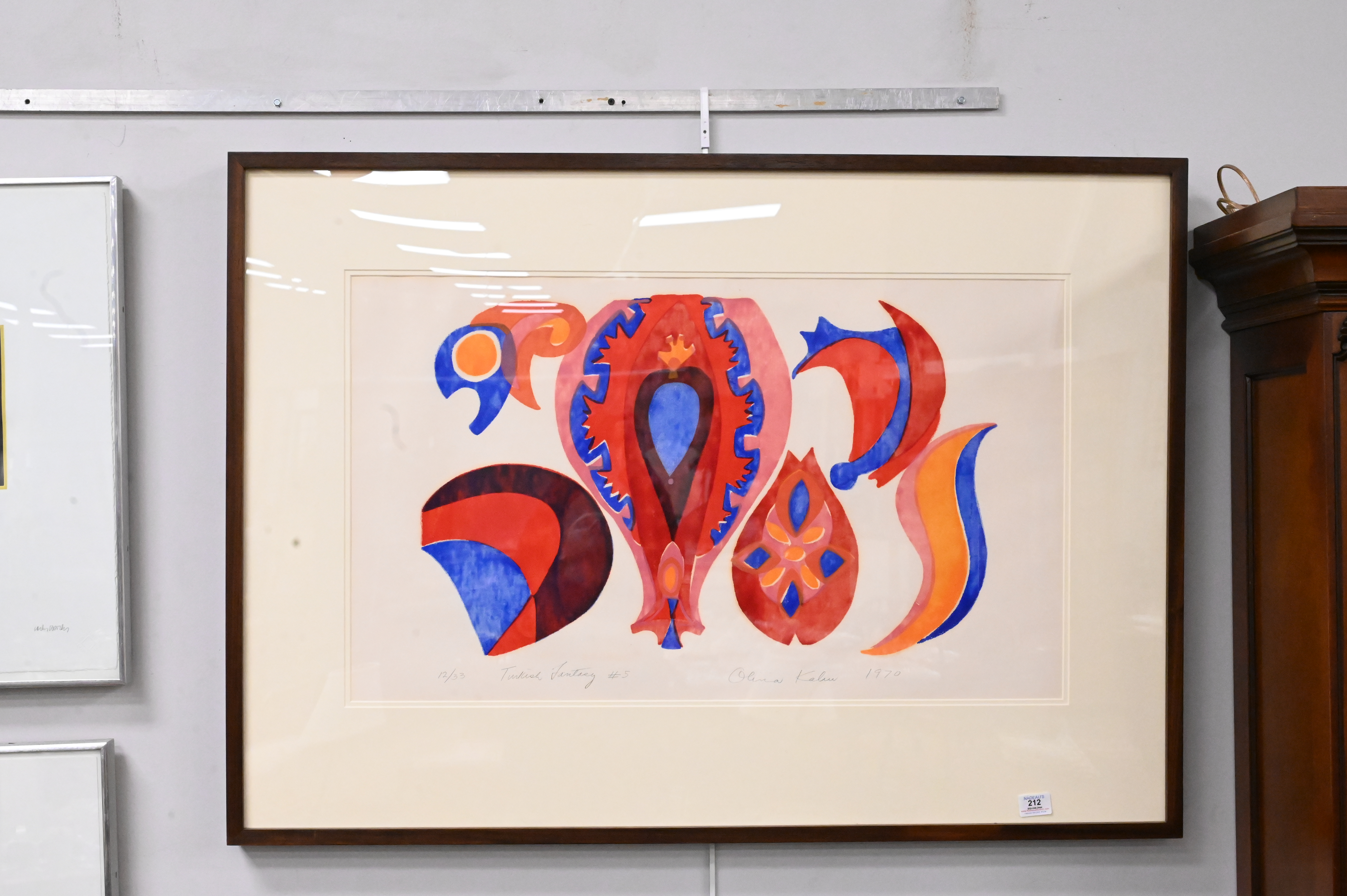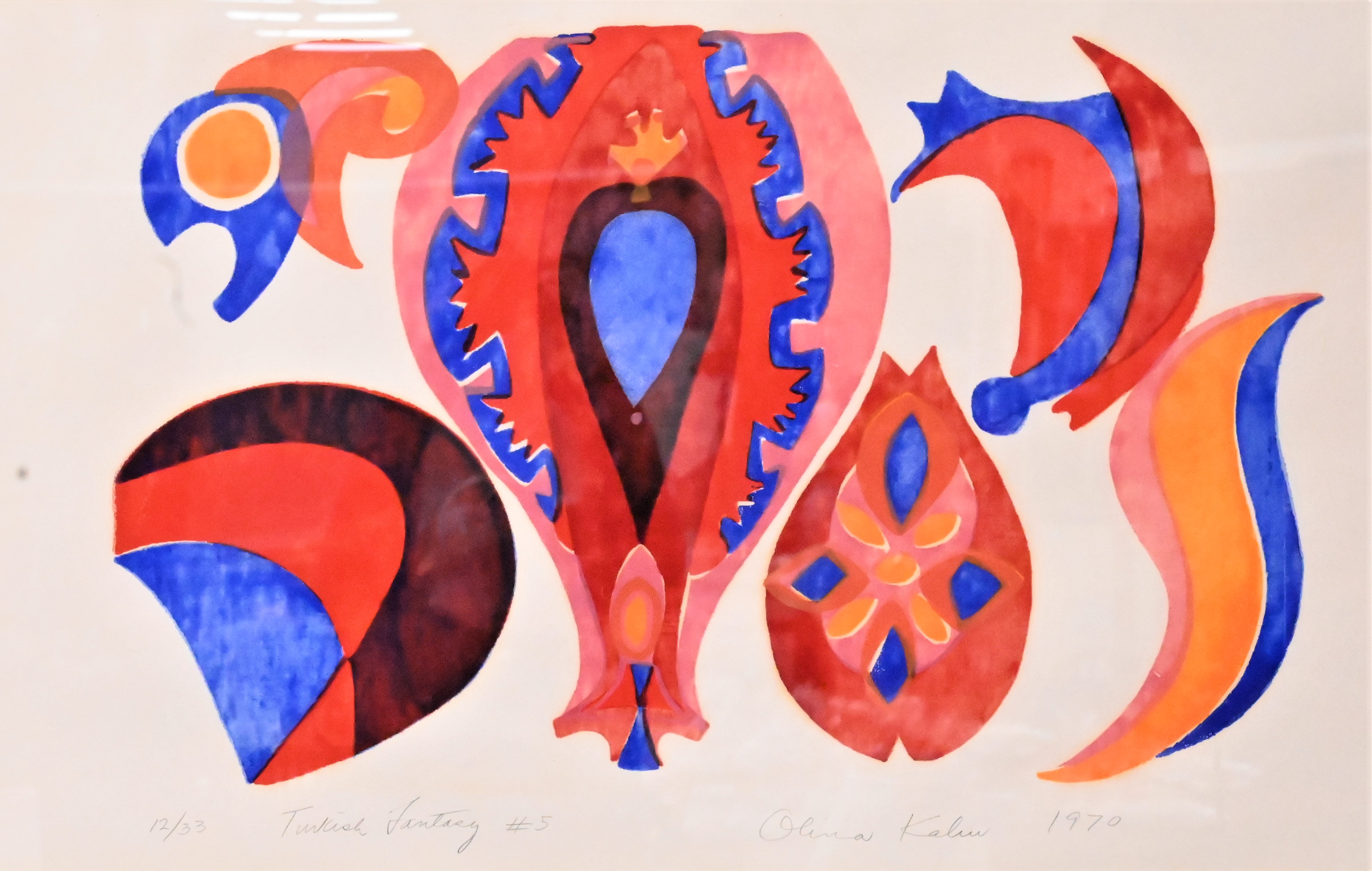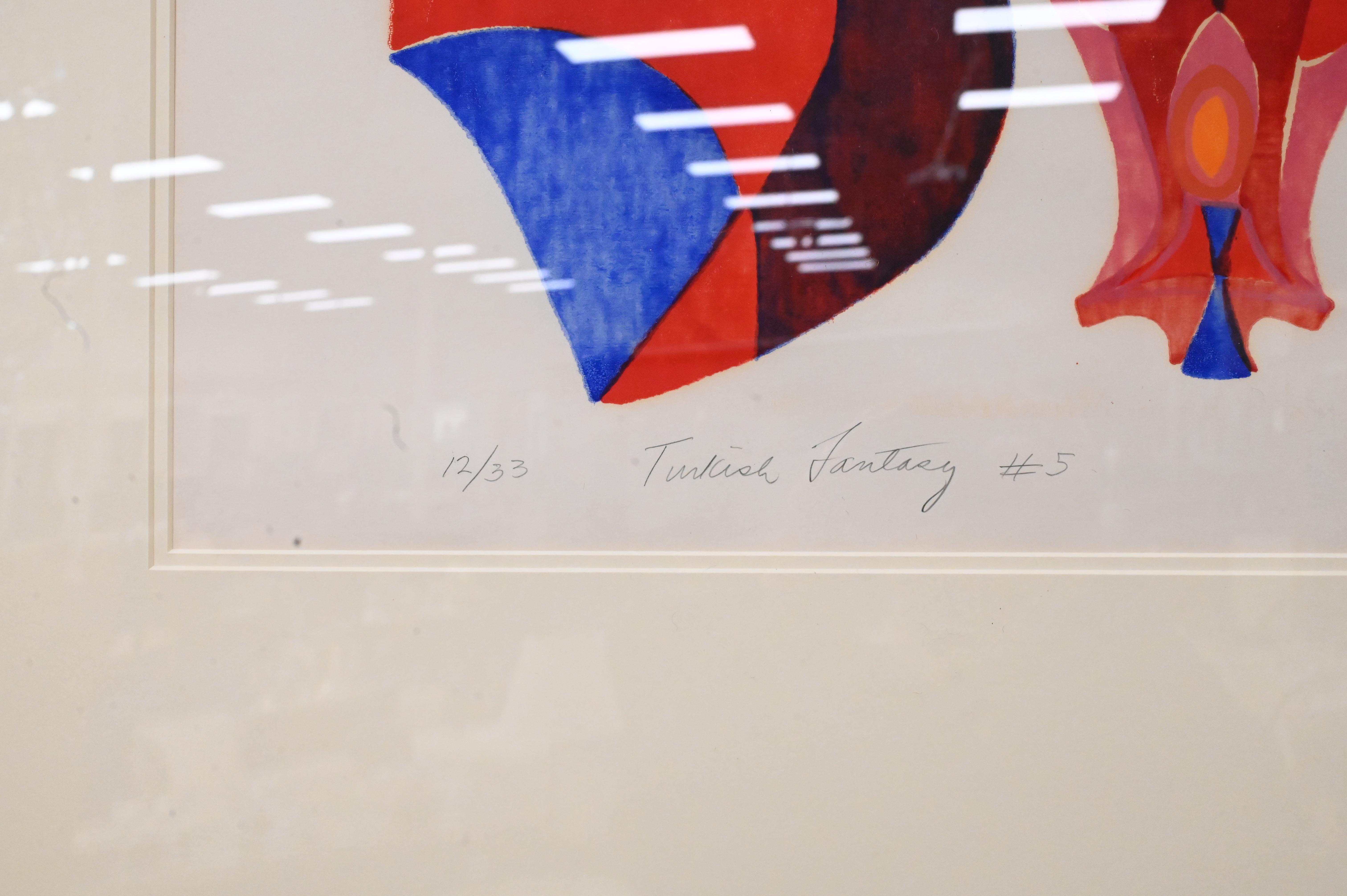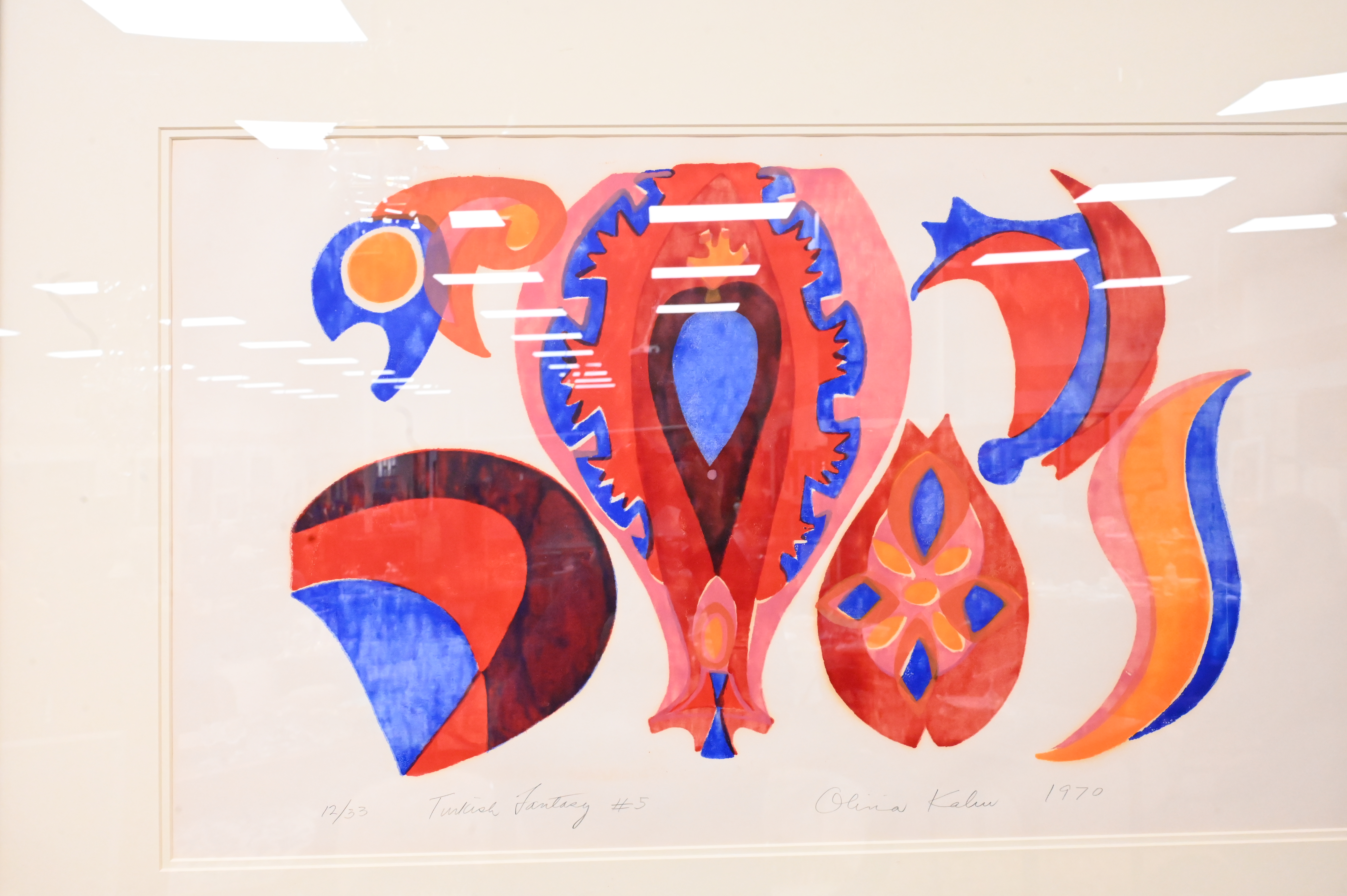 Olivia Kahn (American, 1920 – 2015), silkscreen on paper, ‘Turkish Fantasy No. 5, 1970’, pencil signed, dated, titled and numbered, overall 22″ x 32″.