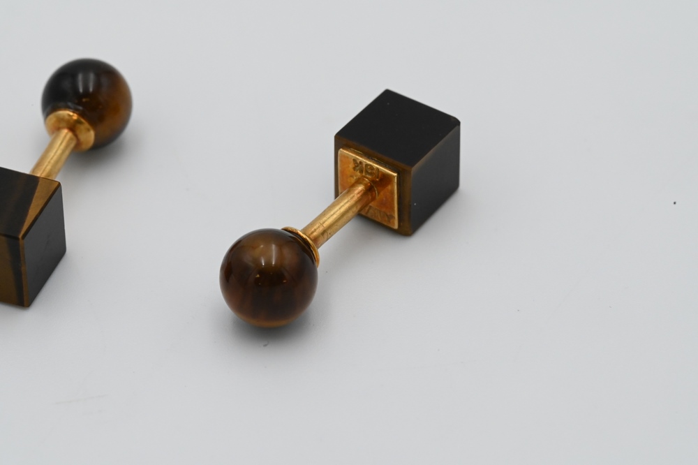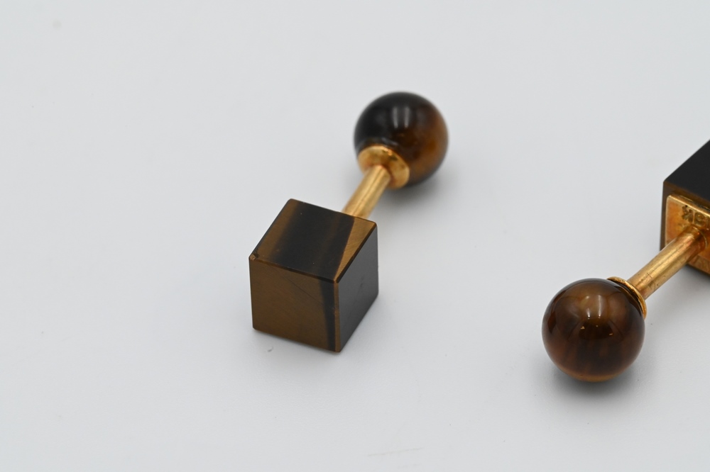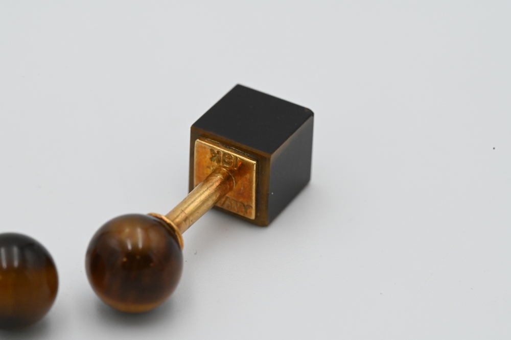Lot 212: Pair of Tiffany & Company 18 Karat Gold and Tiger Eye Cufflinks.