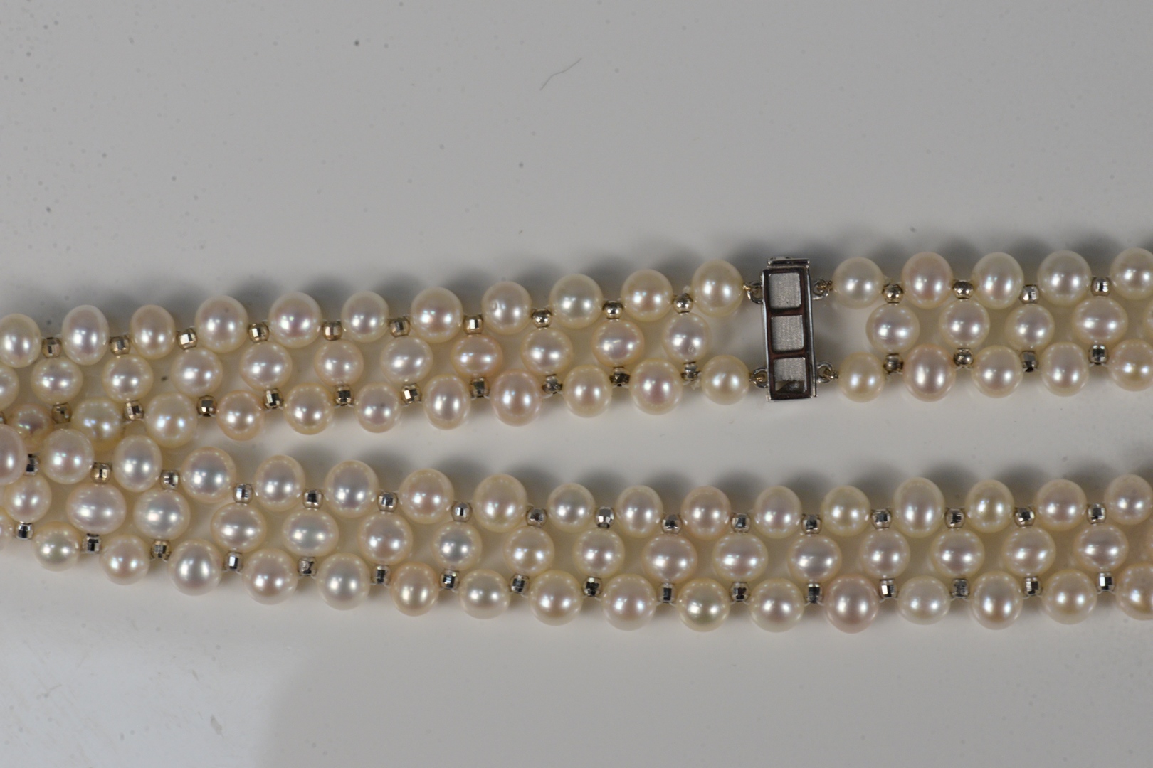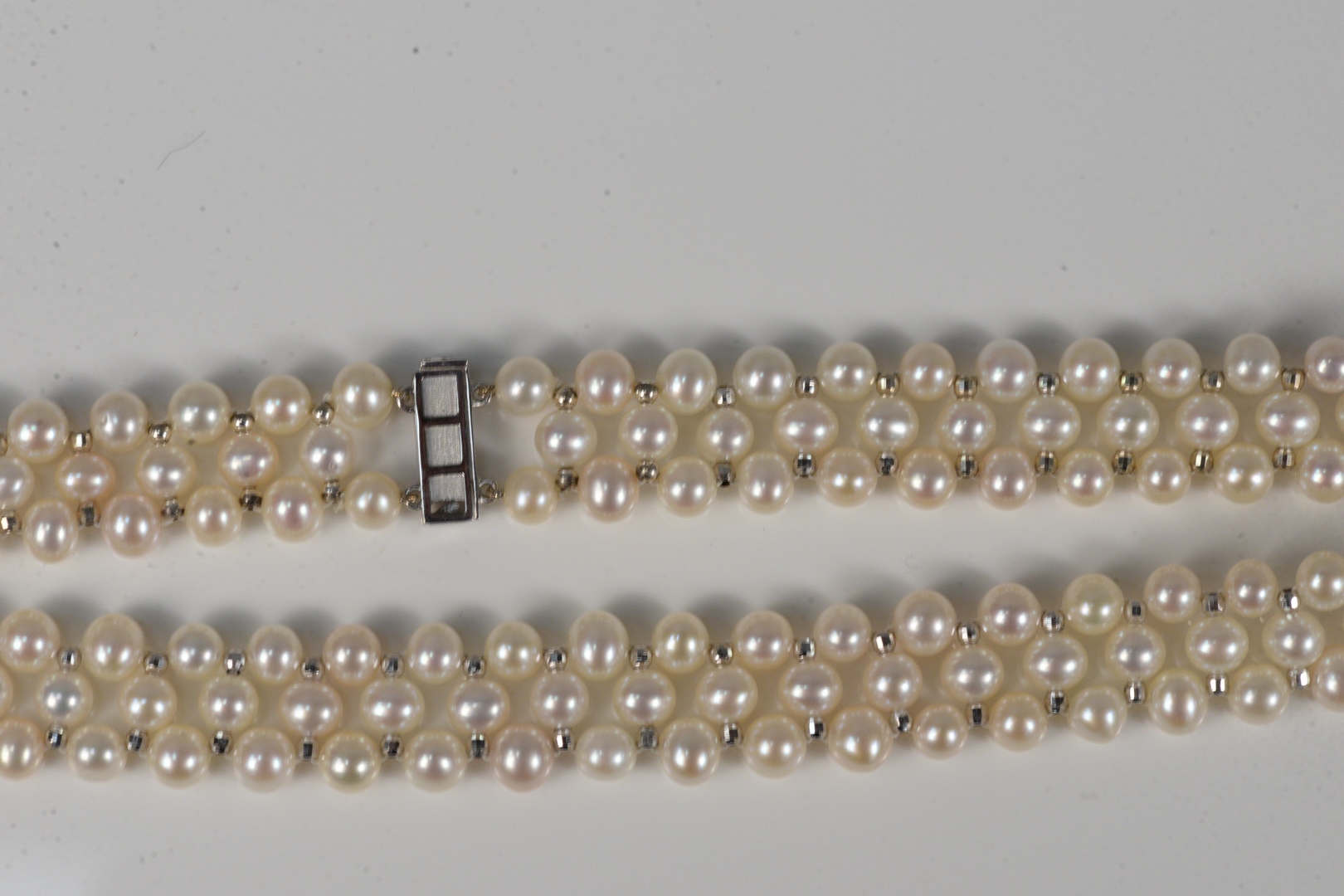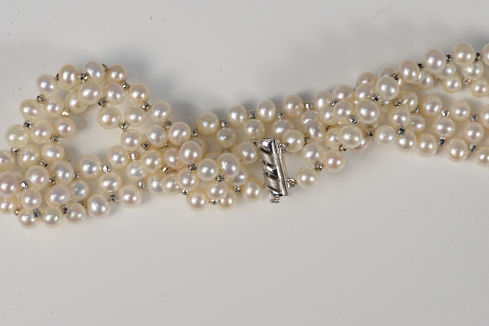 Pearl Three Strand Necklace with 14 karat white gold clasp length 18 1/4 inches