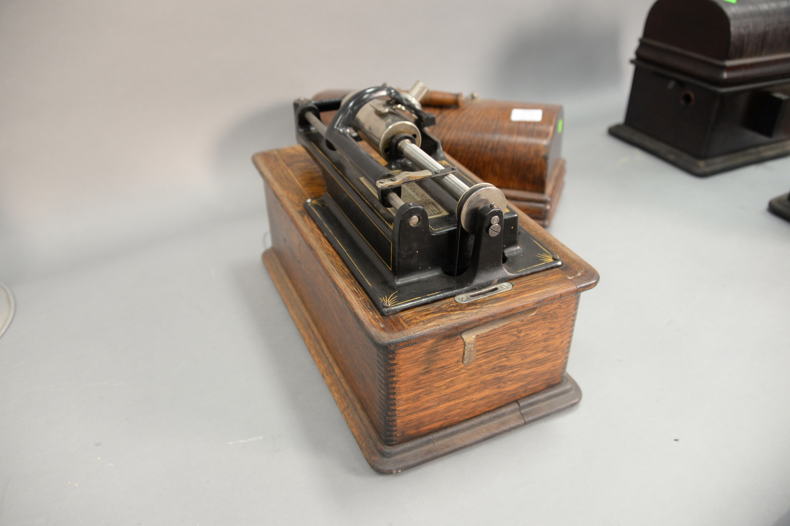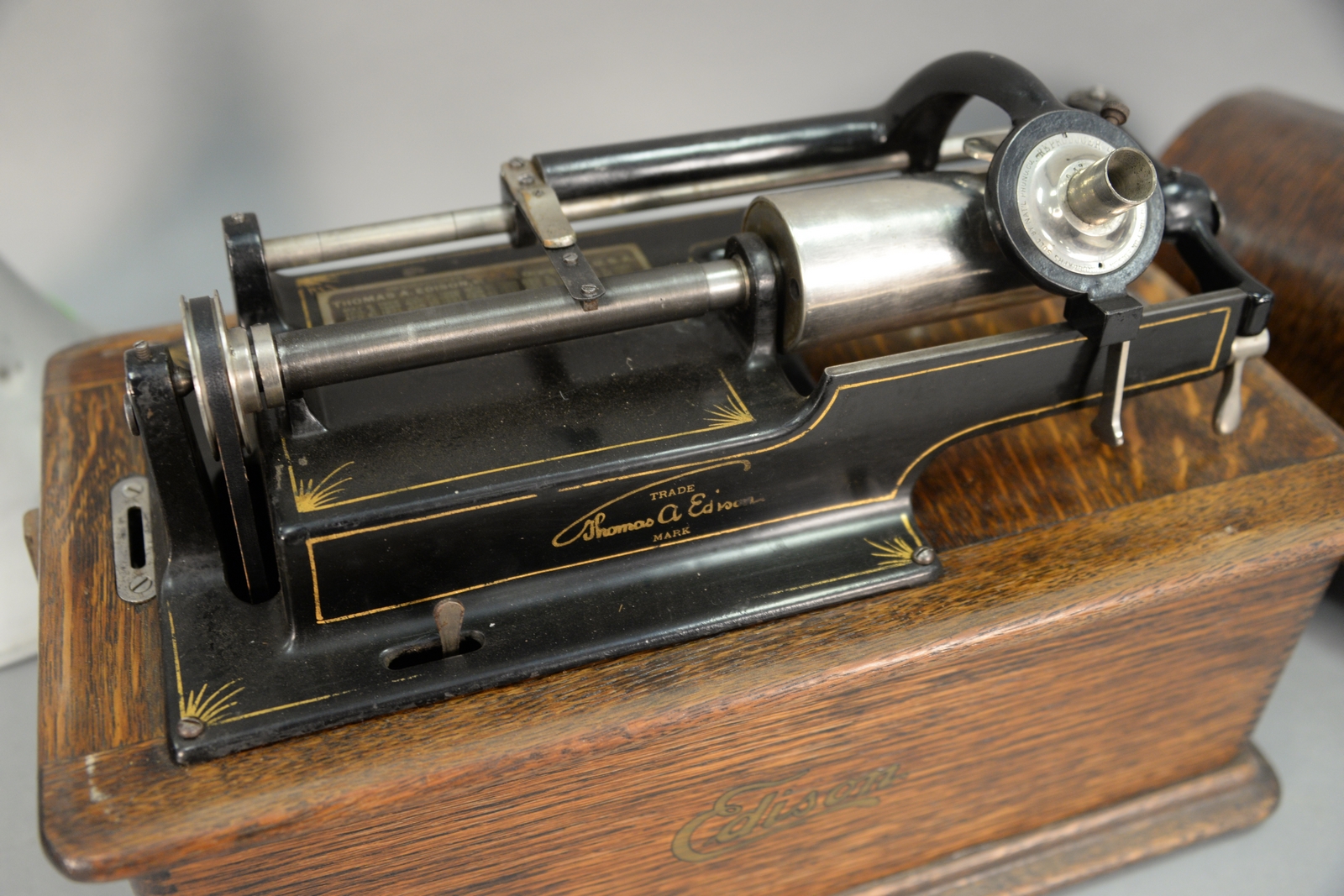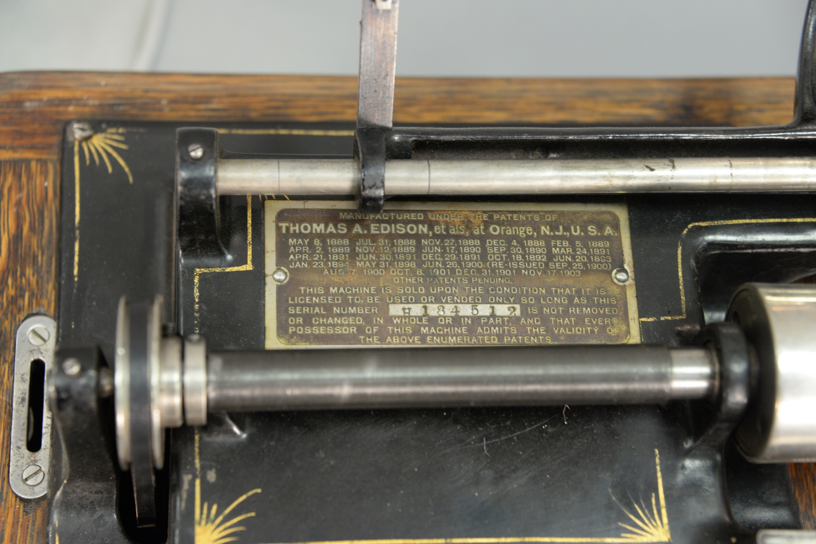 Thomas Edison cylinder phonograph with 12 inch horn. ht. 11 3/4in., wd. 16in., dp. 8 3/4in.