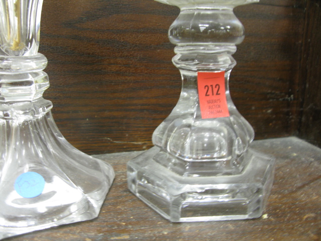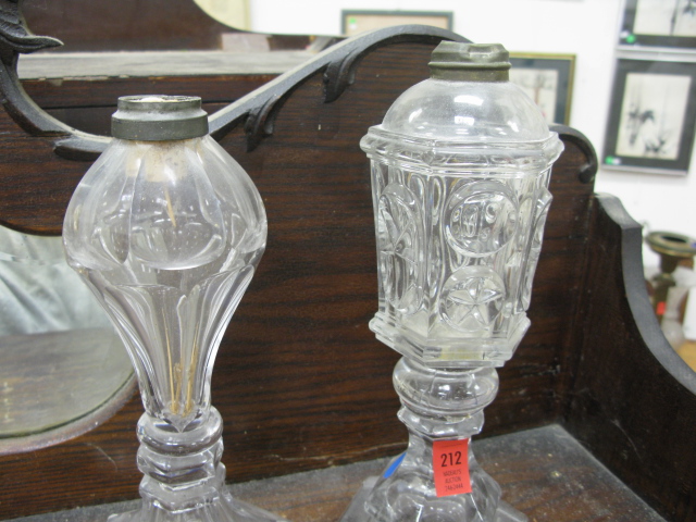 Two sandwich glass whale oil lamps from the estate of Broadway actress Leta Gold