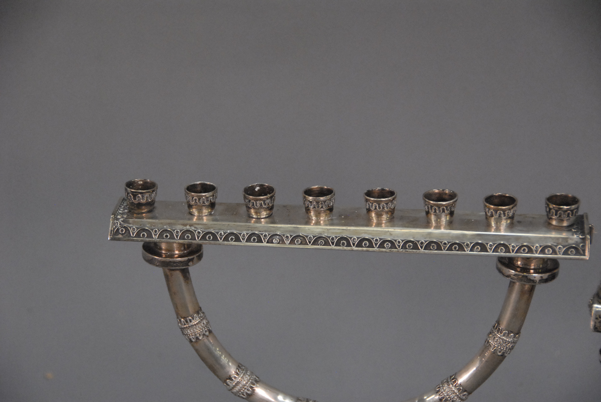 Two silver menorahs, ht. 8, wd. 8 and 7 x 7, 12.5 t oz.