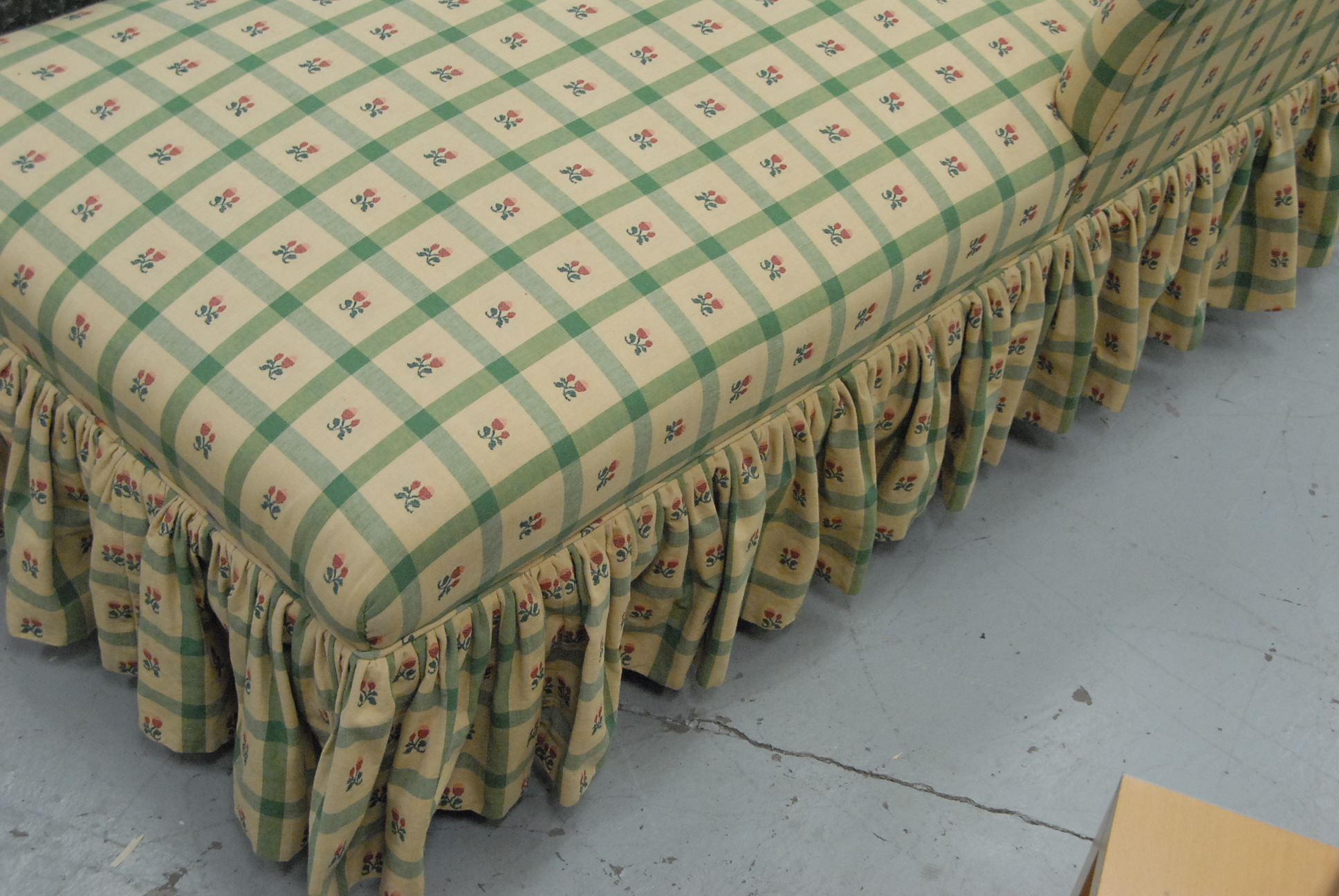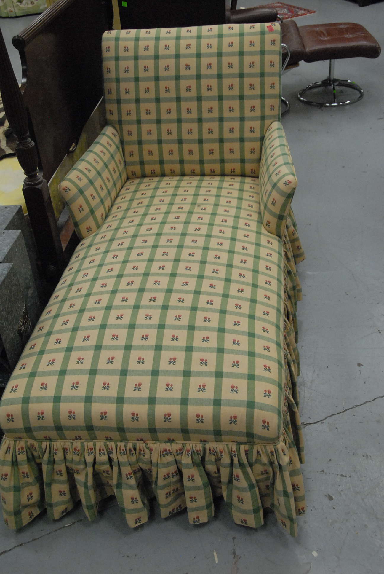 Upholstered chaise lounge.