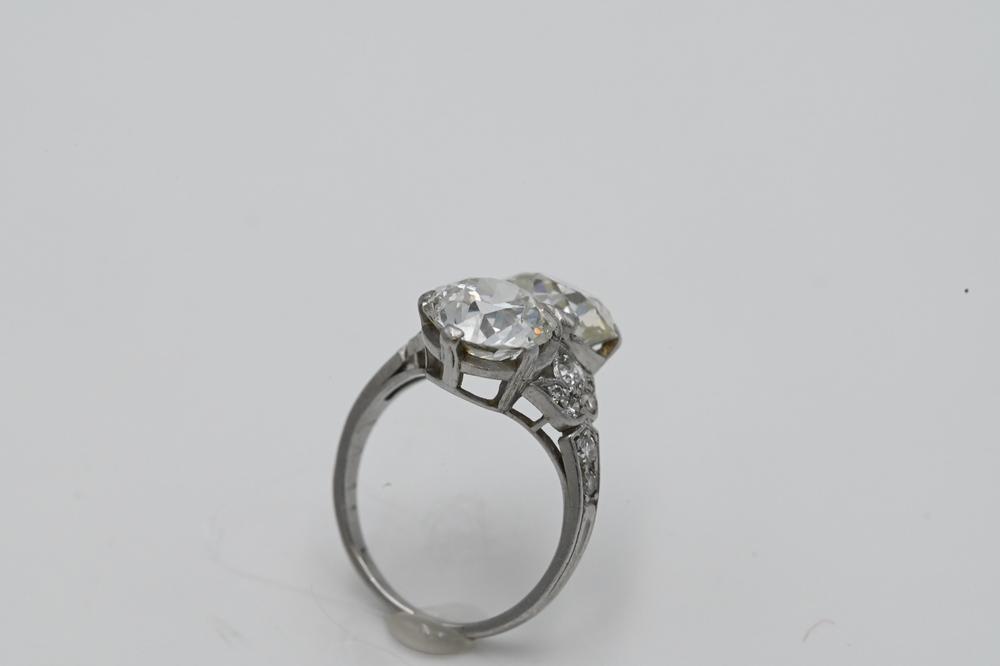 18 Karat White Gold and Diamond Ring, set with two diamonds, 2.20 carats and 2.07 carats, approximately 8.3 millimeters, size 4 3/4.