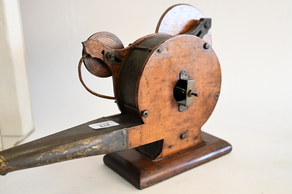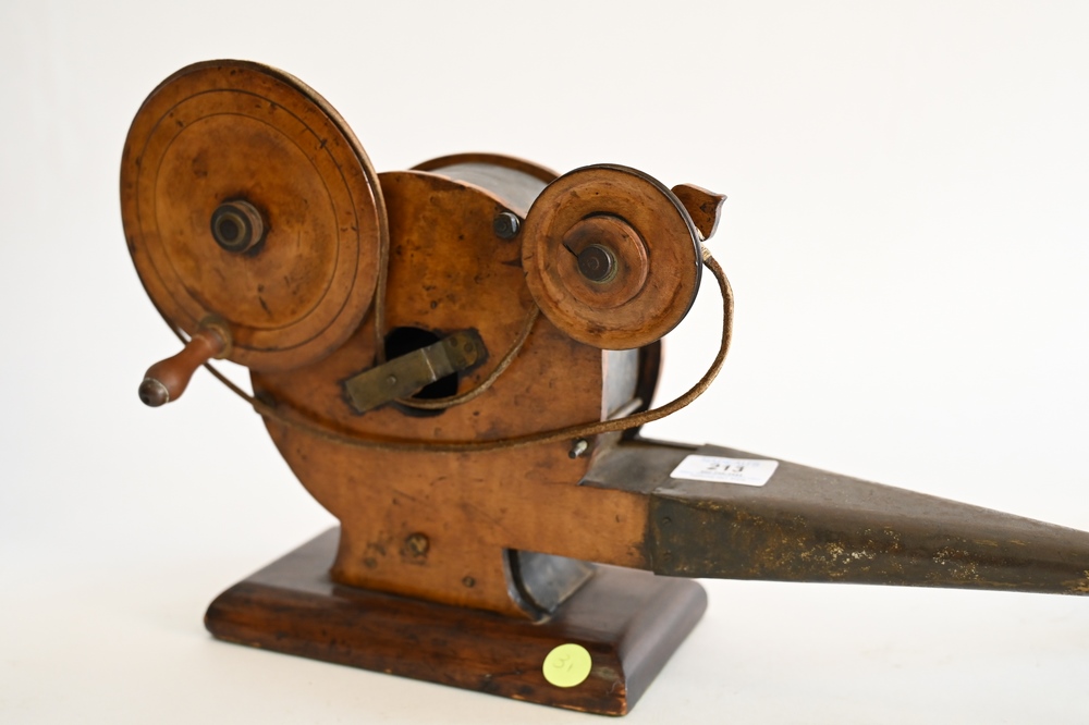 Lot 213: American Maple Bellows, crank wheel mechanism, length 18 inches.