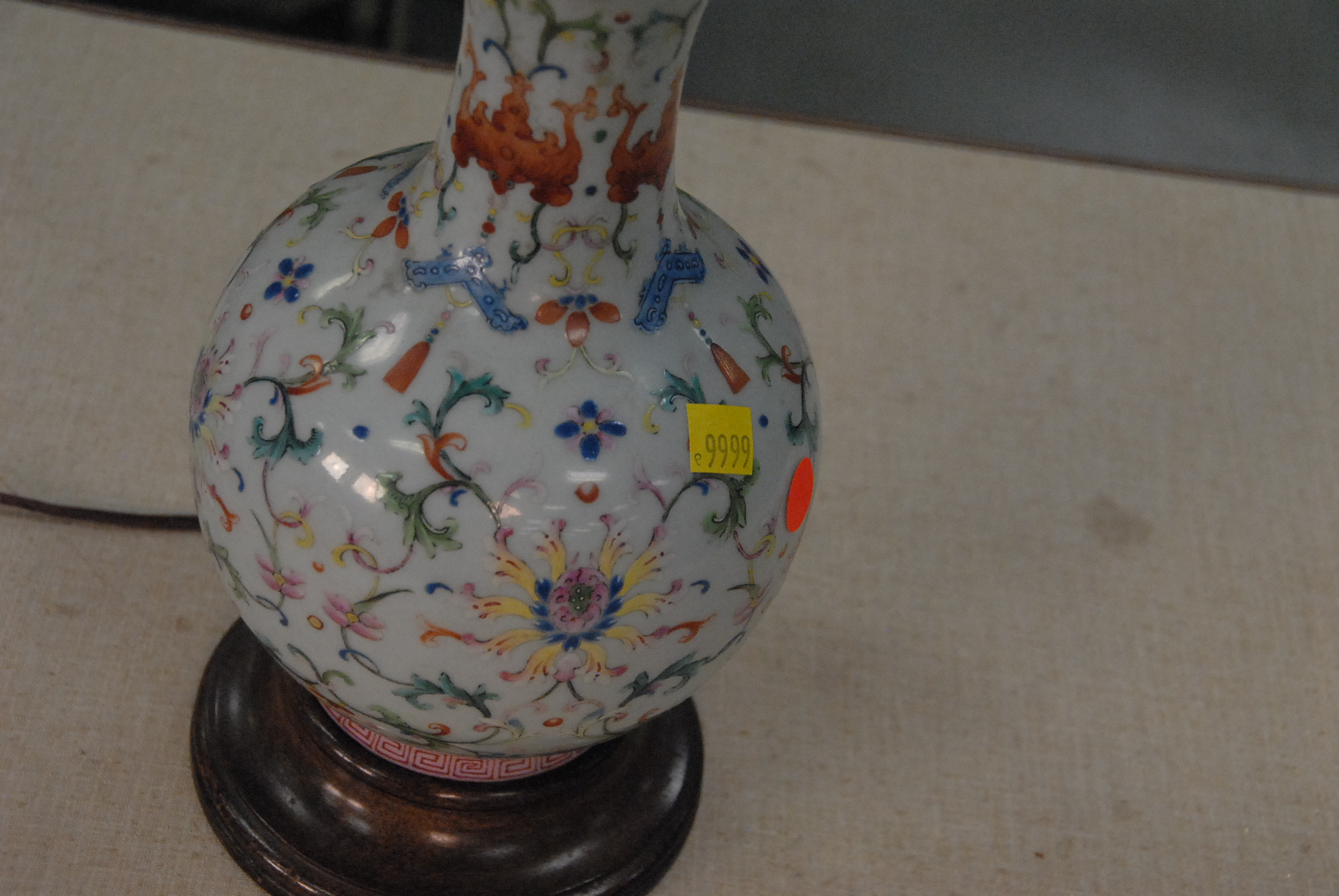 Lot 213: Chinese Export famille verte porcelain baluster jar, drilled and mounted as a table lamp, 19th century. ht. 26 1/2in.