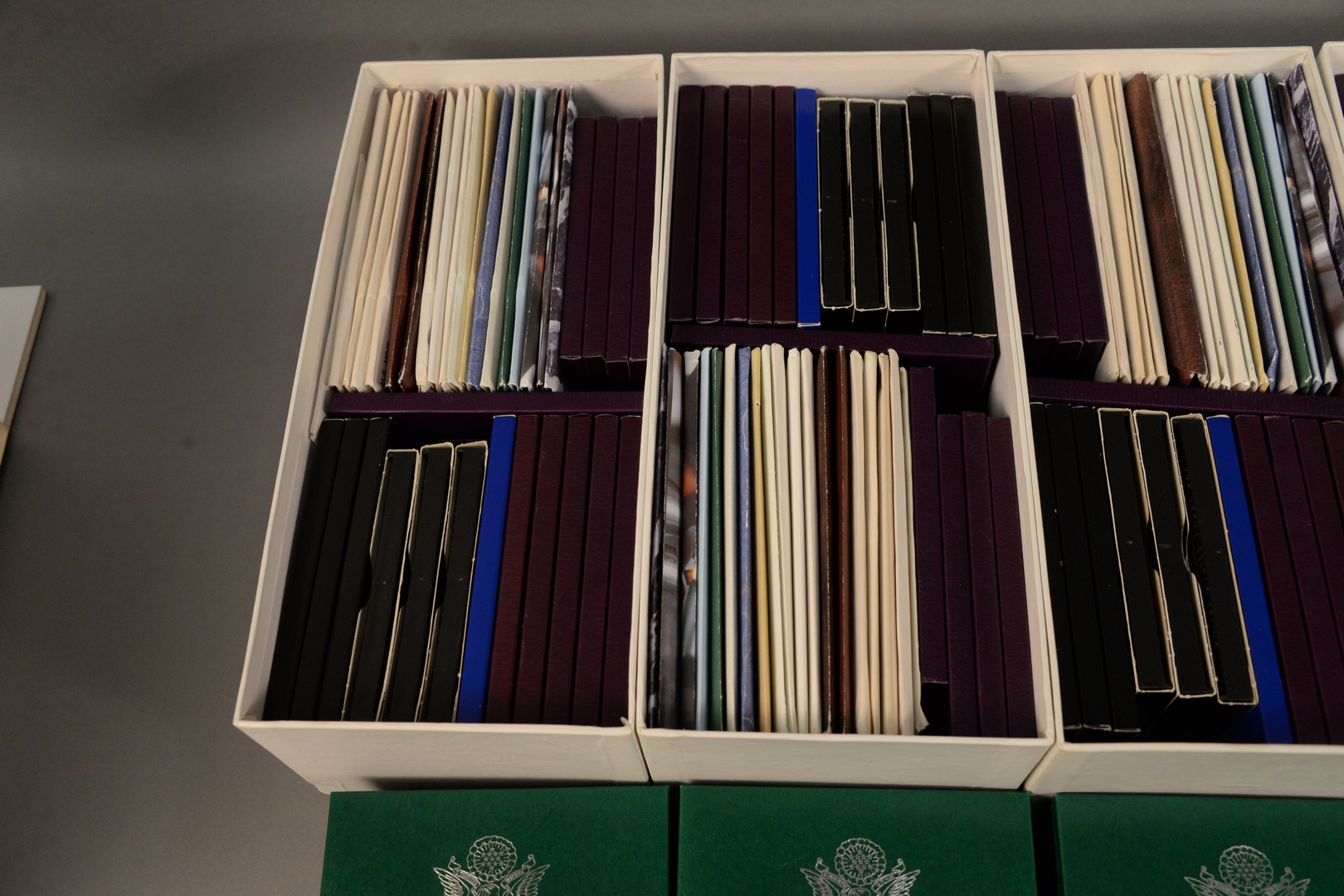 Coin lot to include, four large box lots of proof and mint sets 1977 and up, 160 sets.