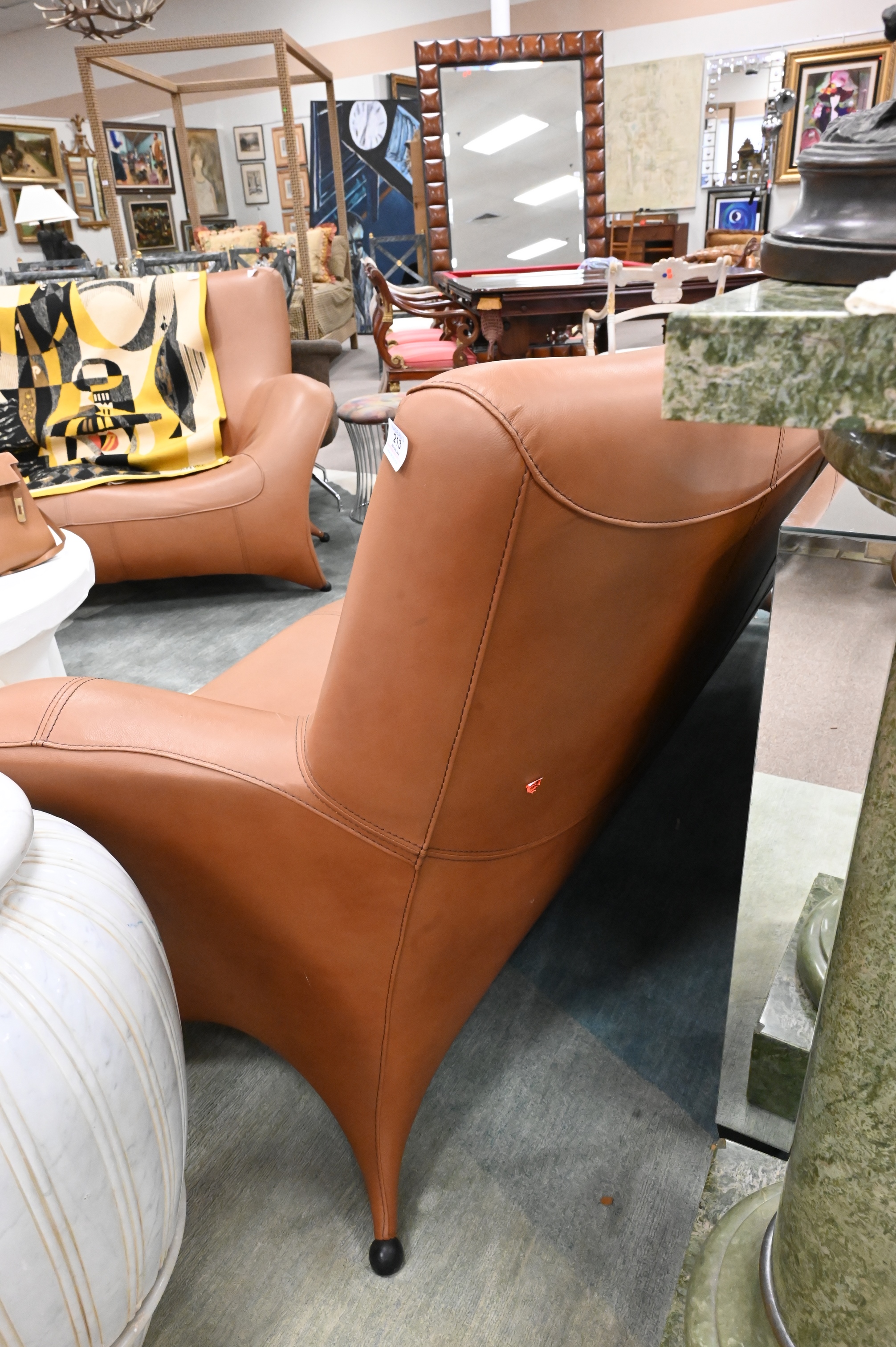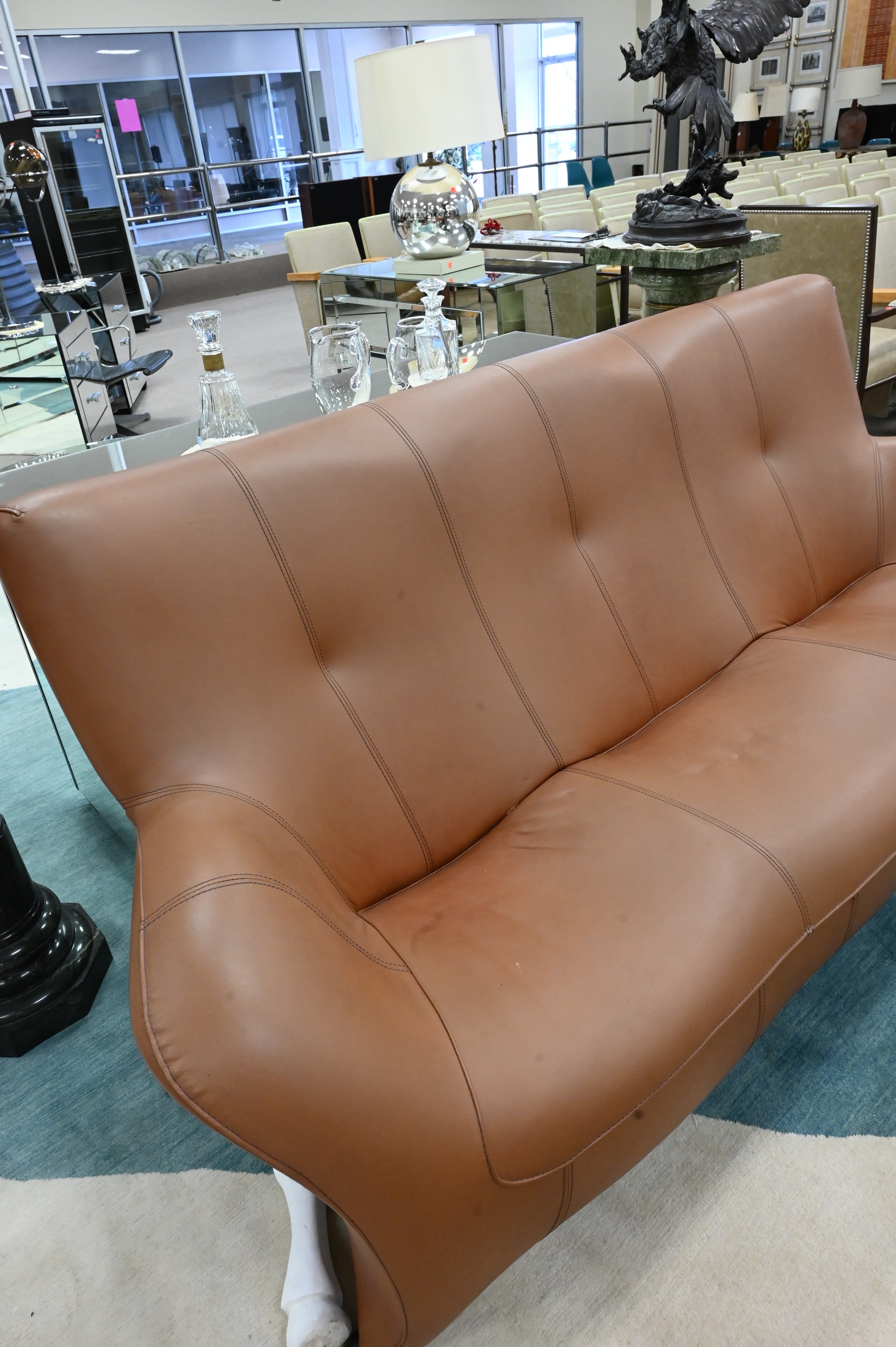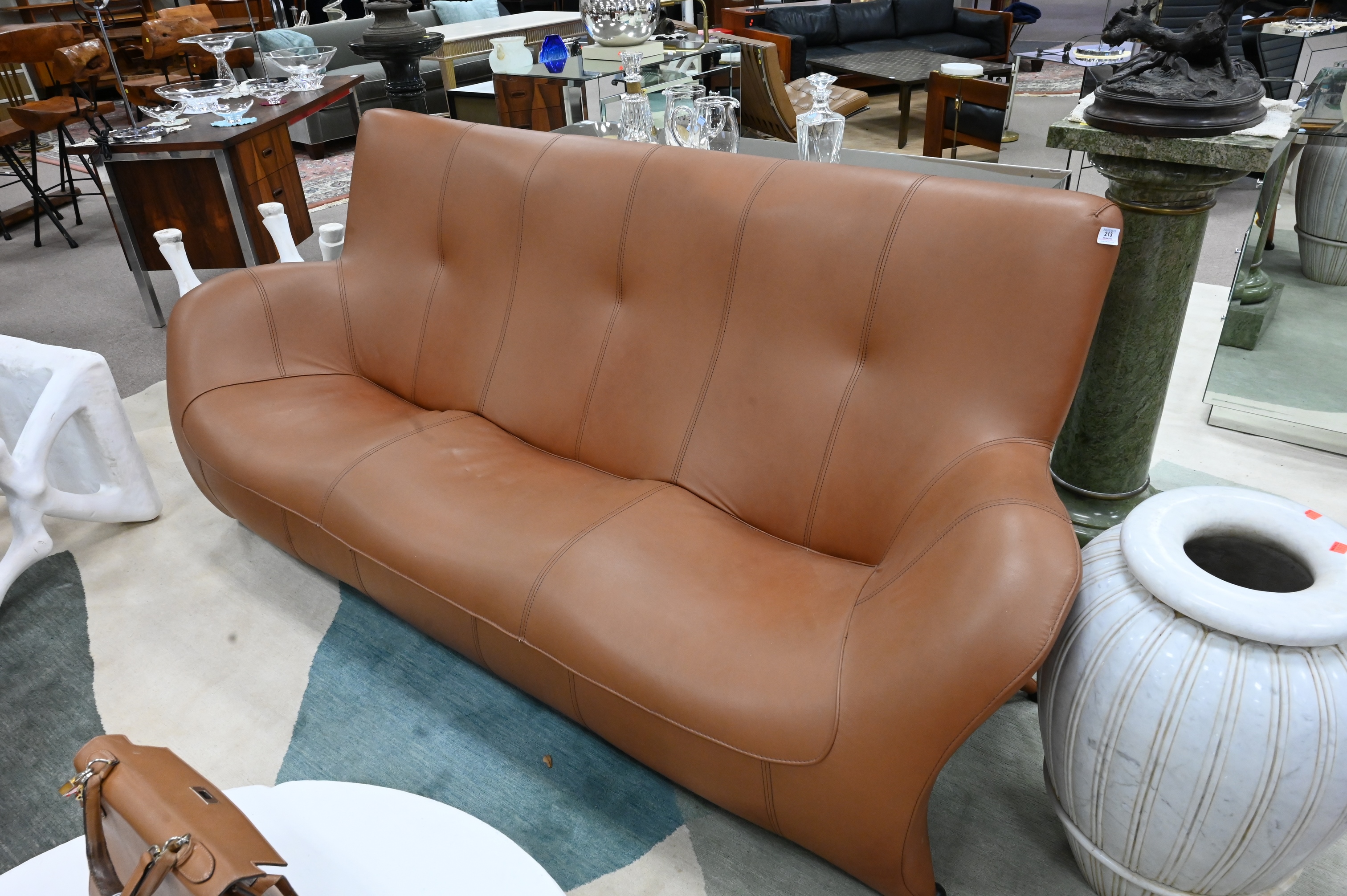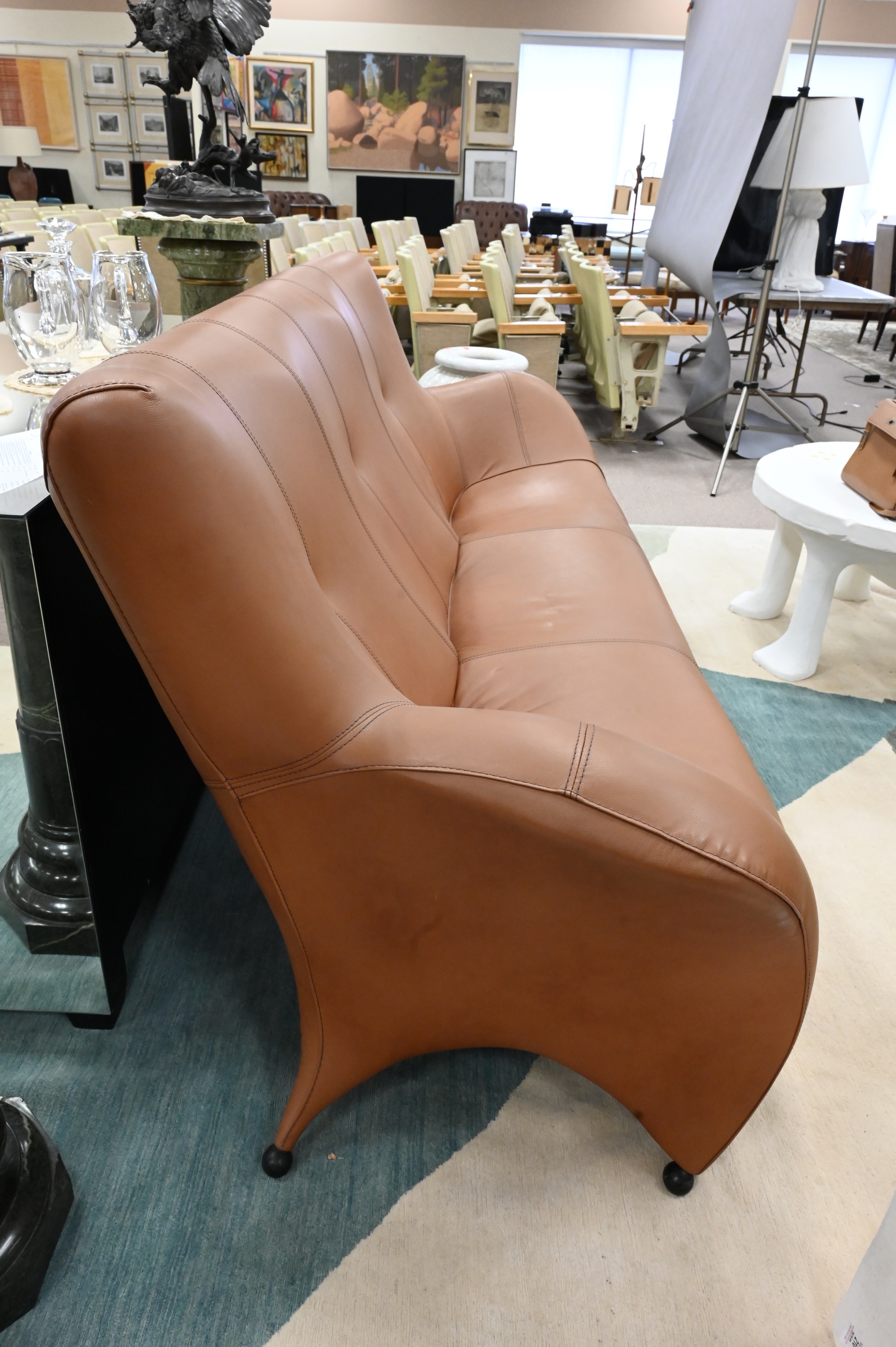 Designer Leather Sofa, having ball feet, length 84 inches.