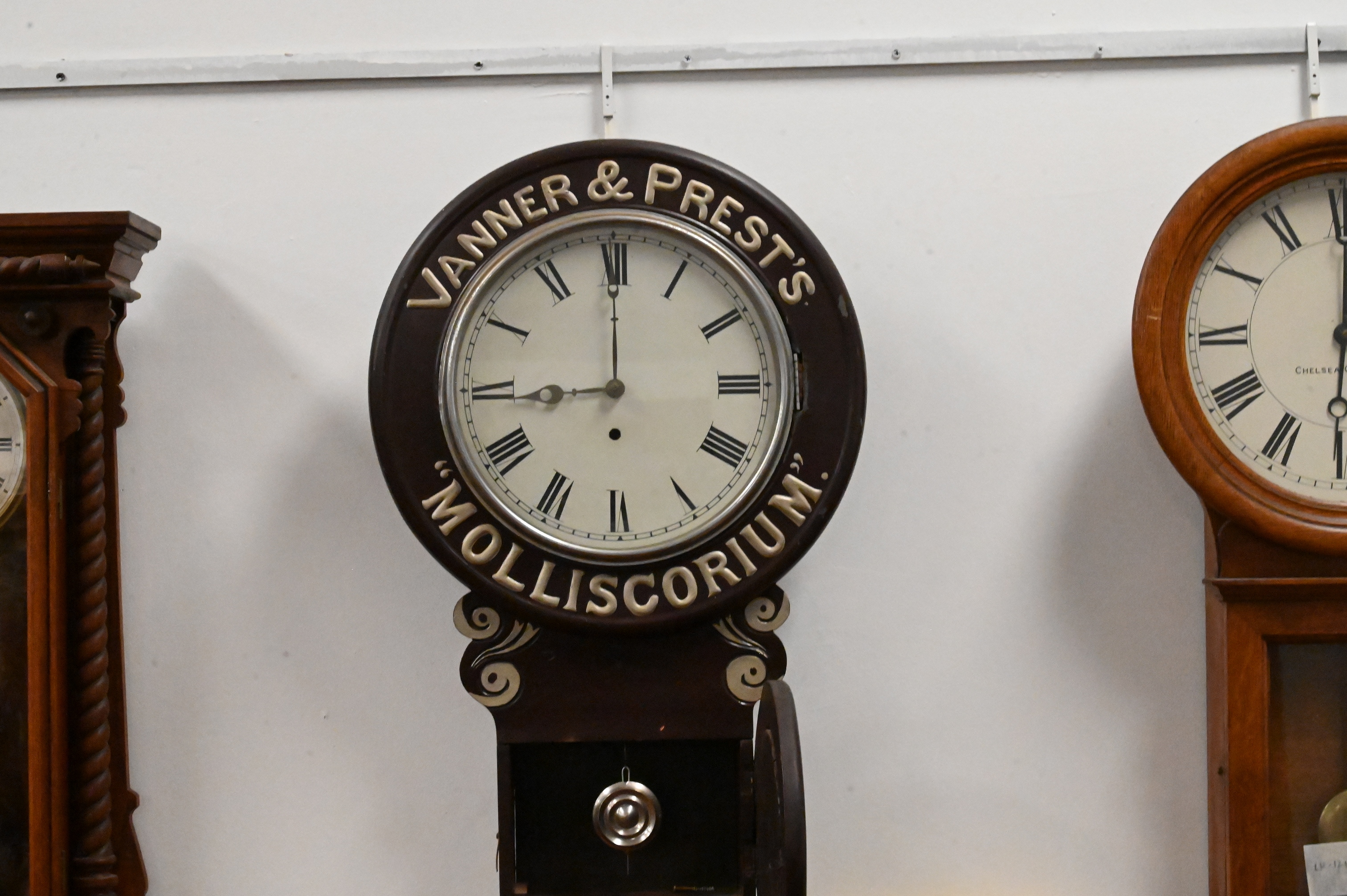 Double-Dial Advertising Wall Clock – Vanner & Prest’s “Molliscorium”