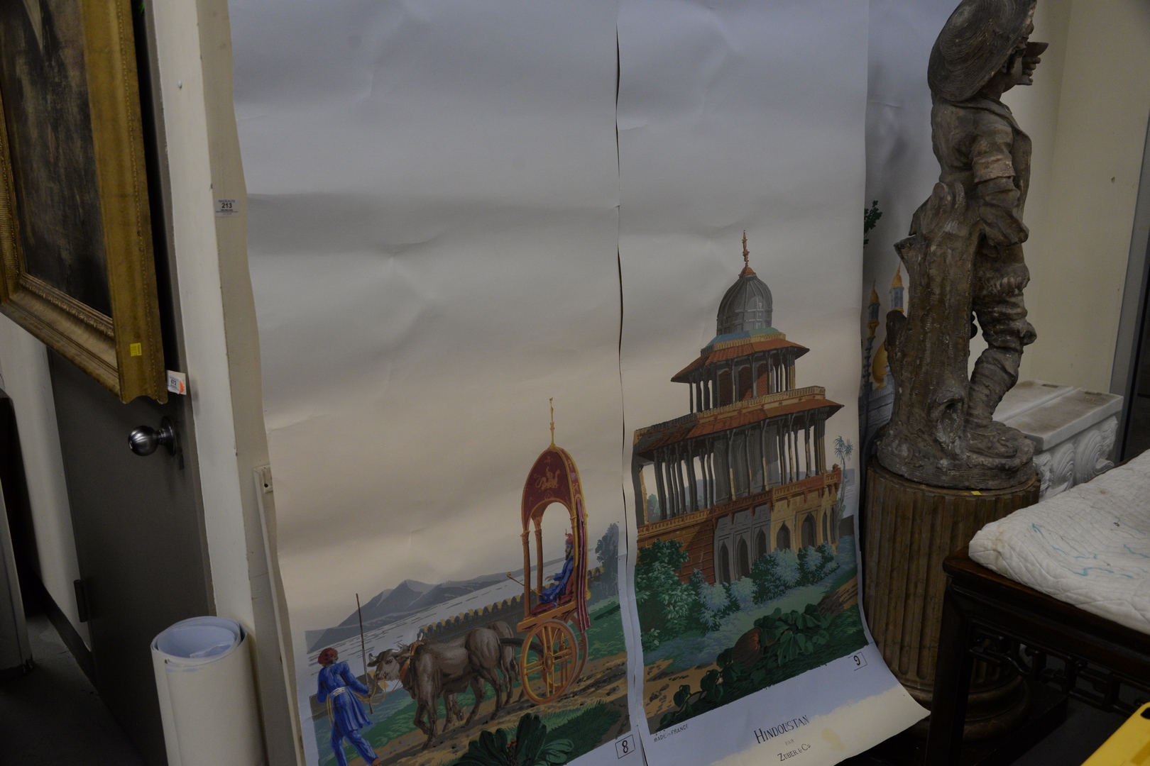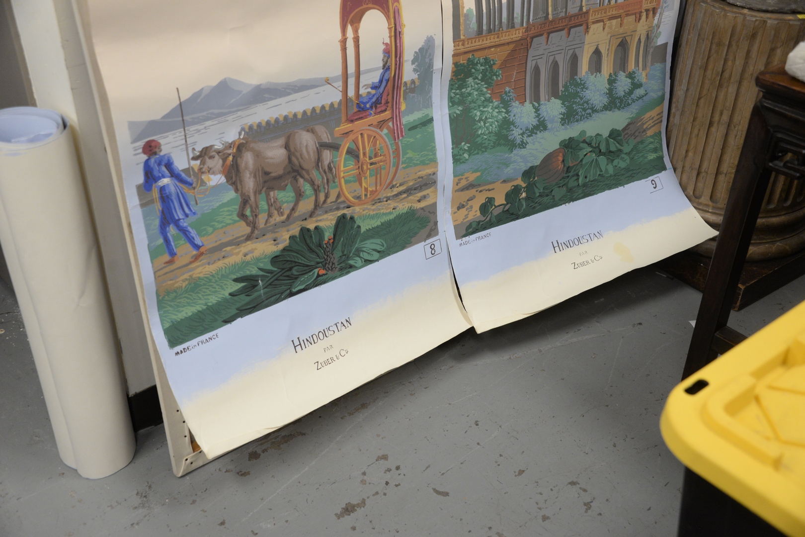 Lot 213: Five Zuber Panoramic Wallpaper Panels, in the Hindustan pattern, 21st century, numbers 9, 8, 12, 14′ x 28.