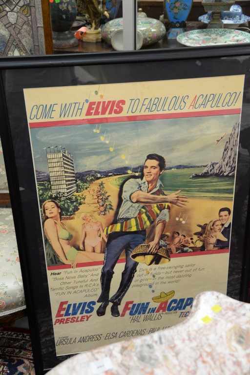Lot 213: Group of five Elvis Presley movie posters lithographs including Fun in Acapulco, Elvis ’69 Trouble With Girls, Elvis Presley Charro,…
