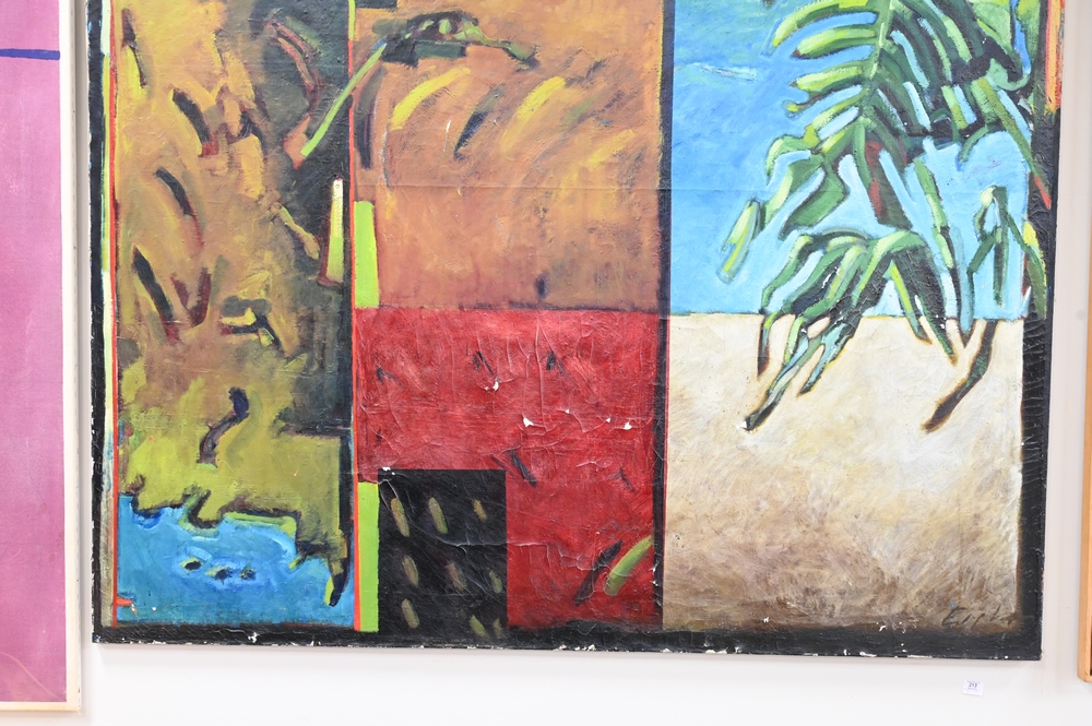 Lot 213: Ignacio Espla (Spanish 1946-2011), Paisaje abierto, ca. 1985, oil on canvas, signed lower right Espla, 72″ x 72″.